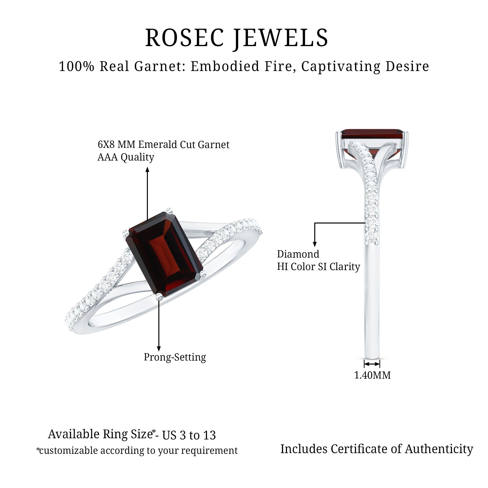 • Fast and Reliable Shipping: - Rosec Jewels is well known for fast and reliable shipping, and our valuable customers can take maximum benefit of it. We ensure that your garnet ring reaches you securely without delay.