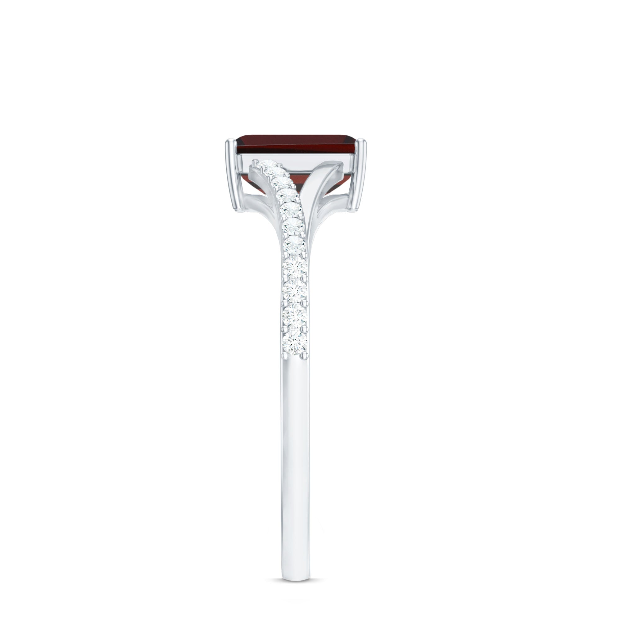• Garnet Solitaire Rings: - Truly the most traditional option for a garnet engagement rings, the Solitaire Style emphasizes the singular centerpiece of garnet. What's great about this style is its versatility, appealing to various aesthetics. While a round cut garnet solitaire ring might be the classic choice. You can also opt for fancier cuts such as marquise, pear, or princess shapes to add a contemporary touch. For those seeking a vintage vibe then an asscher, cushion, or emerald cut garnet engagement ring will be the ideal choice.