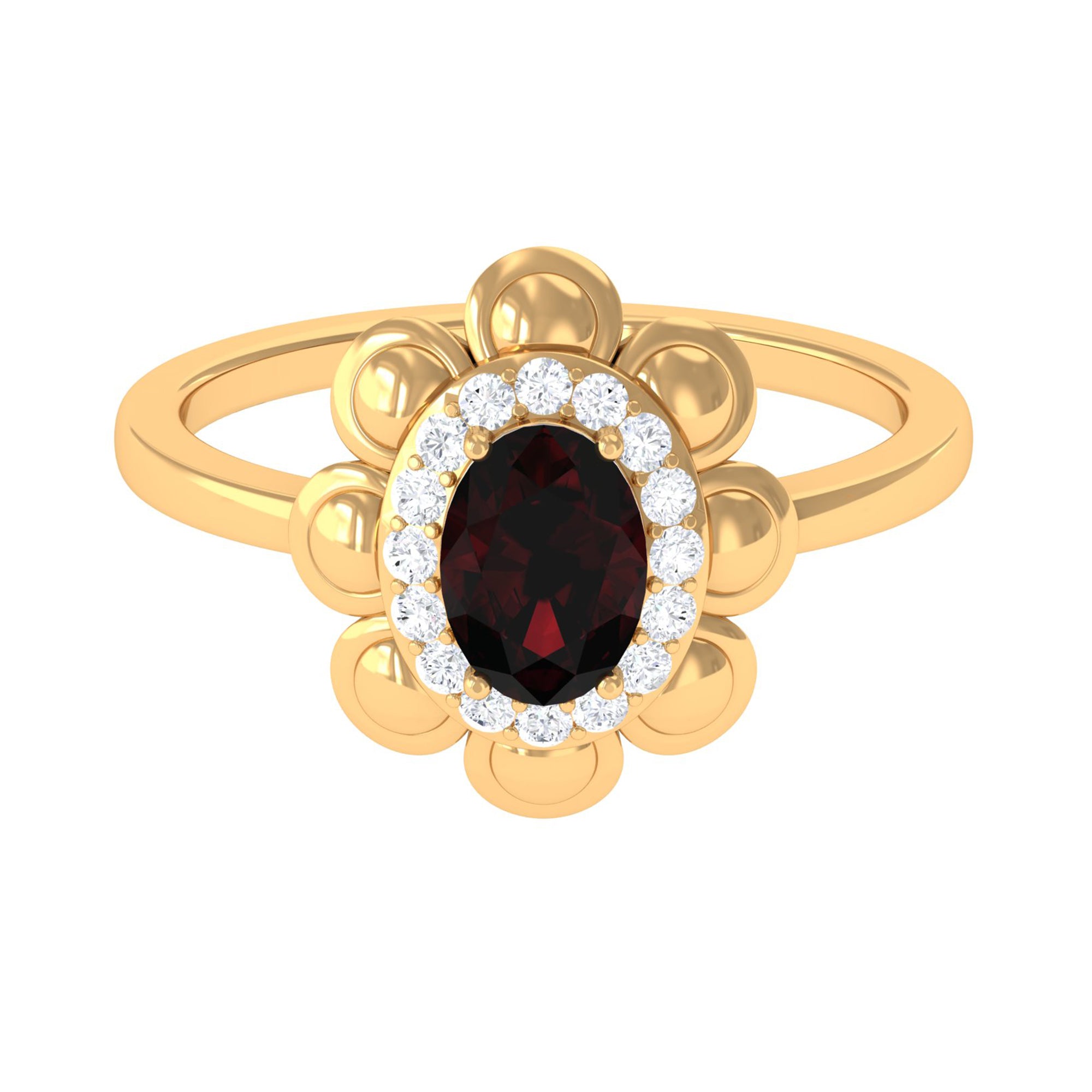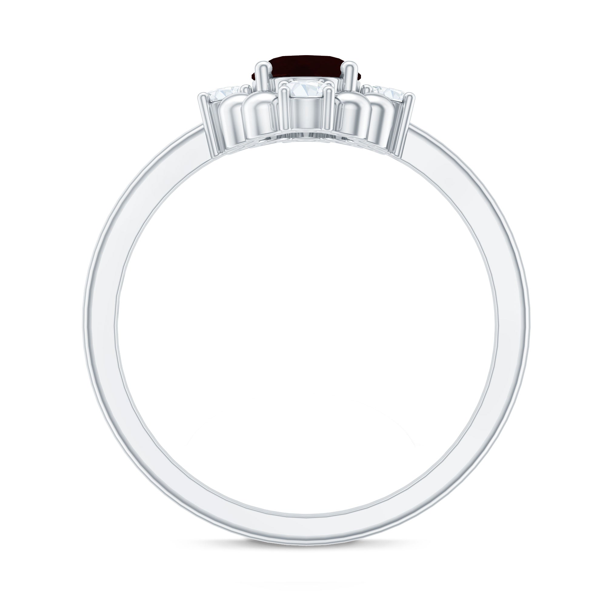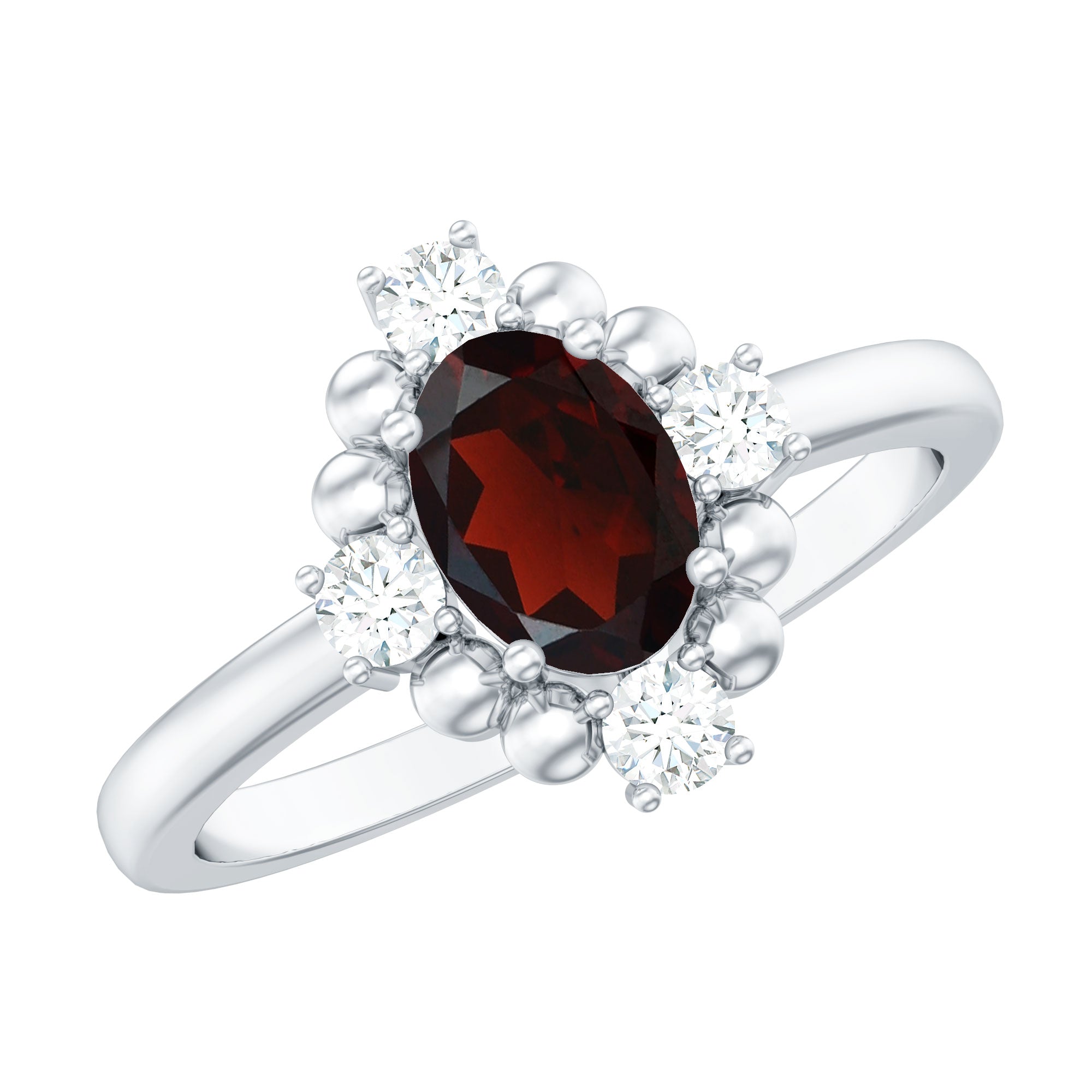 Garnet Halo Rings: - A fascinating twist on the traditional Solitaire Ring is the “halo ring”, which features a circle of diamond or moissanite surrounding the garnet solitaire. The Halo isn't just about adding sparkle; it adds versatility to the ring. Furthermore, it draws more focus to the garnet, creating the illusion of a larger stone. The halo style makes the ring more unique and attractive.