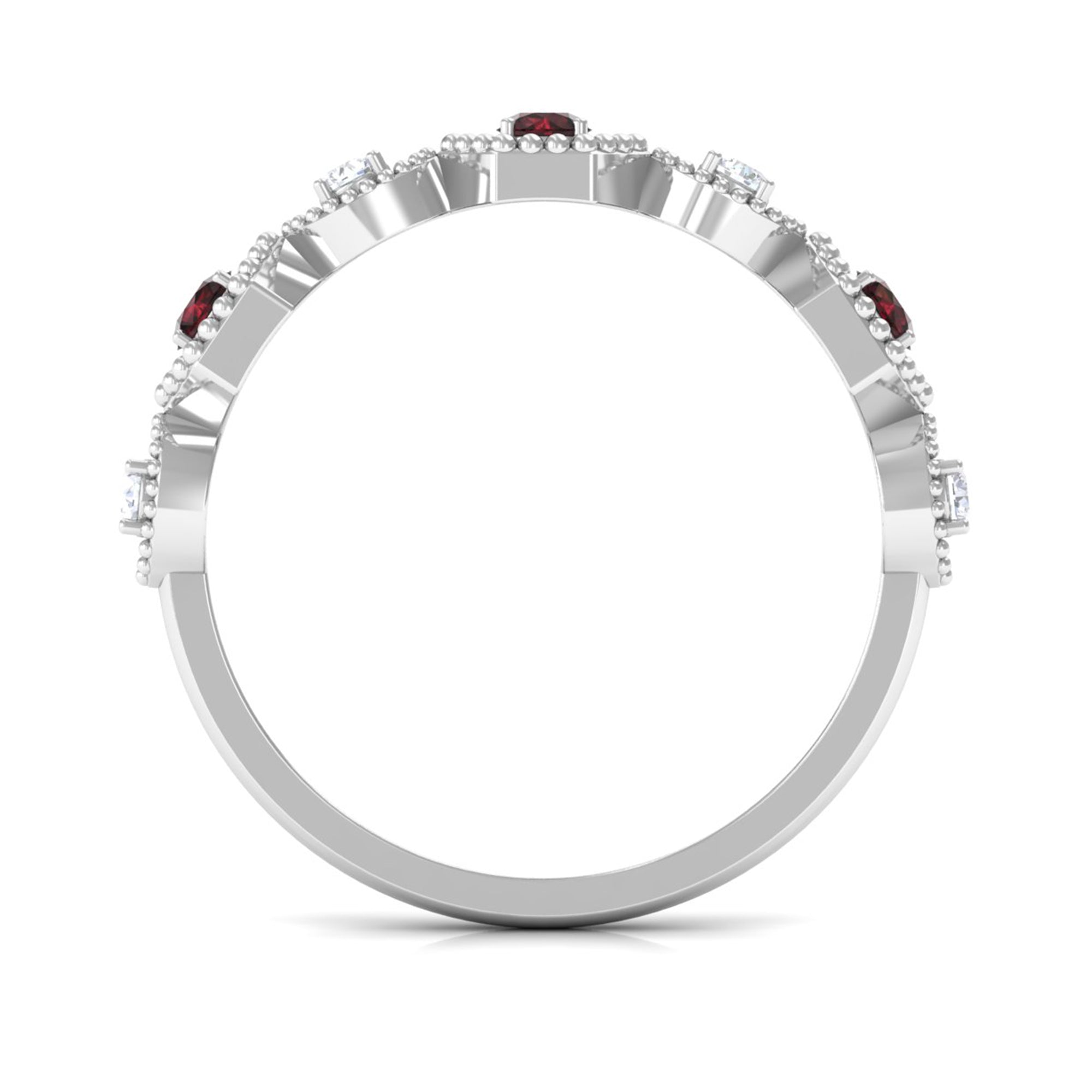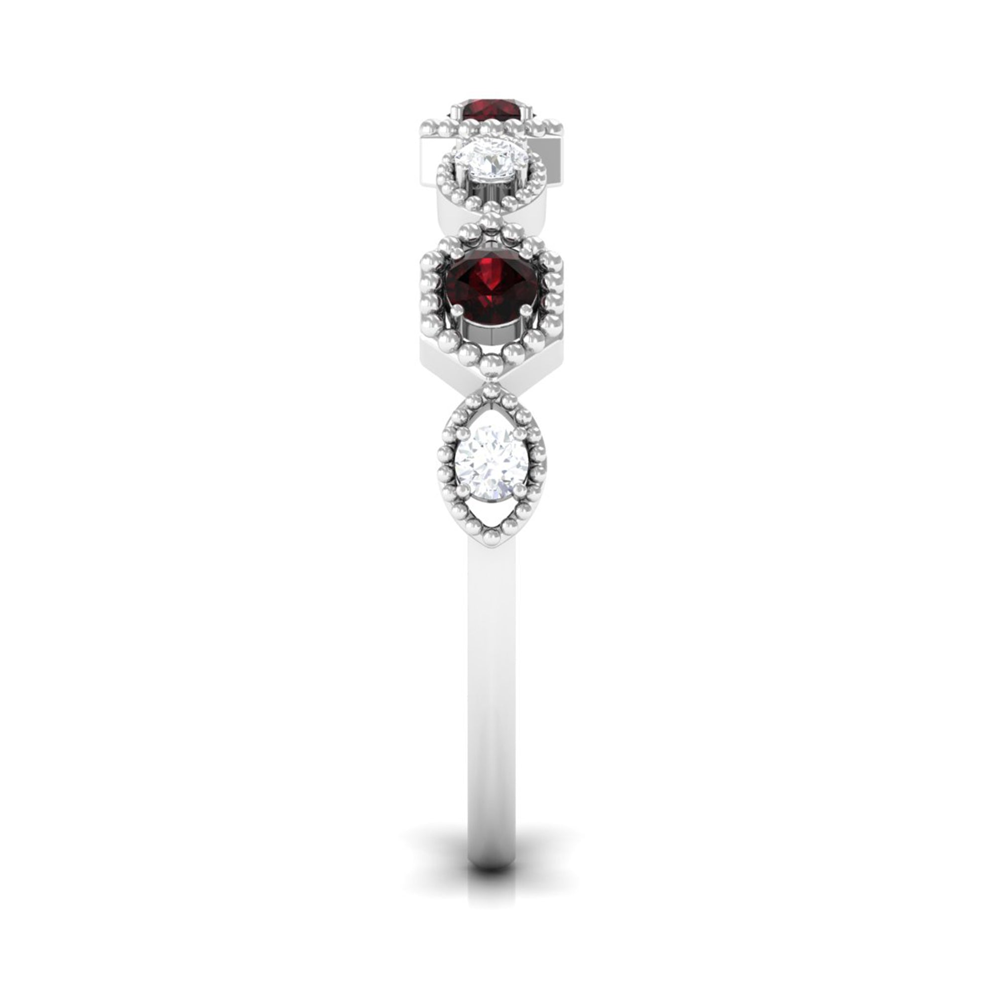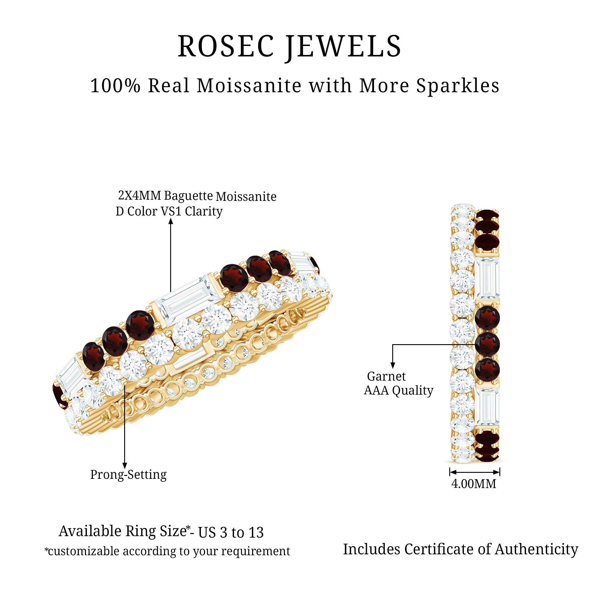 When worn as a wedding band, garnets can be a symbolism of love and life force, while a eternity wedding band in itself will symbolize a promise of love for eternity.