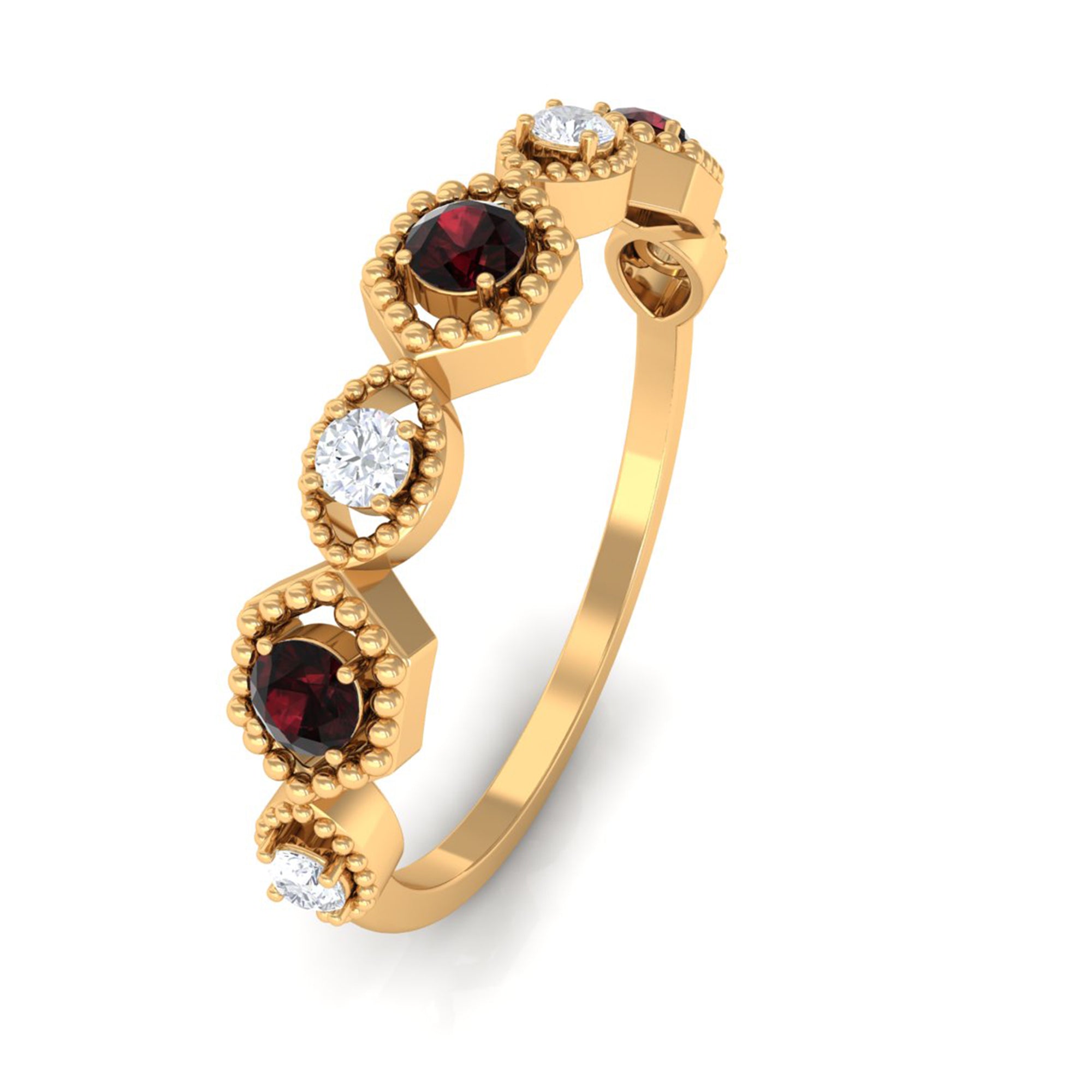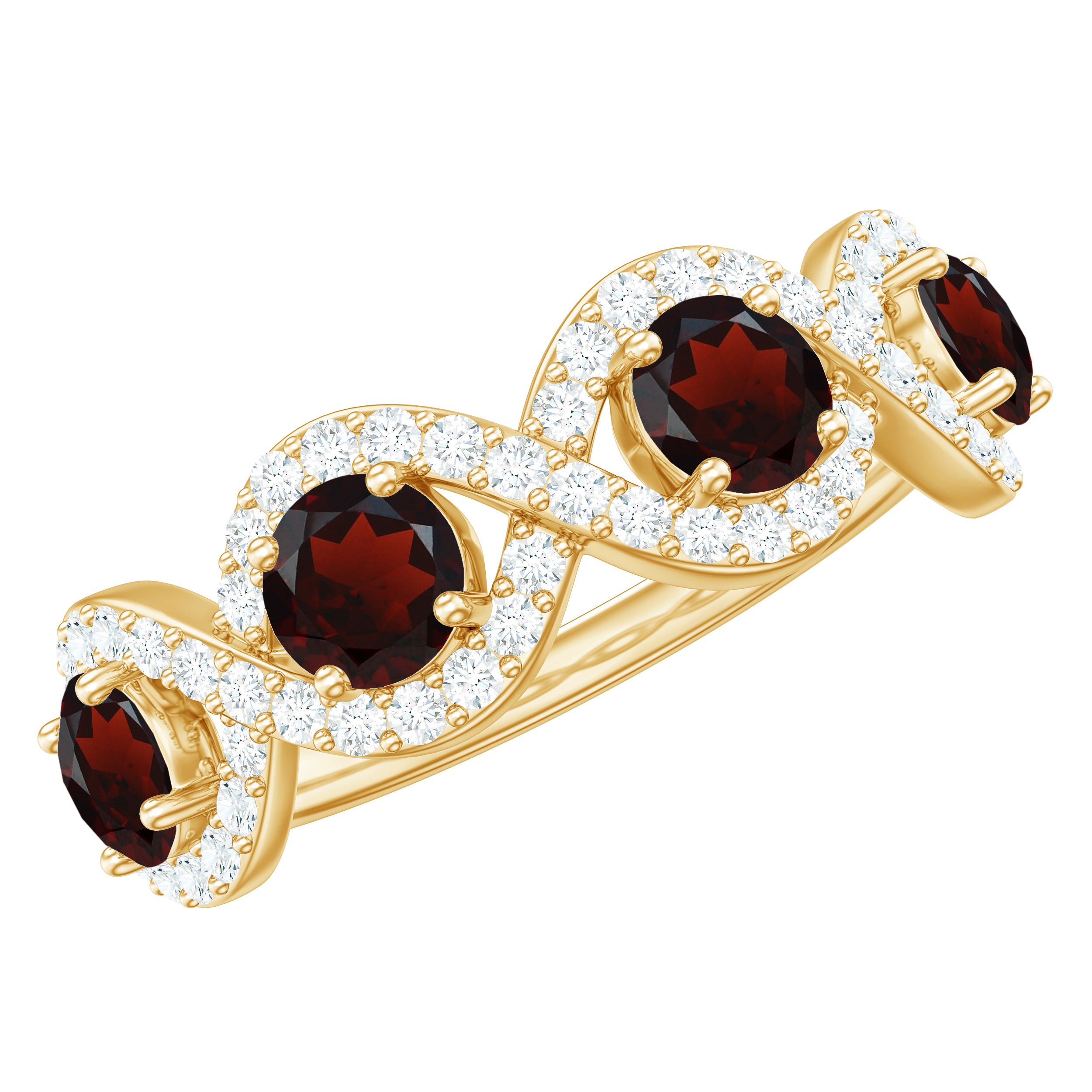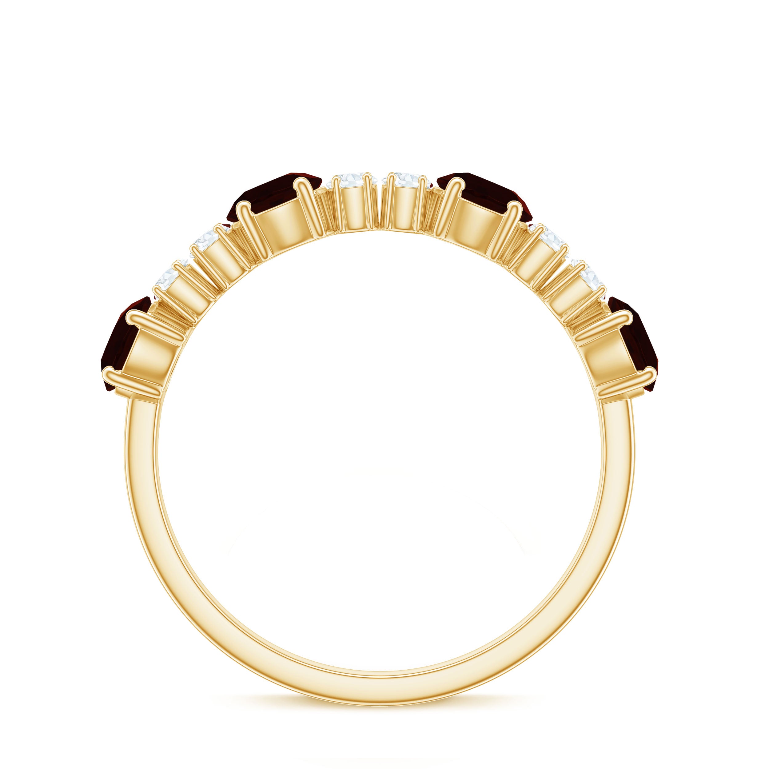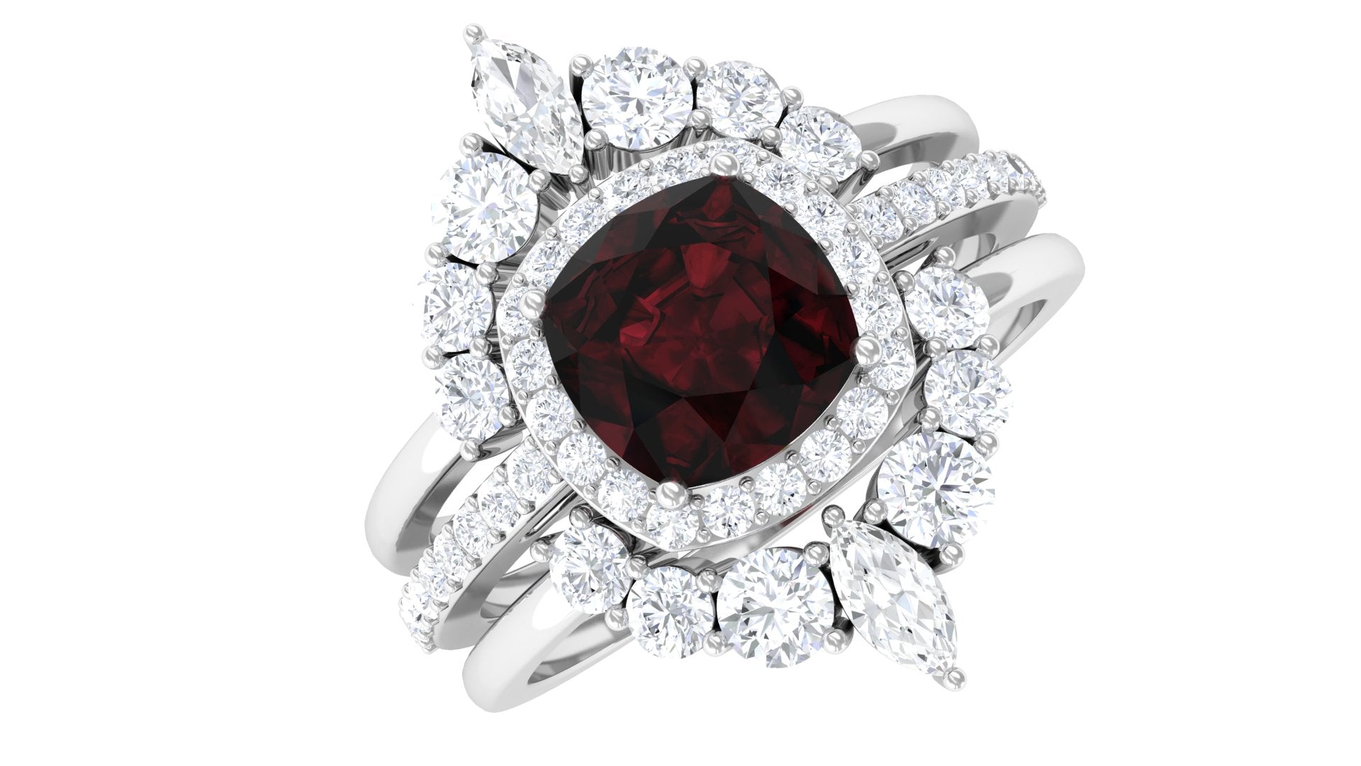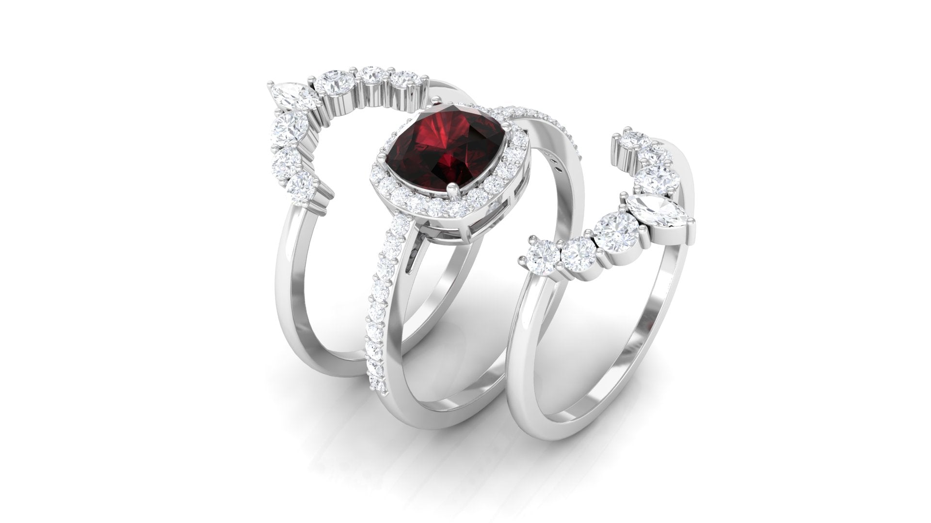 Fantastic garnet wedding band styles are curated by combining different garnet shapes ranging from round, oval, pear, marquise, cushion and many more. The garnet rings can also be selected on the basis of ring styles, most popular being the garnet eternity band for women with a knack for latest stylish trends in fashion. Metal embellishments in different adorable colors of gold namely, yellow gold, white gold and rose gold will leave the jewelry enthusiasts with plethora of engagement rings and wedding bands to choose from.