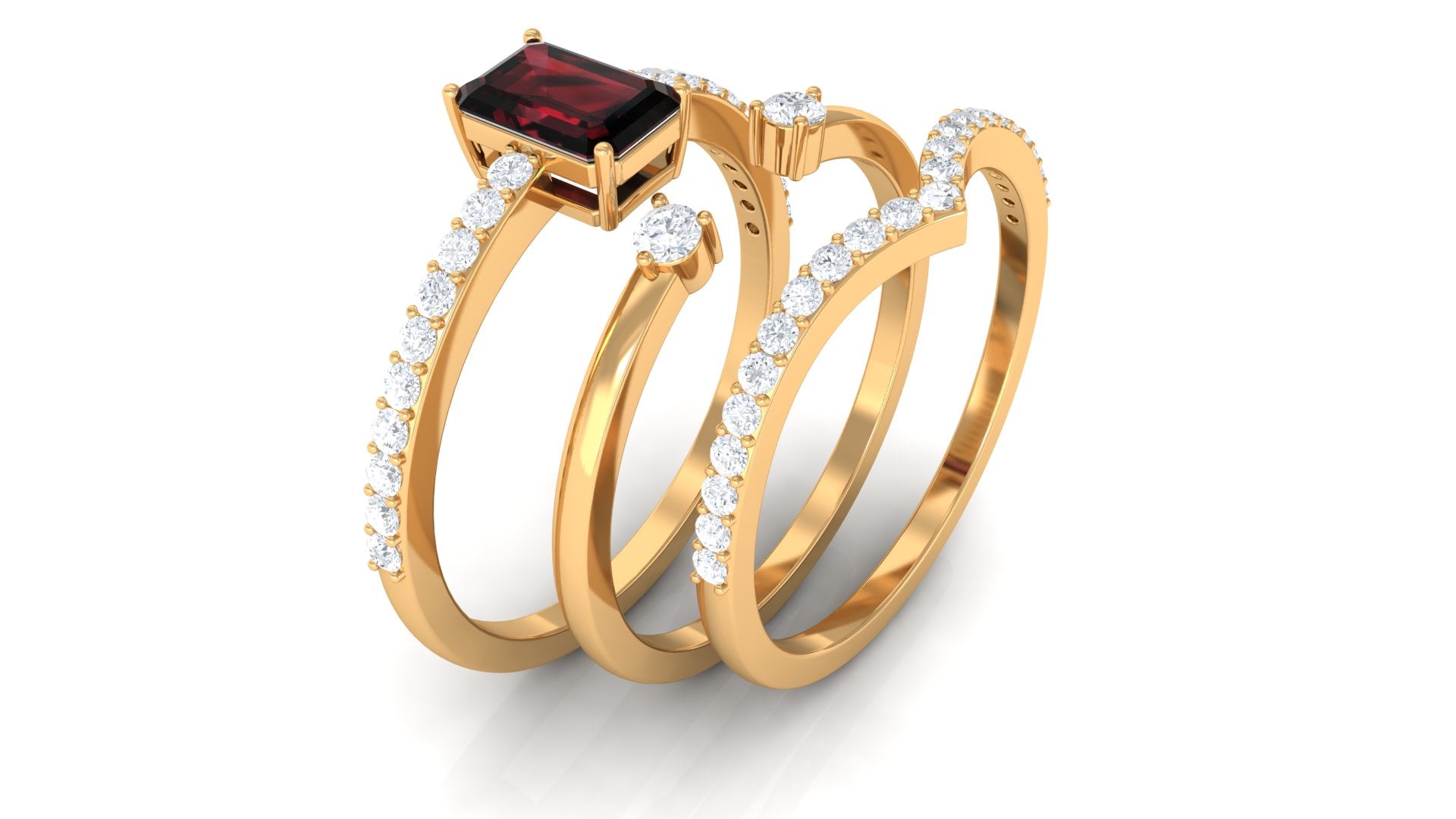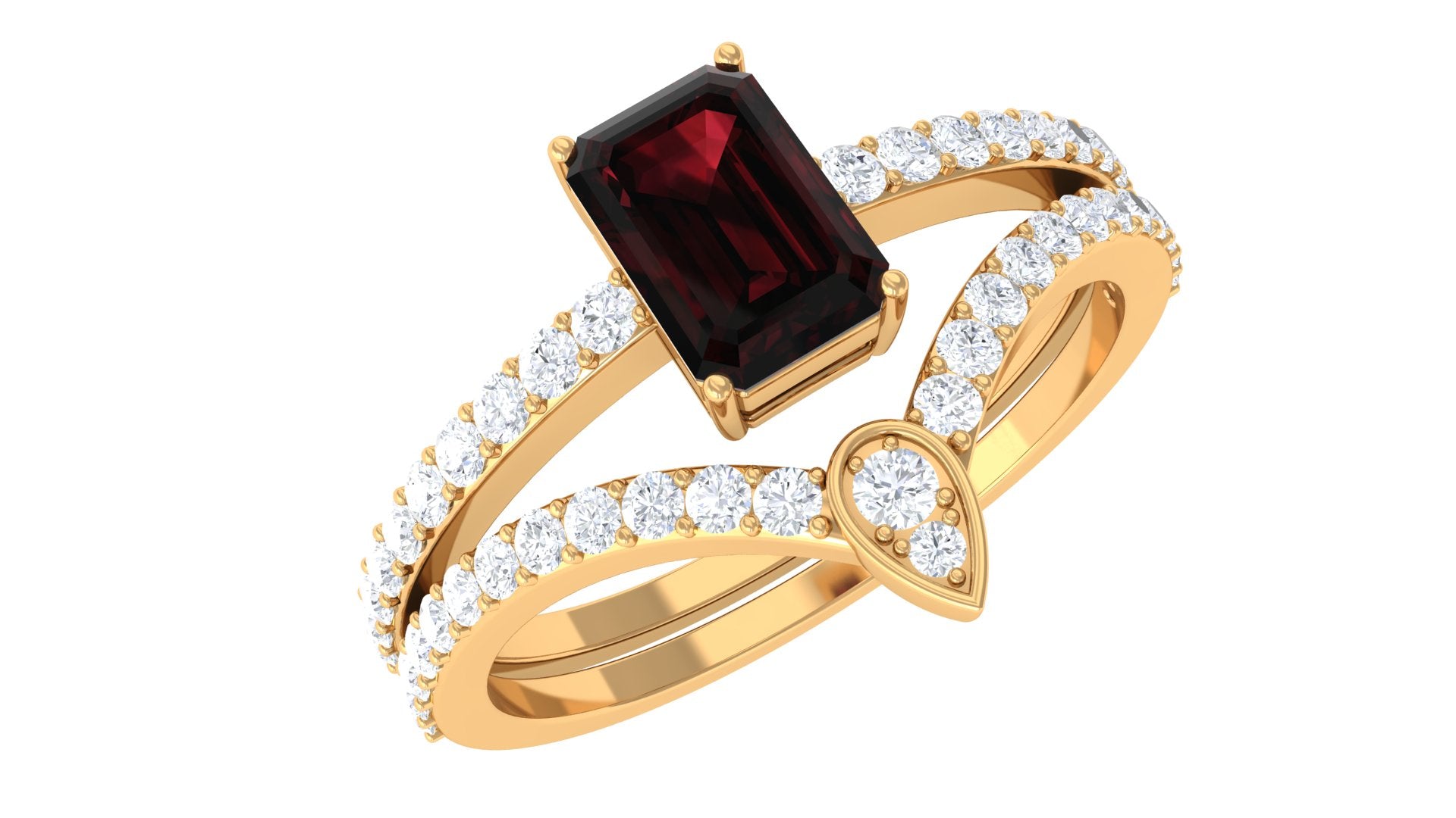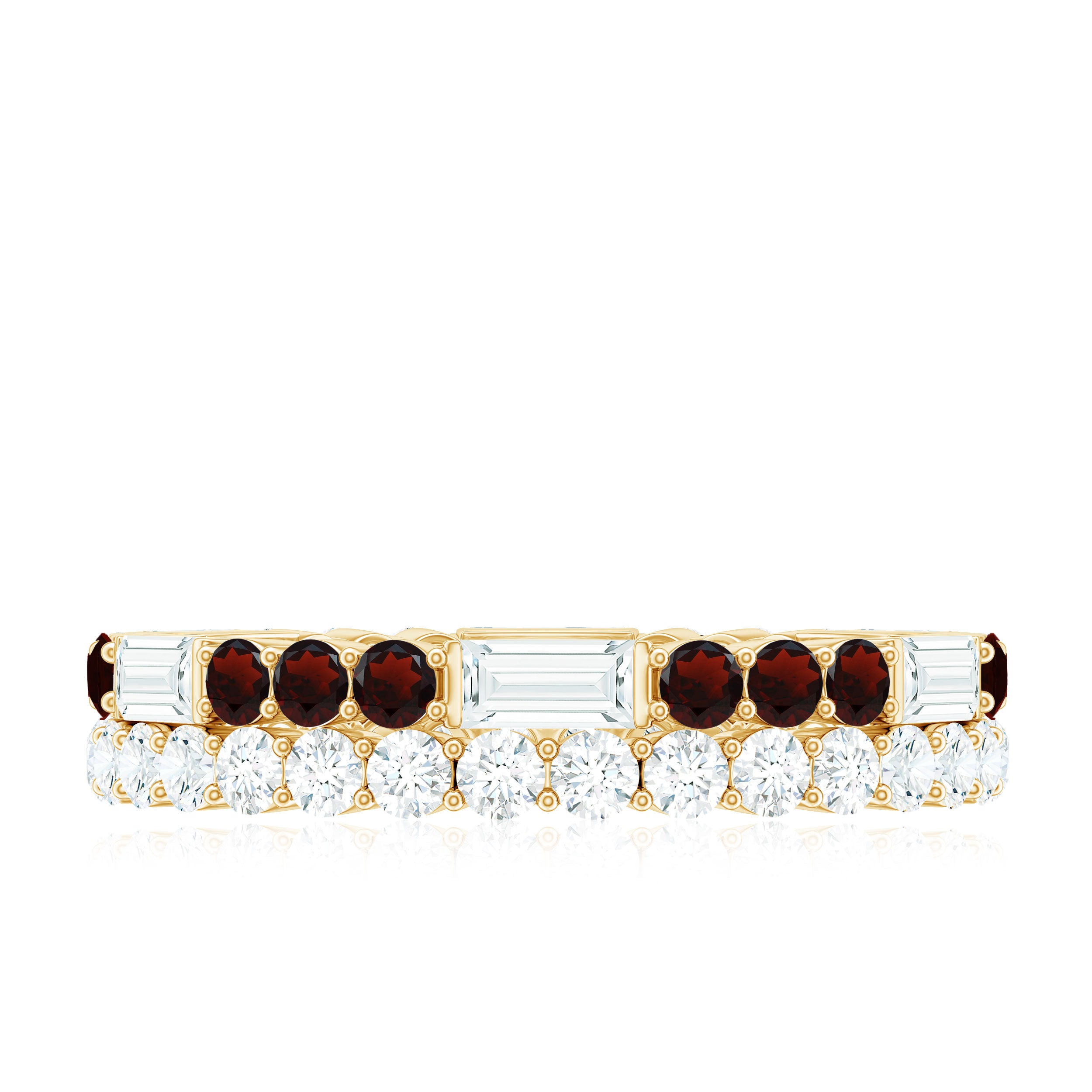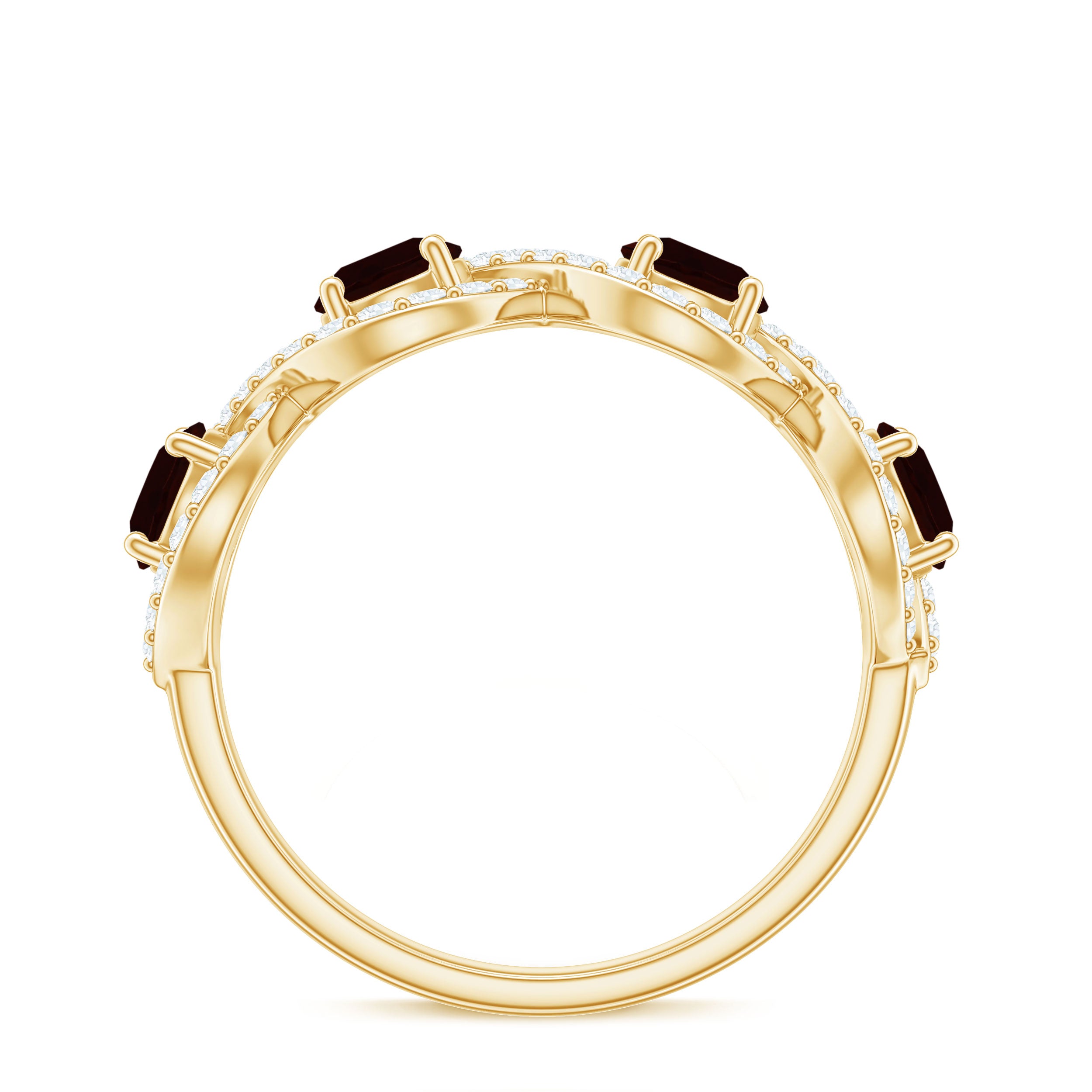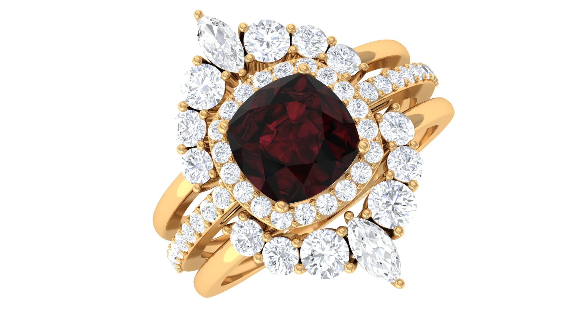 Fantastic garnet wedding band styles are curated by combining different garnet shapes ranging from round, oval, pear, marquise, cushion and many more. The garnet rings can also be selected on the basis of ring styles, most popular being the garnet eternity band for women with a knack for latest stylish trends in fashion. Metal embellishments in different adorable colors of gold namely, yellow gold, white gold and rose gold will leave the jewelry enthusiasts with plethora of engagement rings and wedding bands to choose from.