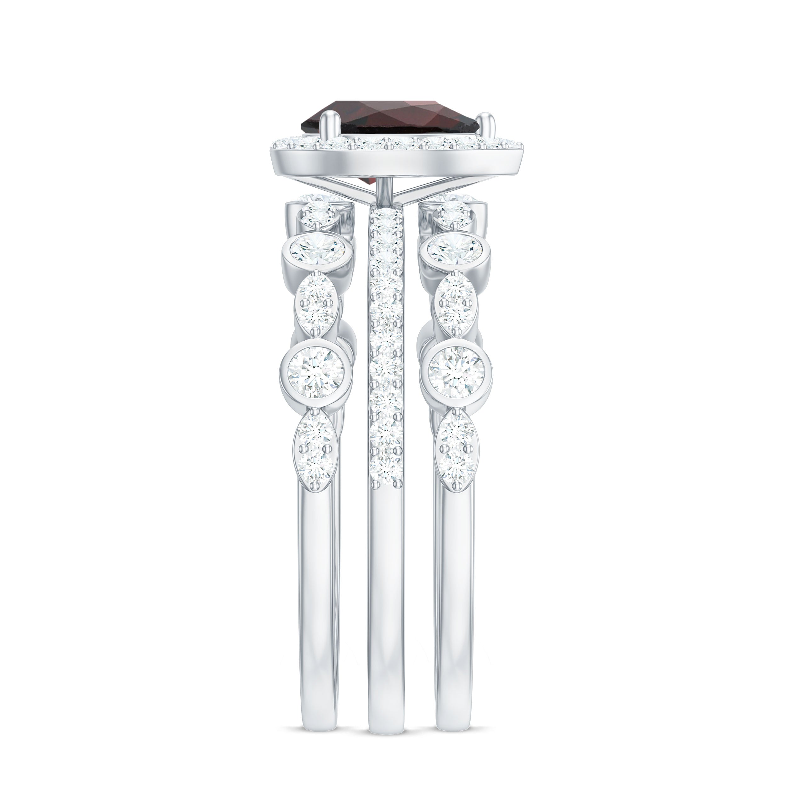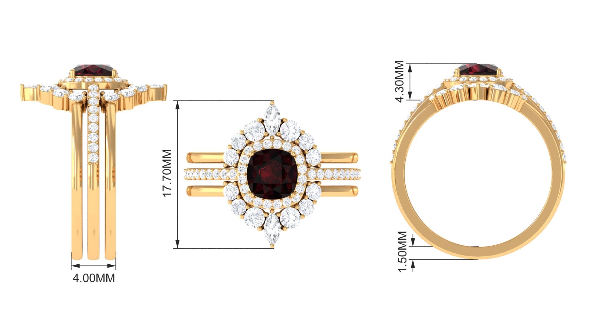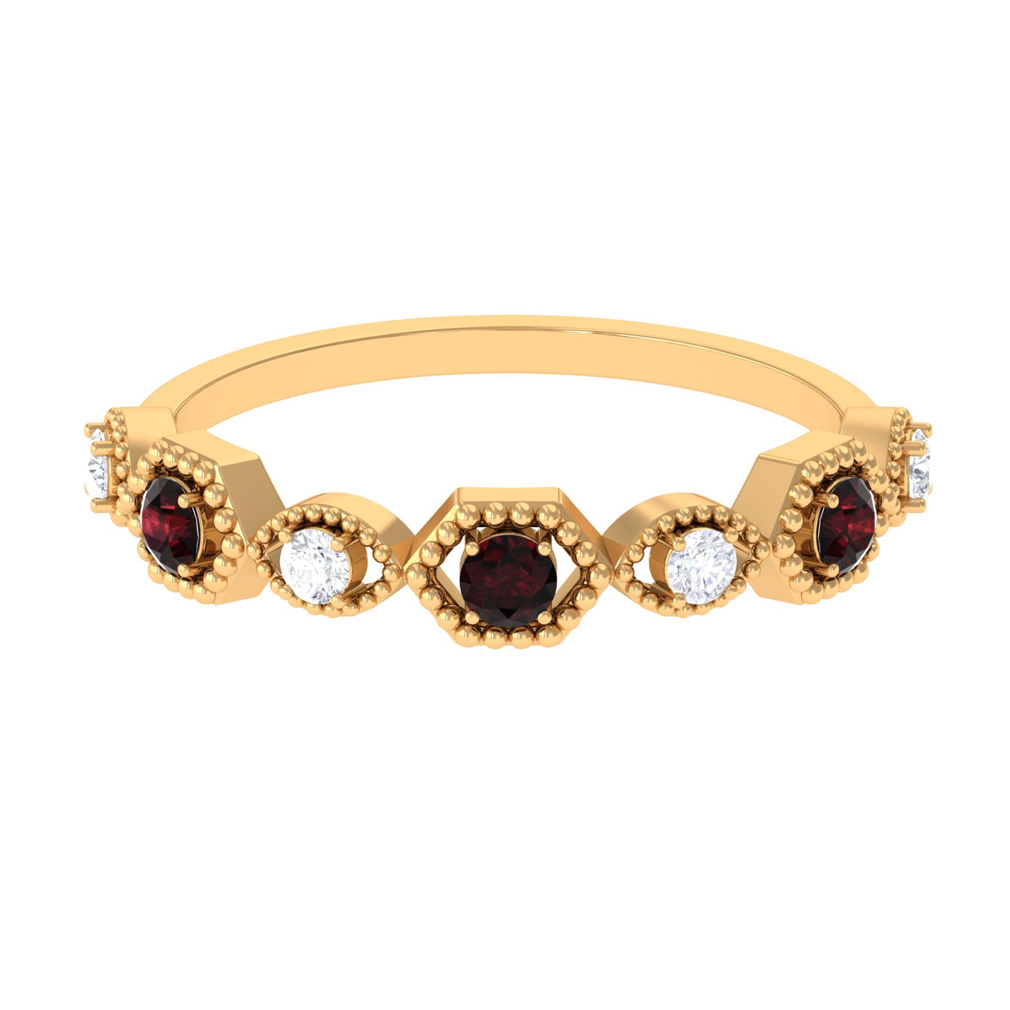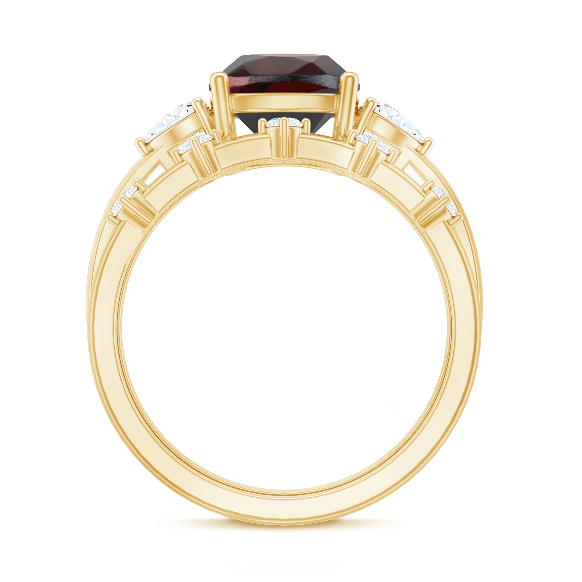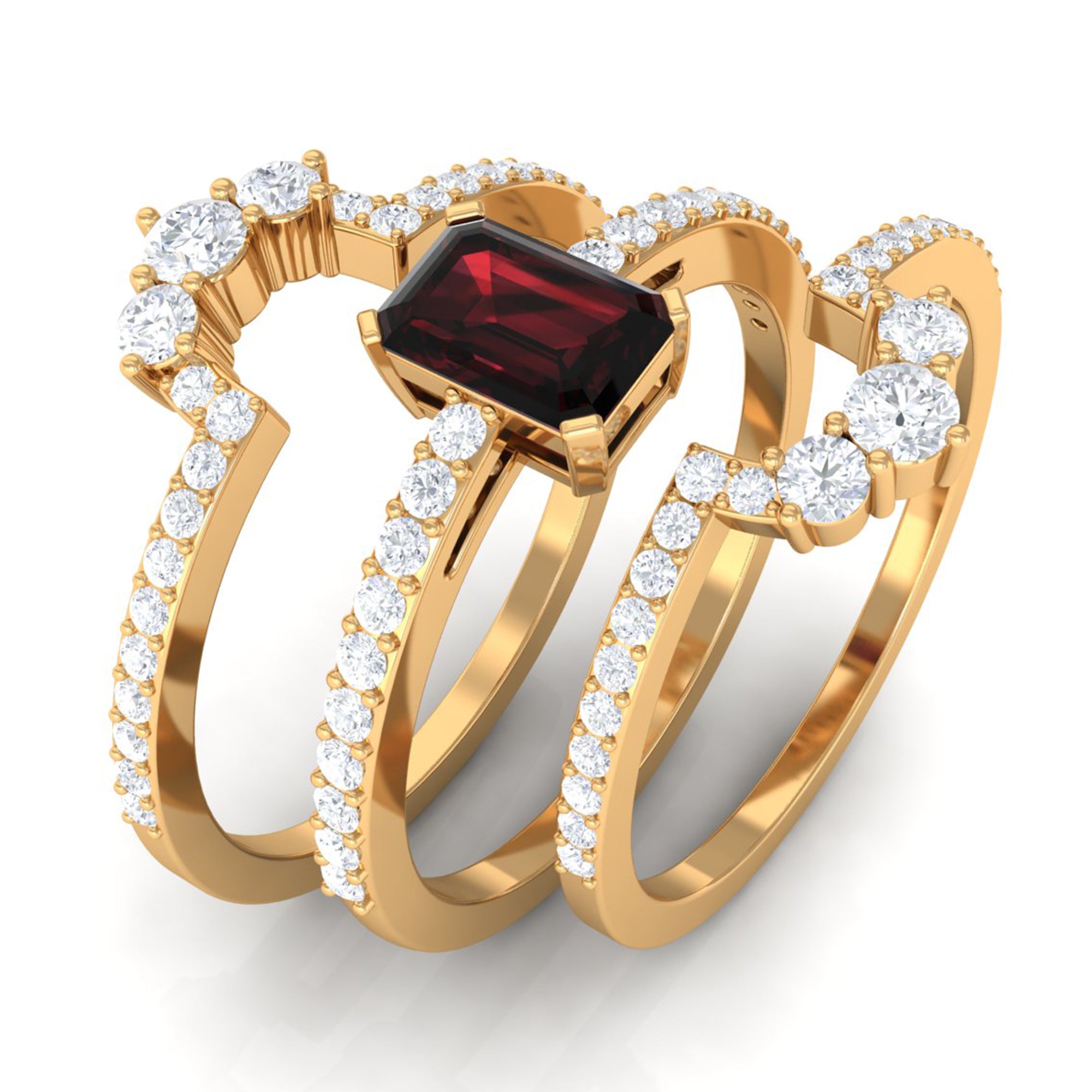 Fantastic garnet wedding band styles are curated by combining different garnet shapes ranging from round, oval, pear, marquise, cushion and many more. The garnet rings can also be selected on the basis of ring styles, most popular being the garnet eternity band for women with a knack for latest stylish trends in fashion. Metal embellishments in different adorable colors of gold namely, yellow gold, white gold and rose gold will leave the jewelry enthusiasts with plethora of engagement rings and wedding bands to choose from.