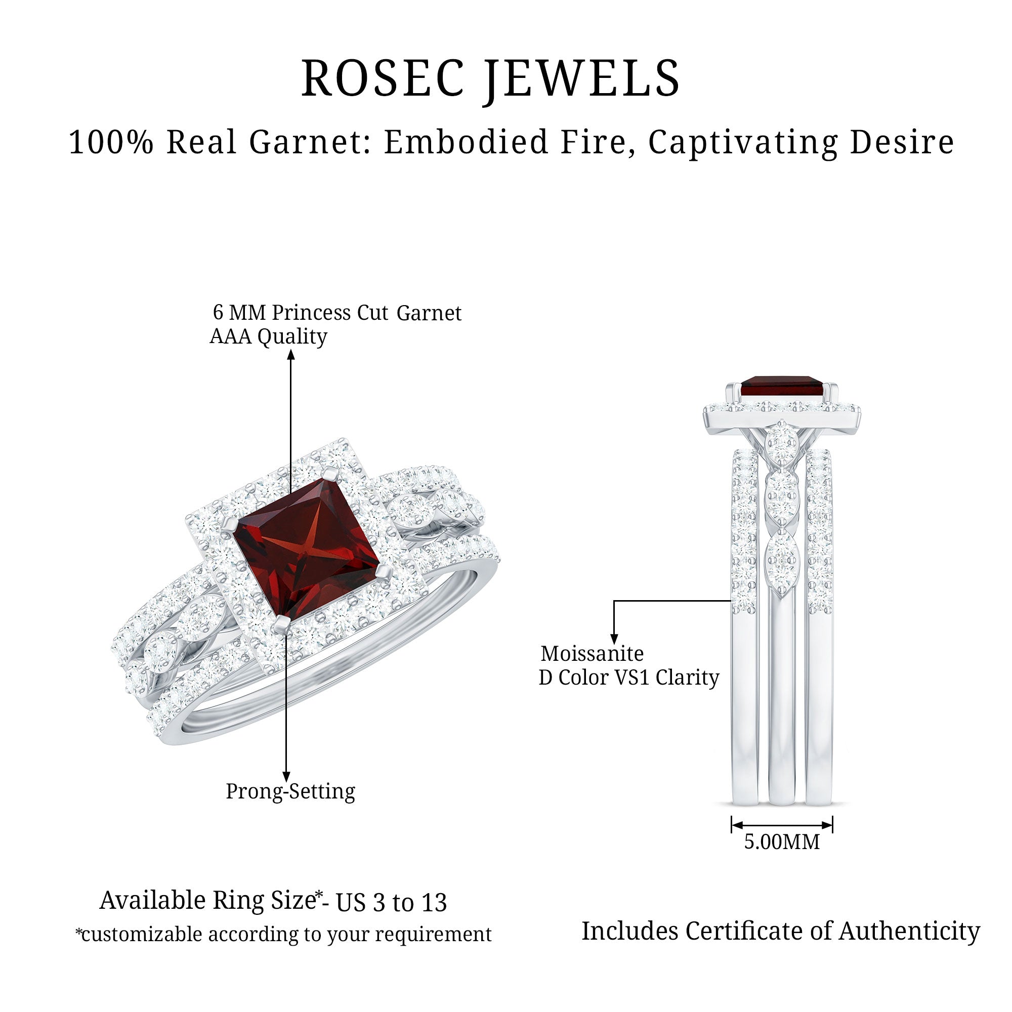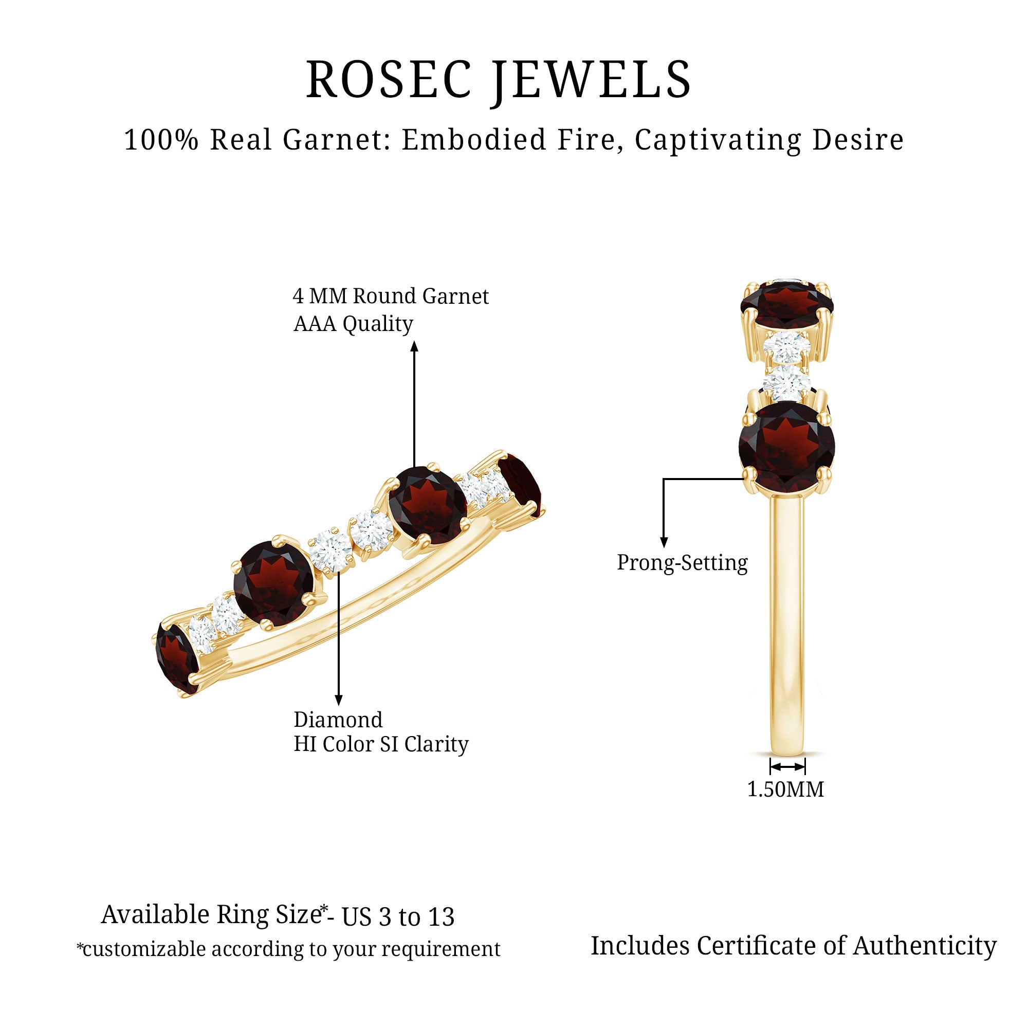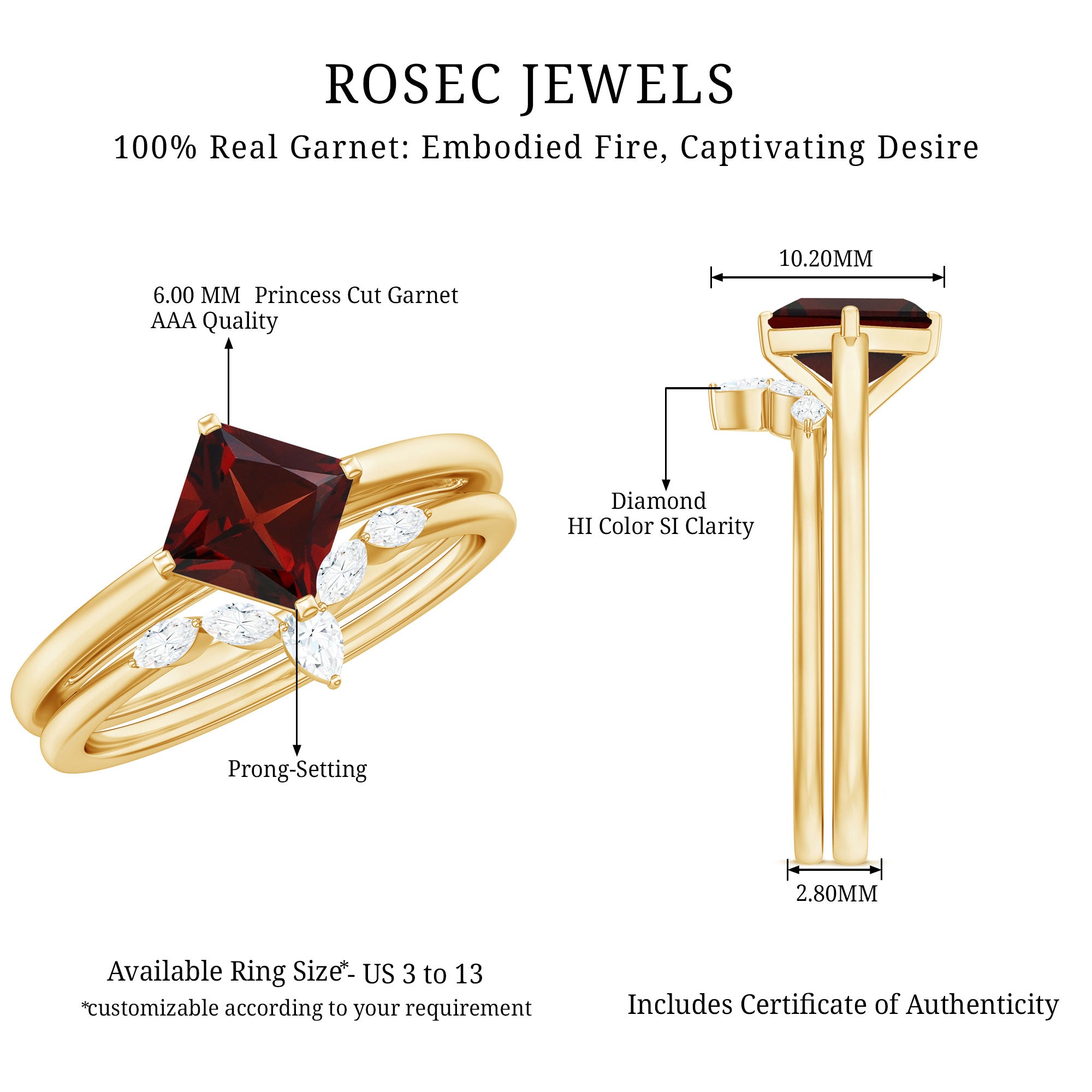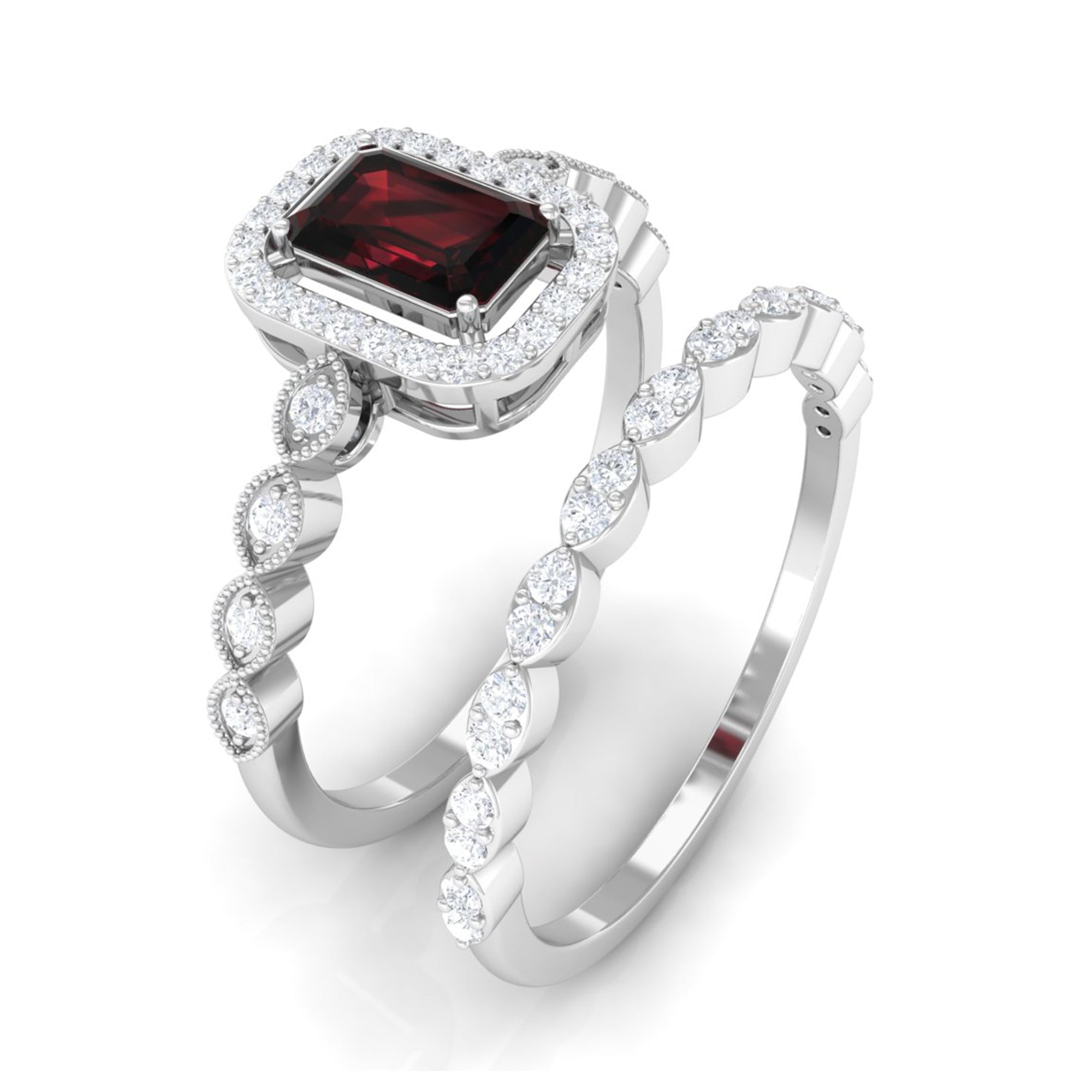 Garnet wedding rings from Rosec Jewels will leave your better half astound when the wedding ring slides down her finger, a moment that is going to sit in her memory forever. Featuring natural garnets, the member of silicate family of minerals and have loved for their wide spectrum of colors of almost all the shades. This great diversity in helps jewelers to employ red garnets while handcrafting garnet rings for women. Our artisans are as well after curating January birthstone rings for wedding that boast of fine and delicate designs.