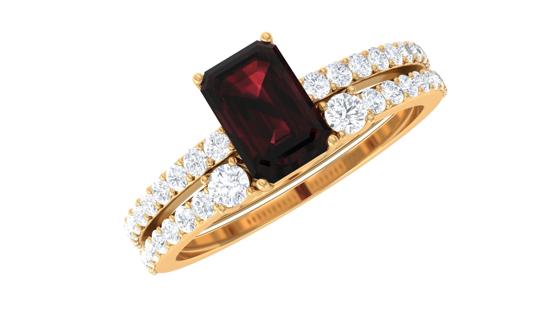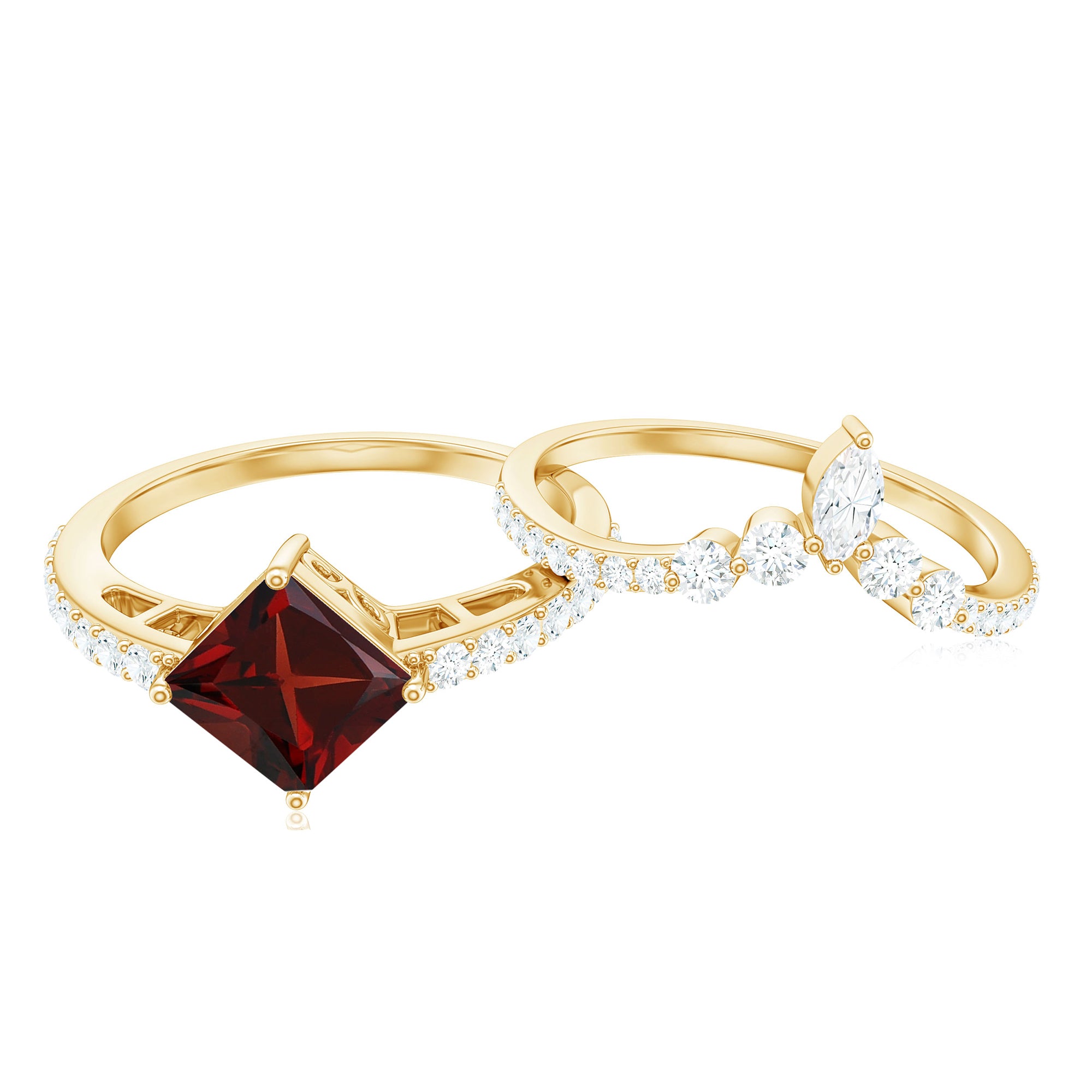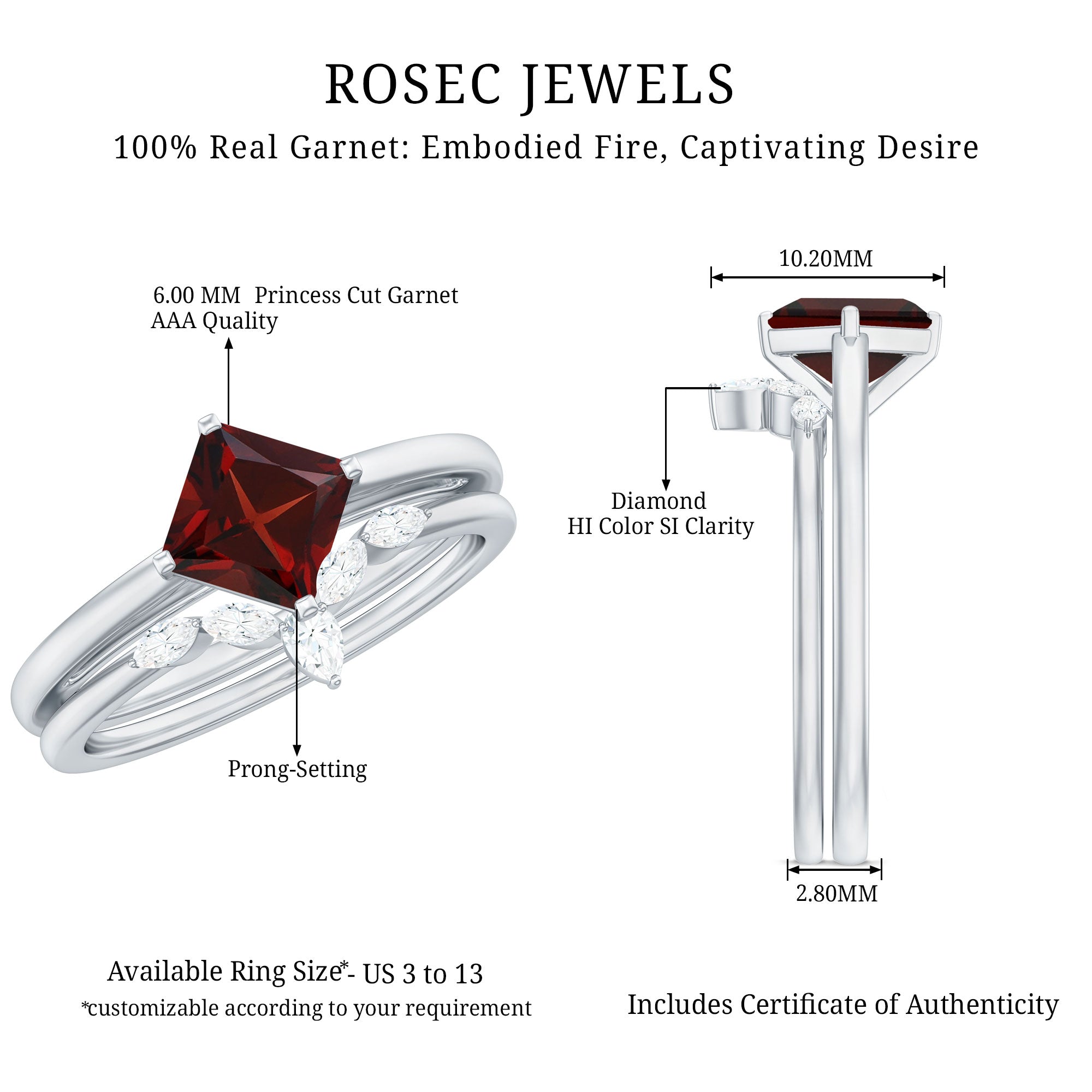 Garnet wedding rings from Rosec Jewels will leave your better half astound when the wedding ring slides down her finger, a moment that is going to sit in her memory forever. Featuring natural garnets, the member of silicate family of minerals and have loved for their wide spectrum of colors of almost all the shades. This great diversity in helps jewelers to employ red garnets while handcrafting garnet rings for women. Our artisans are as well after curating January birthstone rings for wedding that boast of fine and delicate designs.