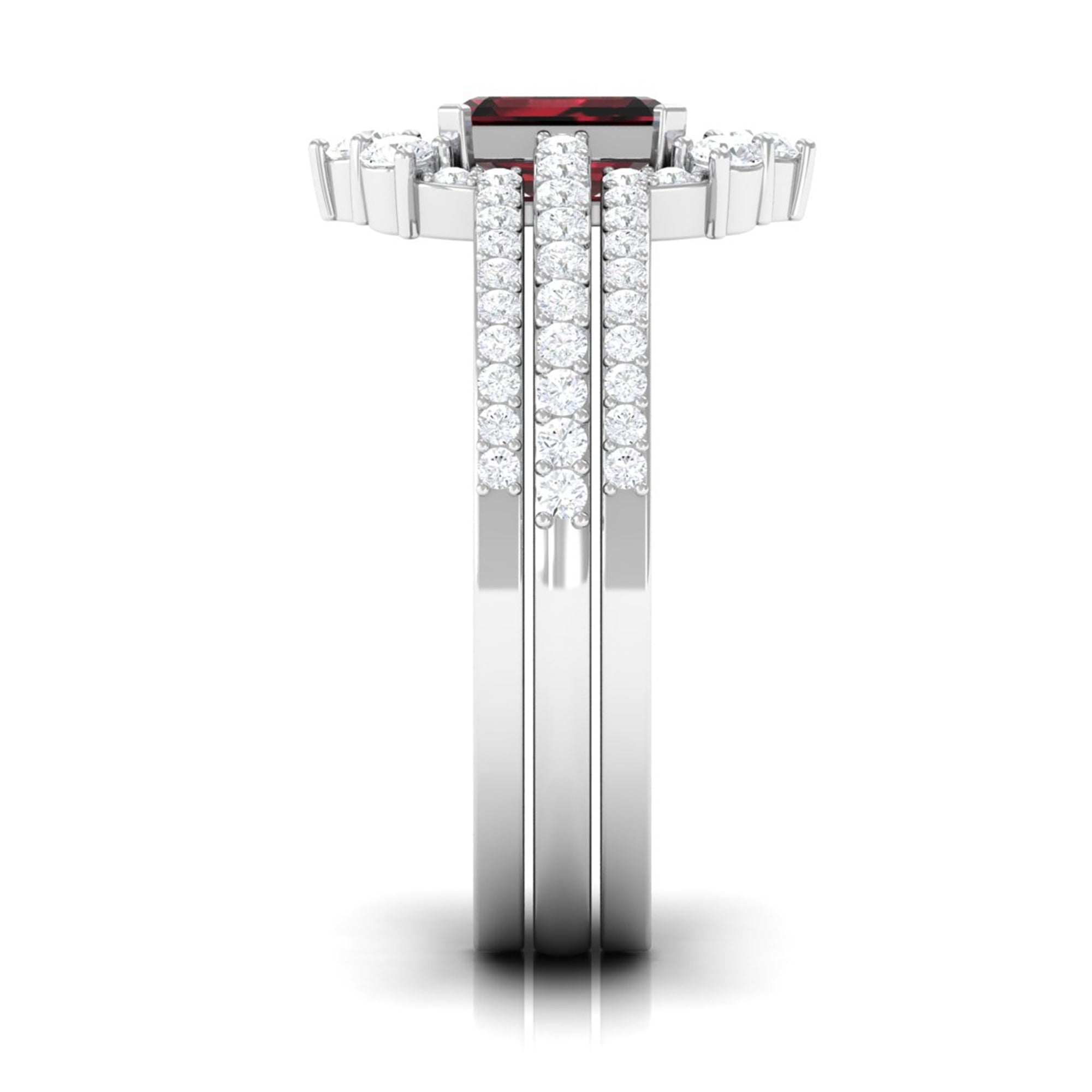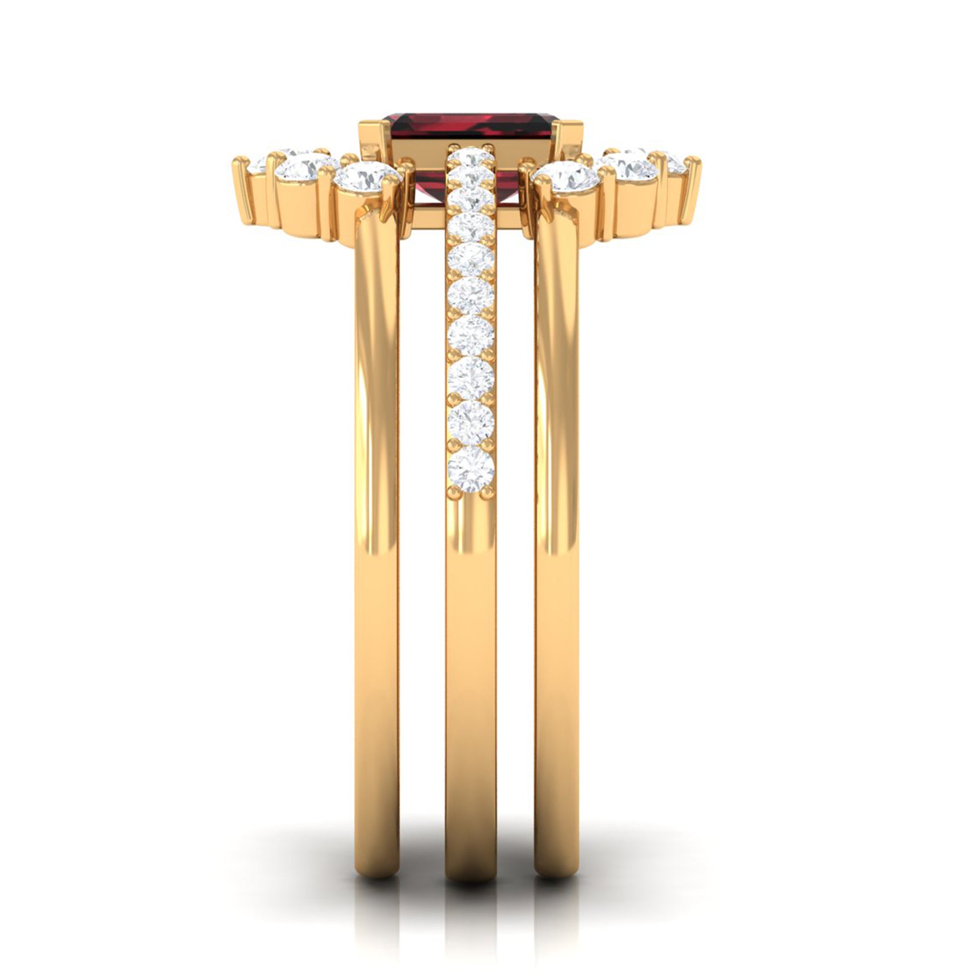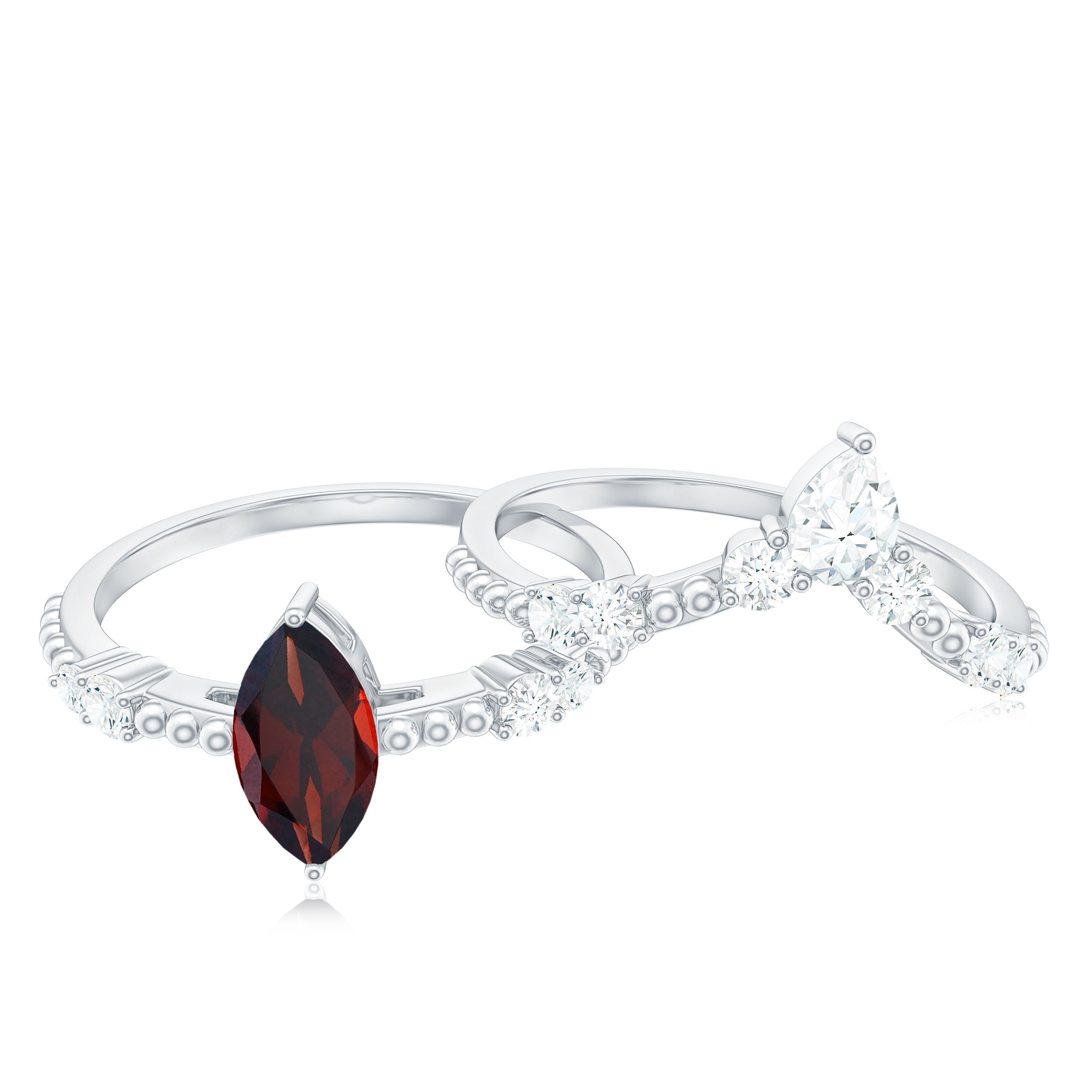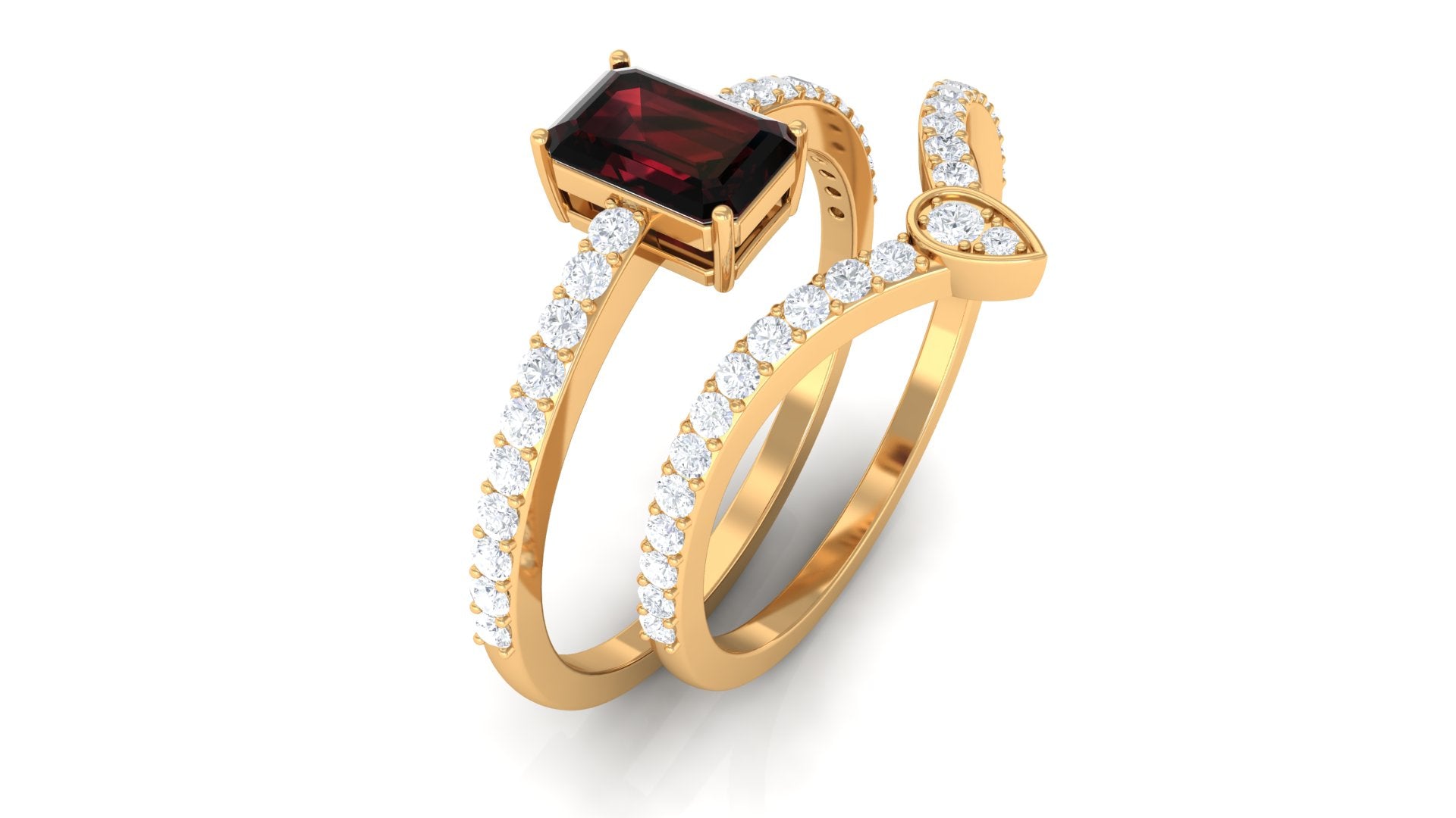 Garnet wedding rings from Rosec Jewels will leave your better half astound when the wedding ring slides down her finger, a moment that is going to sit in her memory forever. Featuring natural garnets, the member of silicate family of minerals and have loved for their wide spectrum of colors of almost all the shades. This great diversity in helps jewelers to employ red garnets while handcrafting garnet rings for women. Our artisans are as well after curating January birthstone rings for wedding that boast of fine and delicate designs.