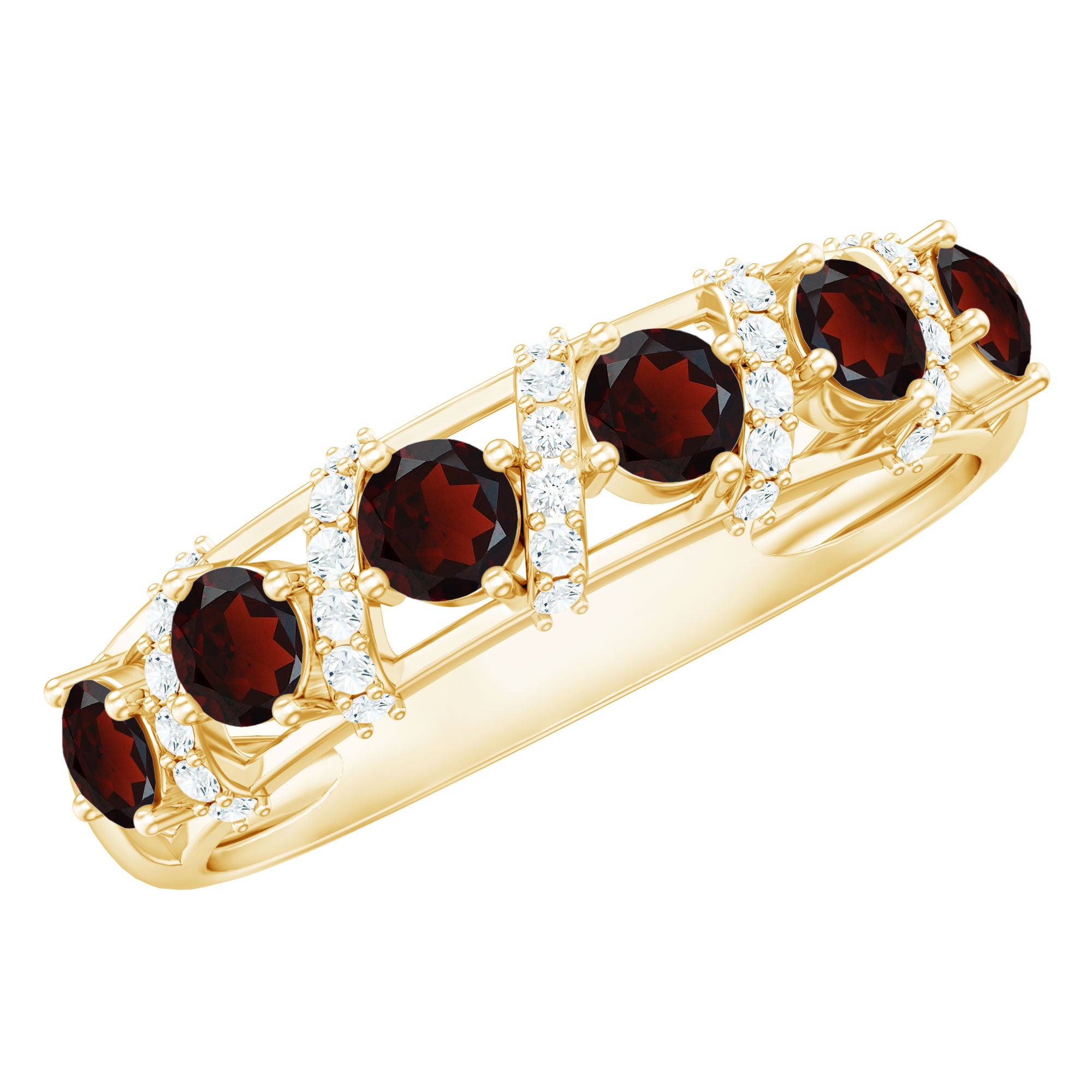 Fantastic garnet wedding band styles are curated by combining different garnet shapes ranging from round, oval, pear, marquise, cushion and many more. The garnet rings can also be selected on the basis of ring styles, most popular being the garnet eternity band for women with a knack for latest stylish trends in fashion. Metal embellishments in different adorable colors of gold namely, yellow gold, white gold and rose gold will leave the jewelry enthusiasts with plethora of engagement rings and wedding bands to choose from.