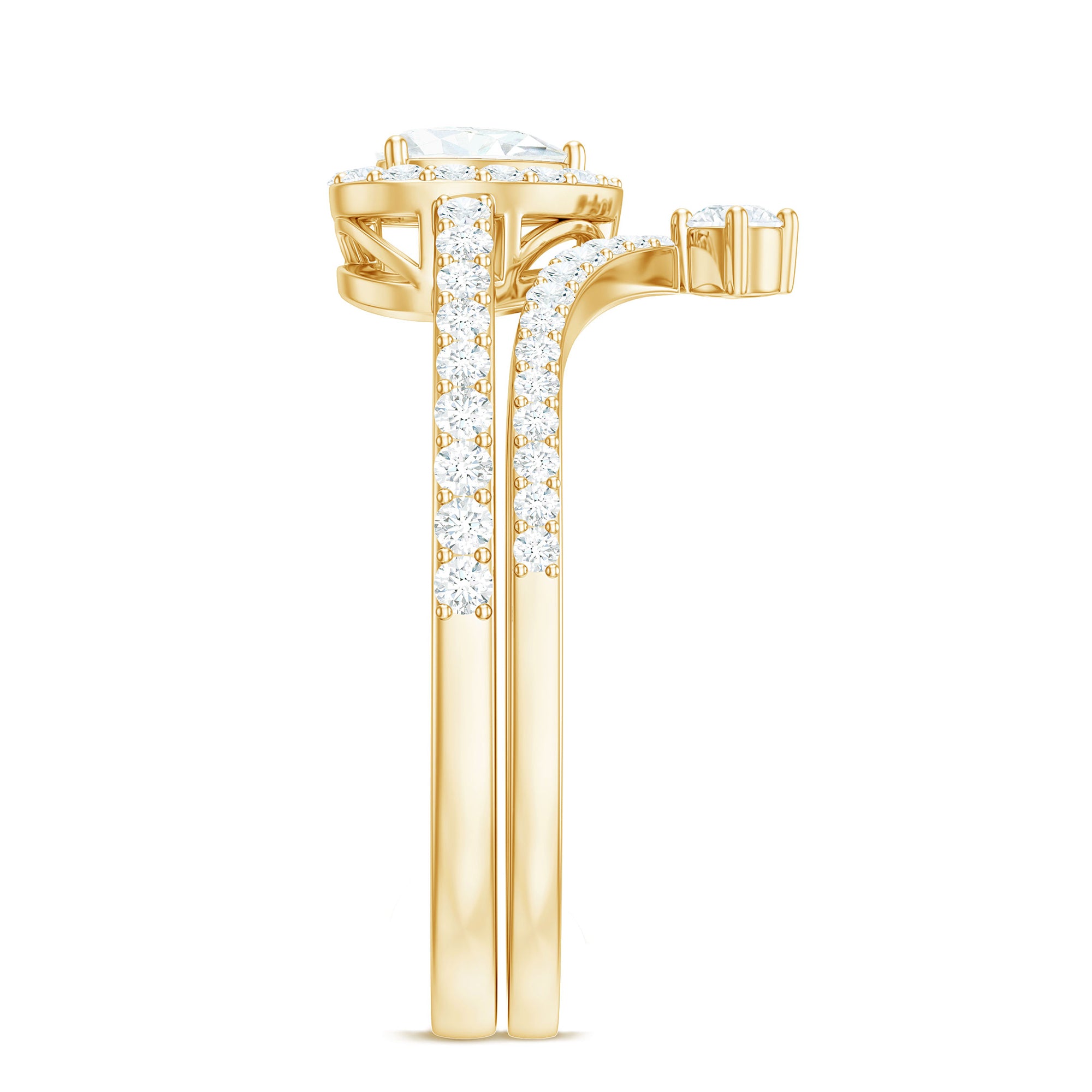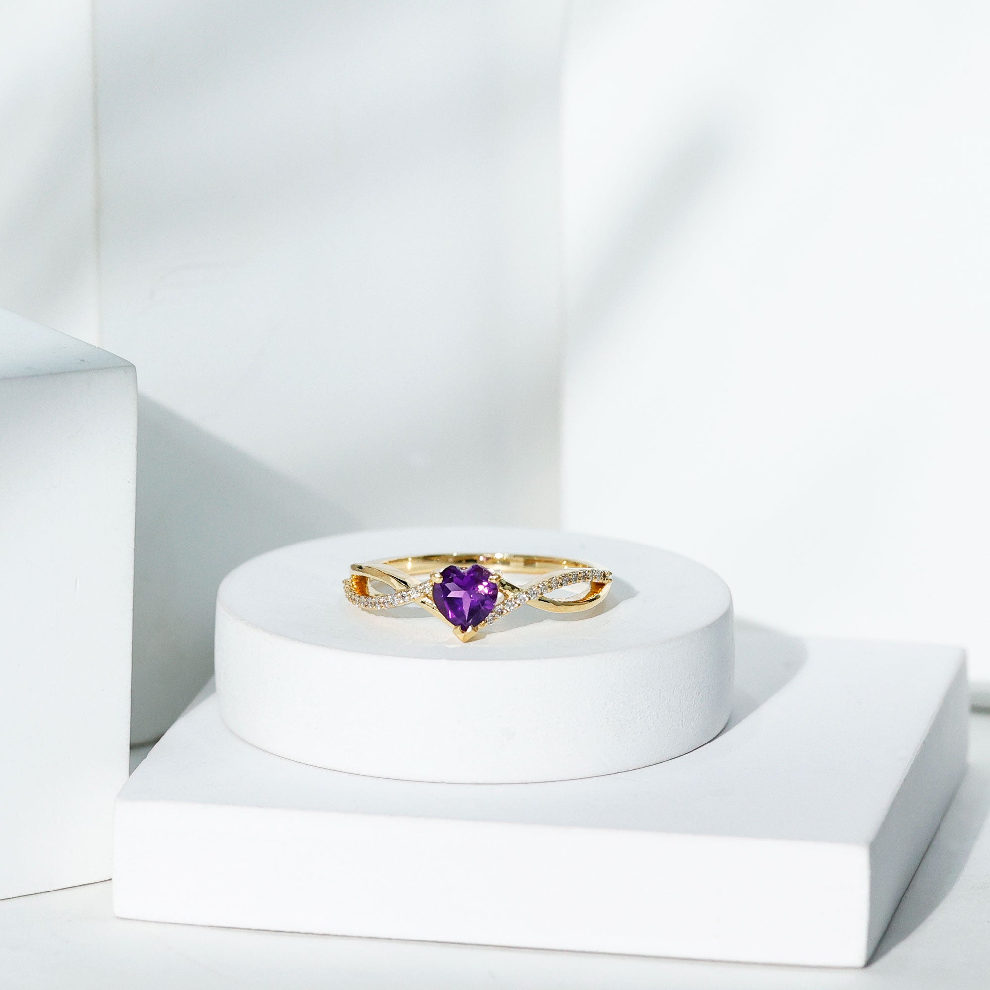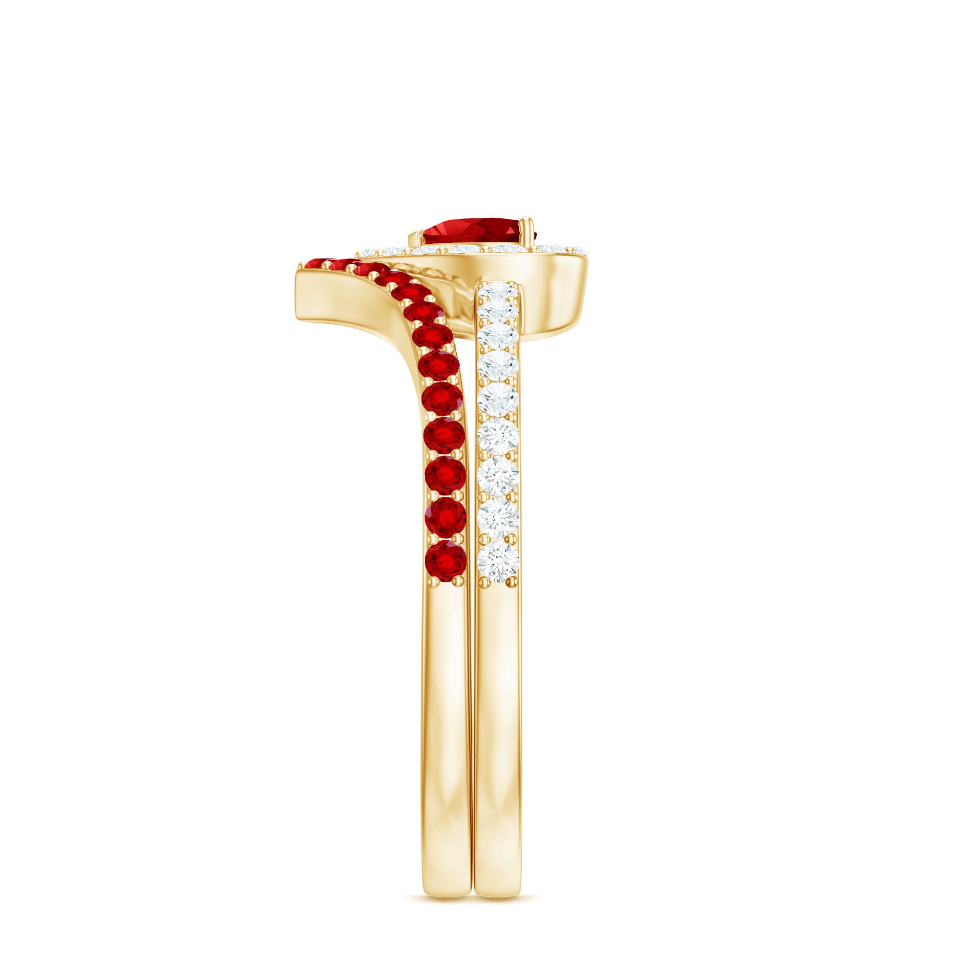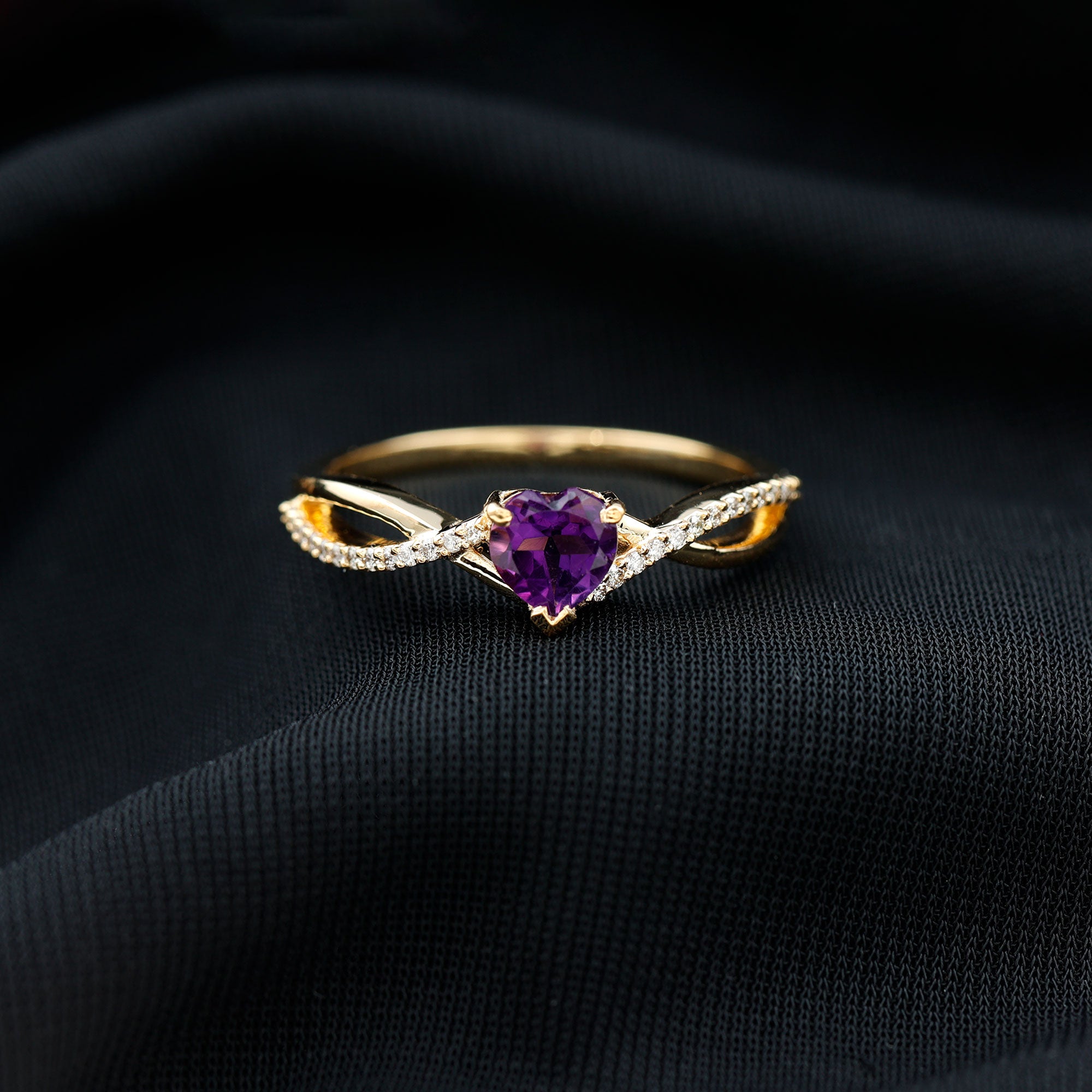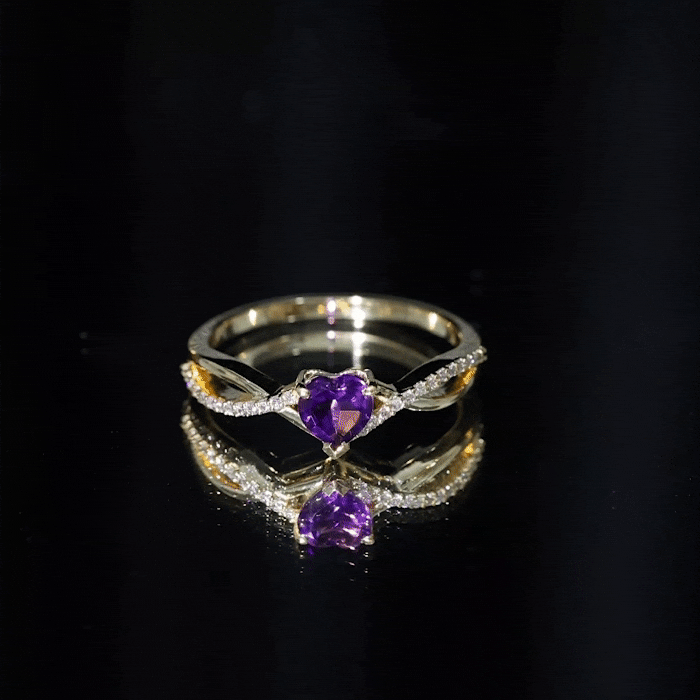 Heart shaped rings can be worn differently depending on whether you are wearing it solo or stacking it with other bands. Like if you are wearing it as a solo piece that tip of the gemstone's heart should point towards your heart. And if you plan to embrace its stacked beauty, then choose eternity bands in diamonds or colored gemstones. Make sure that the stacking band complements the shape of the gemstone.