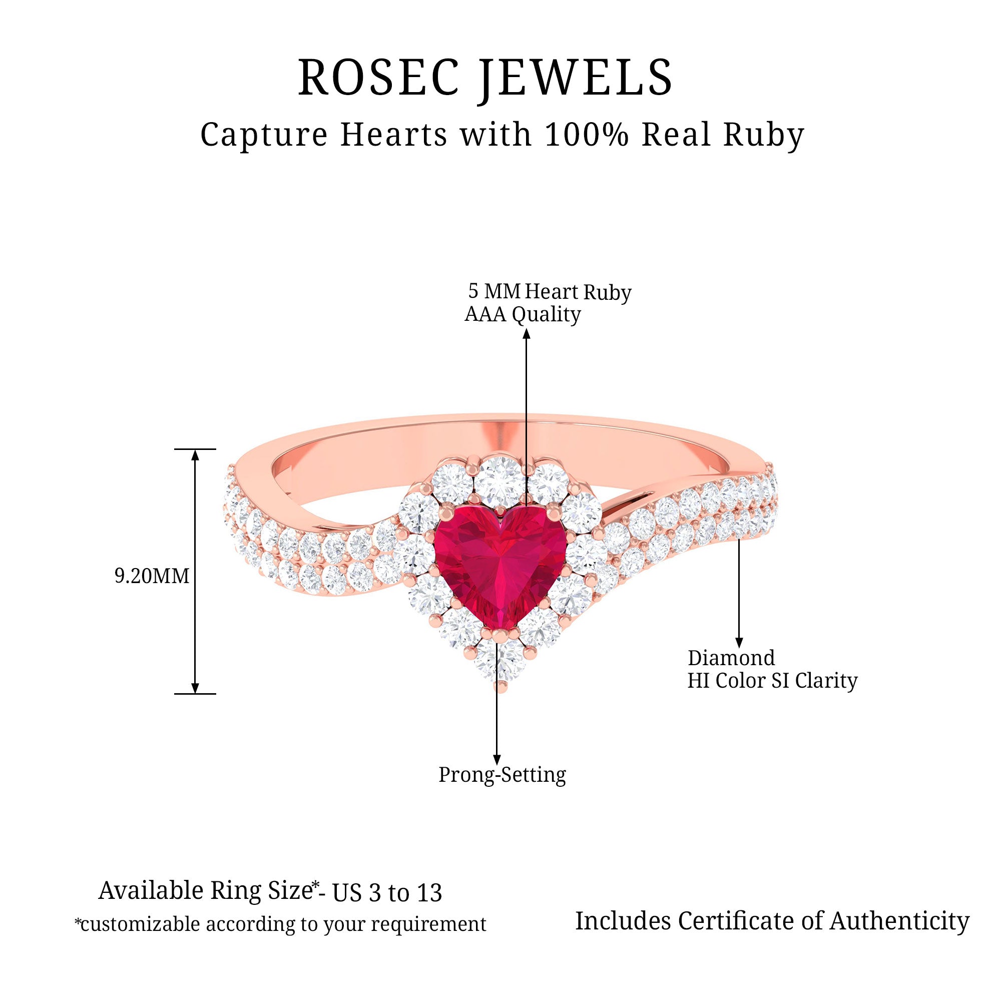 Heart shaped gemstones look less defined in smaller weights. So more than one carat heart gemstone can be the best choice for minimal engagement rings. While a heart shaped diamond ring 2 carat and higher can be a good choice as a heart ring solitaire.