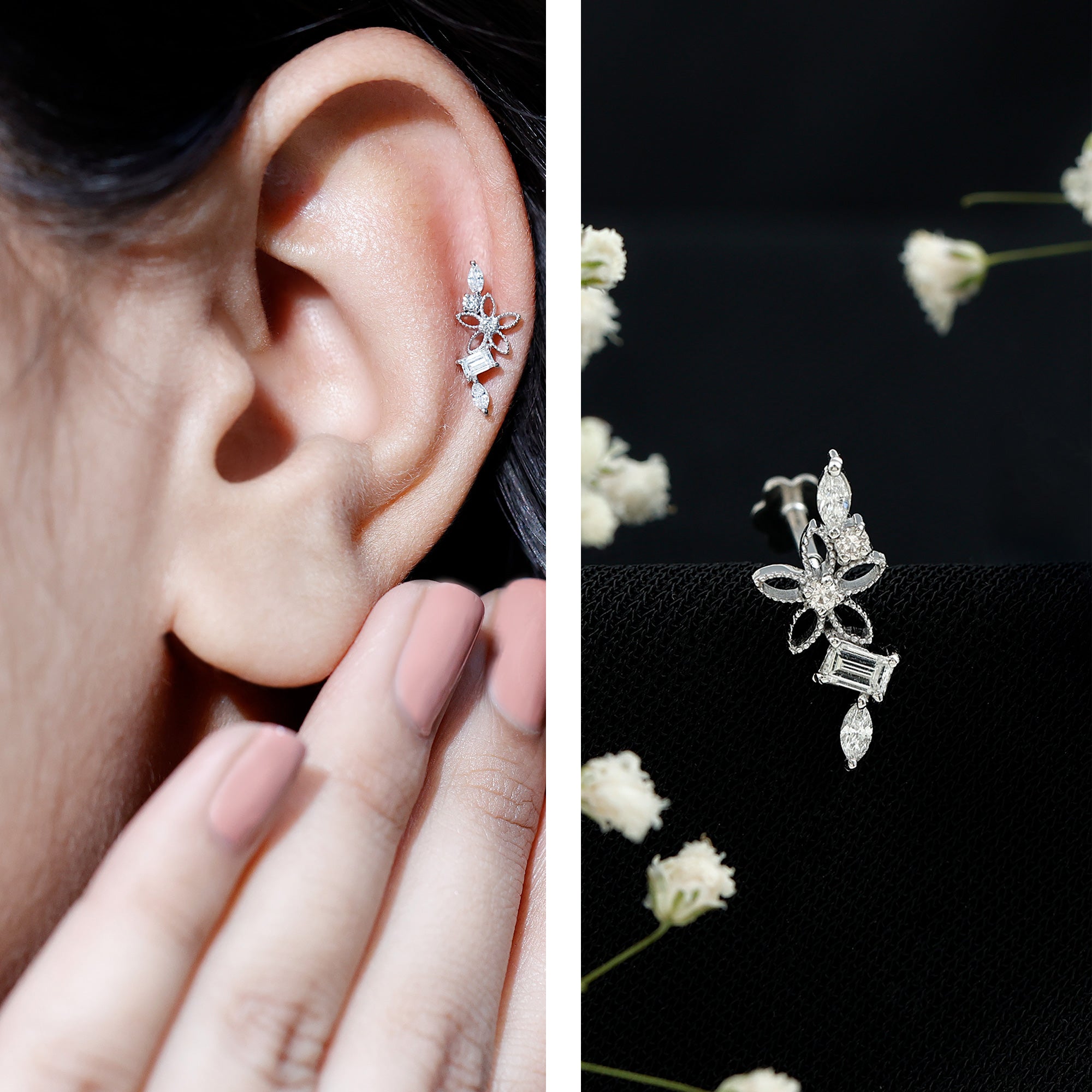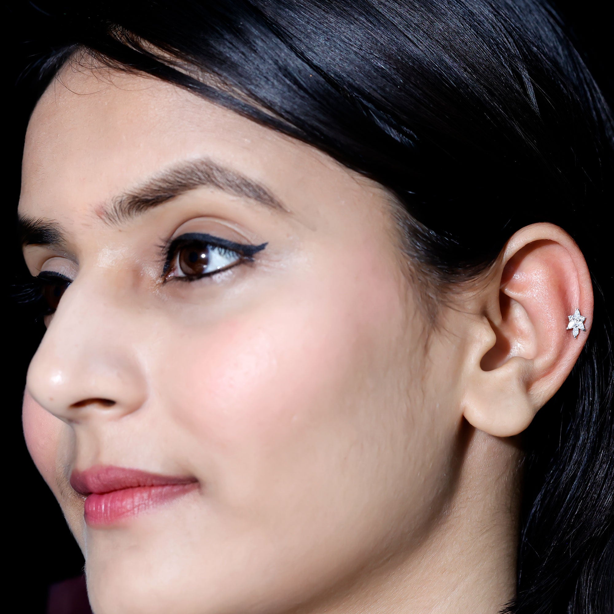 • Stud Earrings: - Basically, helix stud earrings can be worn anywhere from the lower part of the earlobe to the upper curve of the ear. They offer a versatile range of designs, encompassing drop studs, heart-shaped studs, solitary studs, infinity helix studs, halo studs designed specifically for helix piercings. Our Earring for Helix Piercing stands out as an ideal choice for everyday wear, boasting both style and comfort without causing any irritation.