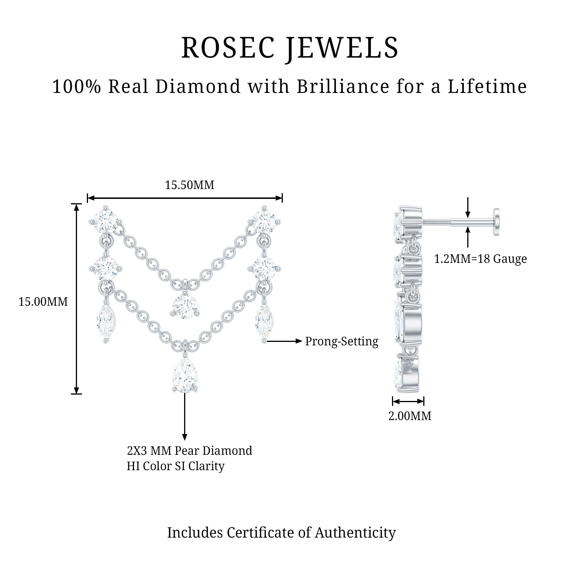 • Crawler Earrings: - Unique pieces of jewelry specially designed to wrap around the helix of the ear, making a captivating design to suit elegantly to the upper earlobe. You can uplift your style with these crawler earrings, perfect for every occasion. This crawler earring comes in different designs and styles, allowing you to express your personality through wearing these most exquisite earrings.