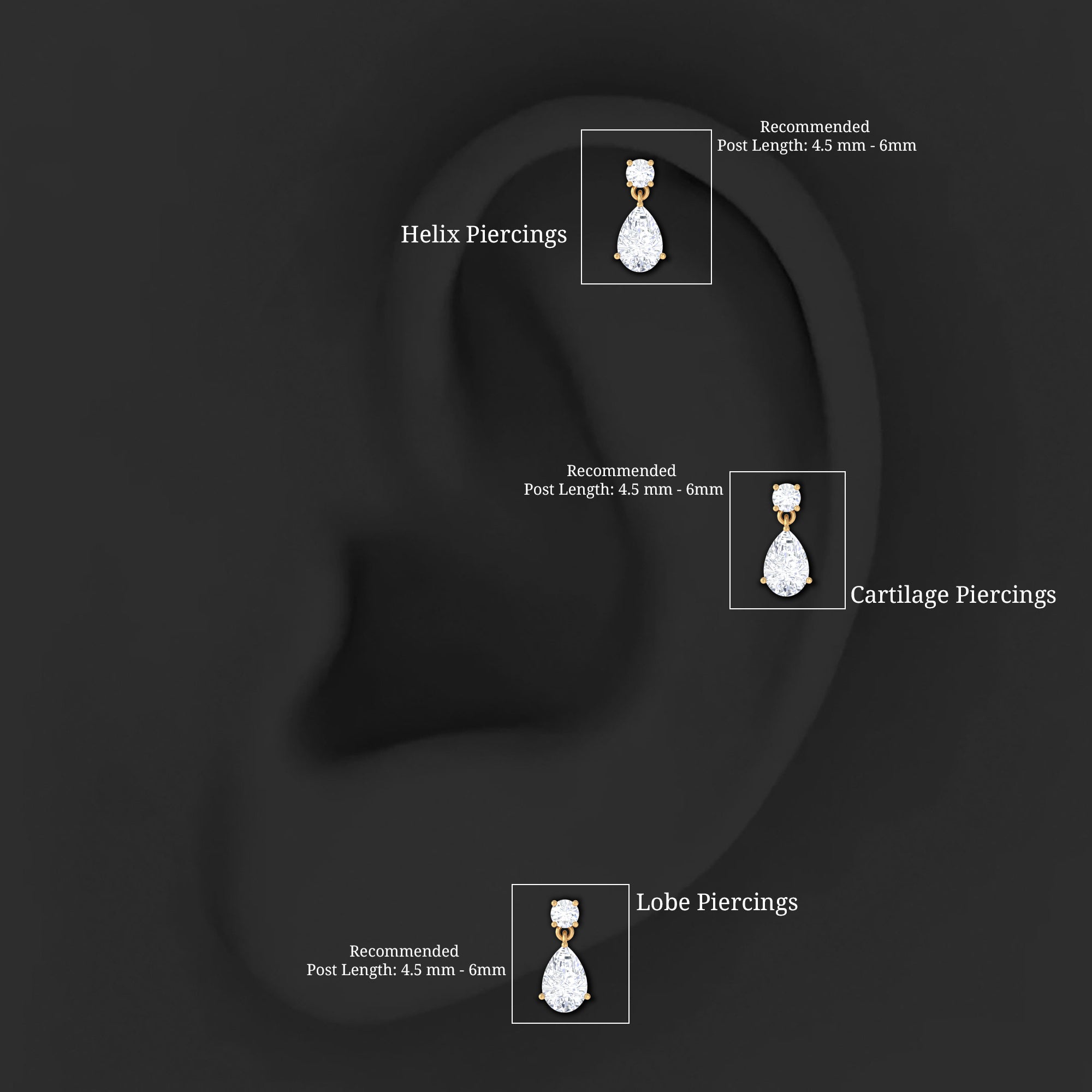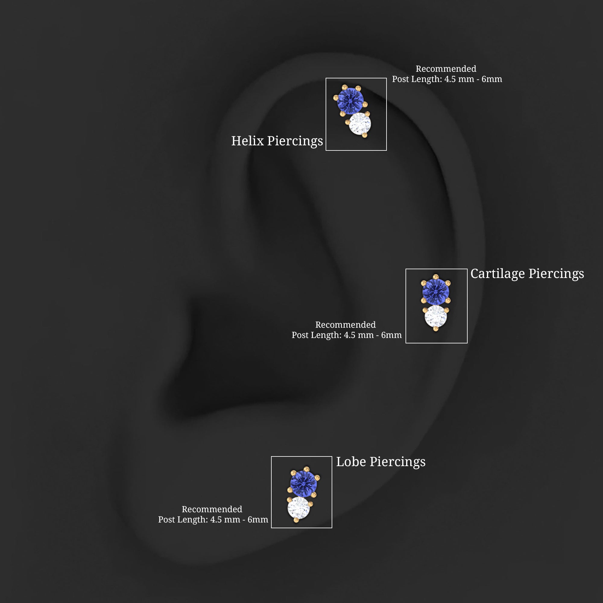 Stud Earrings: - Basically, helix stud earrings can be worn anywhere from the lower part of the earlobe to the upper curve of the ear. They offer a versatile range of designs, encompassing drop studs, heart-shaped studs, solitary studs, infinity helix studs, halo studs designed specifically for helix piercings. Our Earring for Helix Piercing stands out as an ideal choice for everyday wear, boasting both style and comfort without causing any irritation.