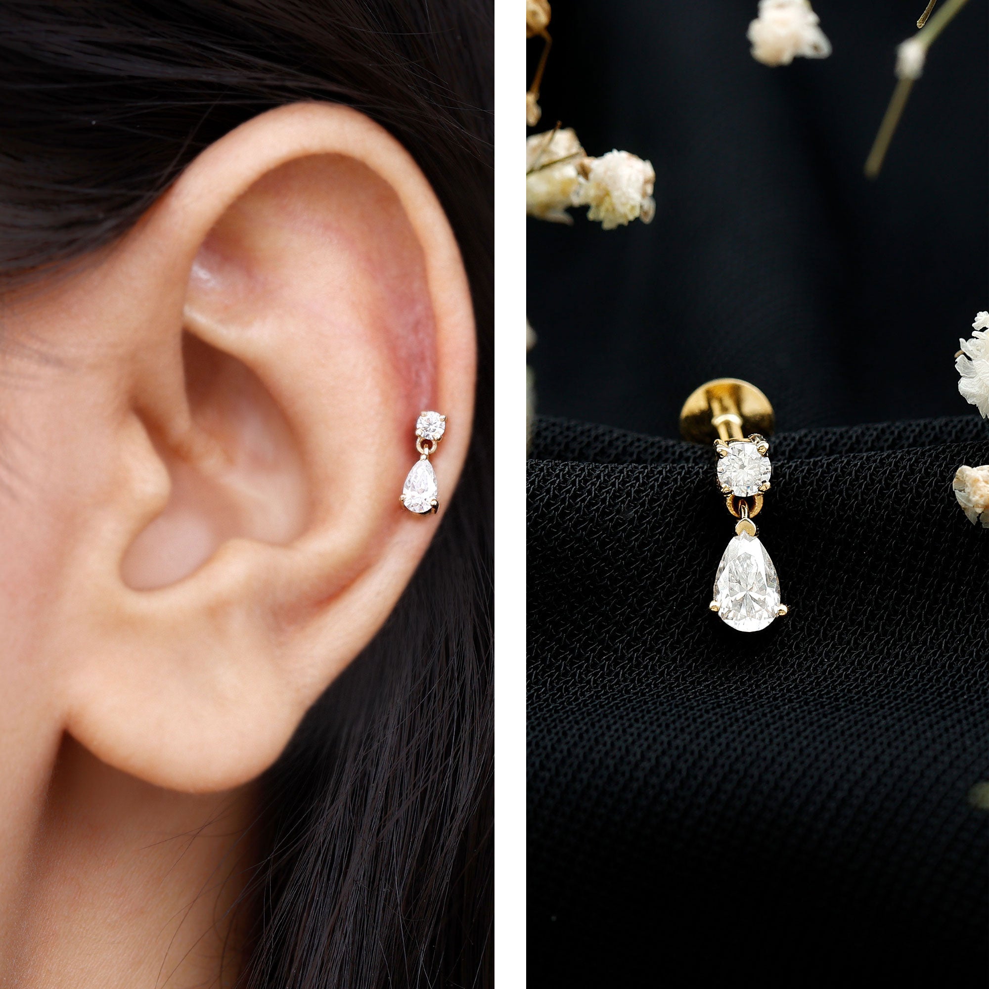 Cartilage Earrings | Conch Earrings | Tragus Earrings | Nose Piercing Jewelry | Diamond Ear Piercing Jewelry | Moissanite Ear Piercing Jewelry | Pearl Ear Piercing Jewelry