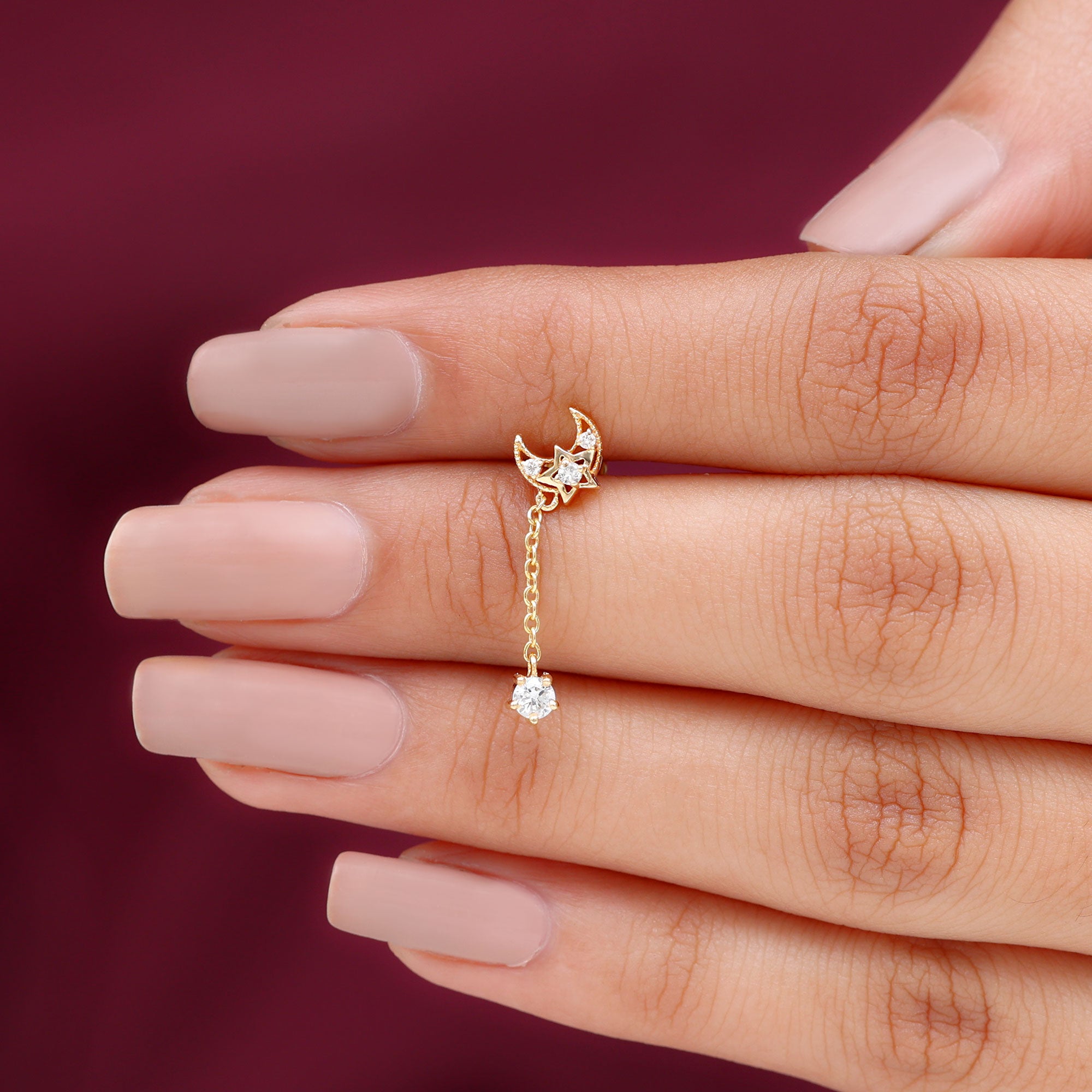 Celestial Earrings: - This celestial style isn't just jewelry, they're a beyond aesthetic, an adornment for upper ear piercing. Delicately crafted for helix piercing, each pair of celestial ear pieces highlights the vibrant hues of colored gemstone. The designs are taken from sparkling stars and the moon. The earrings range from simple studs, to ornate dangles, crafted with precious metals and colored gemstones to make a captivating accessory.