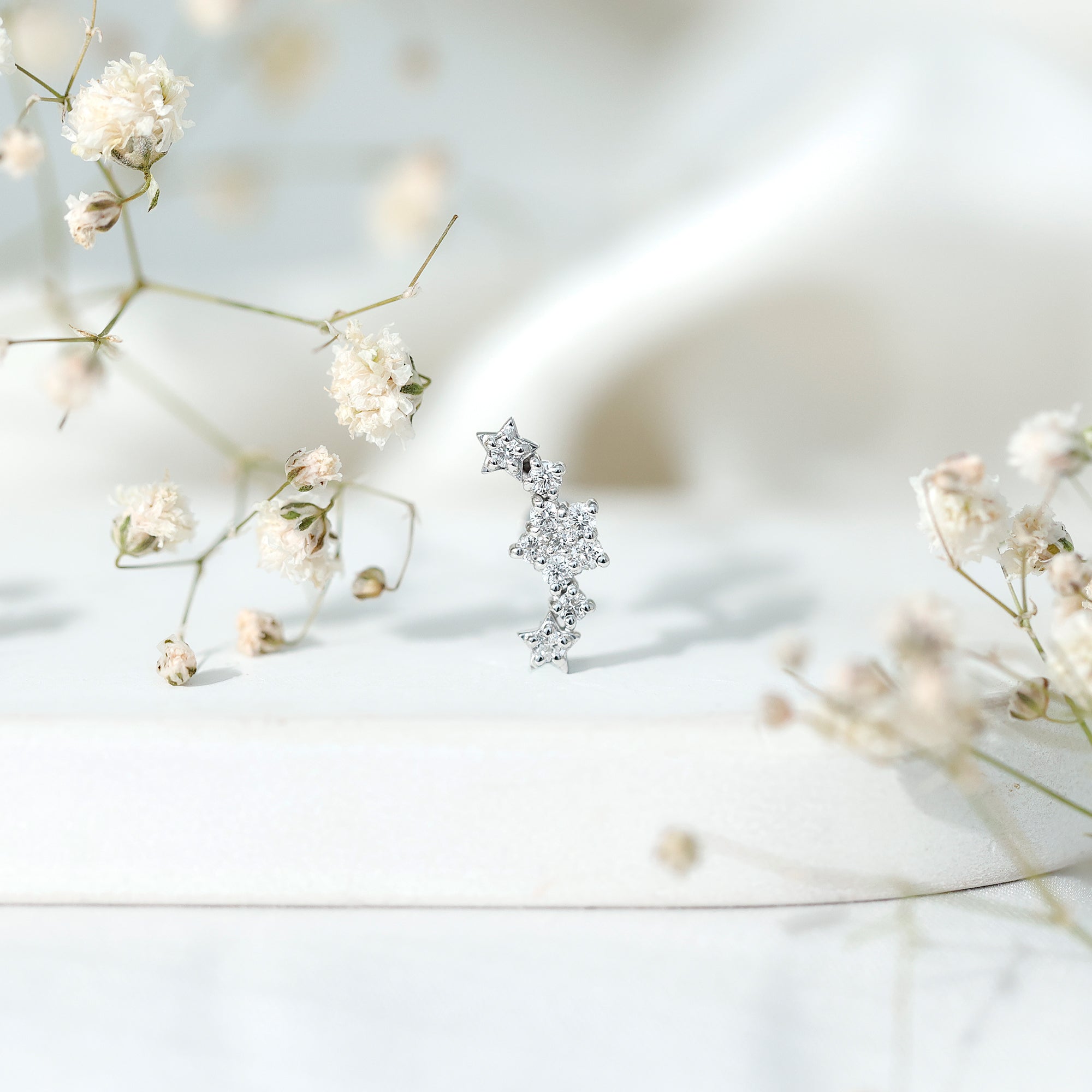 Climber Earrings: - they are precisely made to flaunt on the earlobe. These type of earrings has a curved shape, elegantly showing off the curve of the ear elegantly, and create a classic look. The earrings look like you get multiple piercings without the actual need. They're ideal for individuals seeking a classy and stylish appearance without enduring the discomfort of additional piercings.