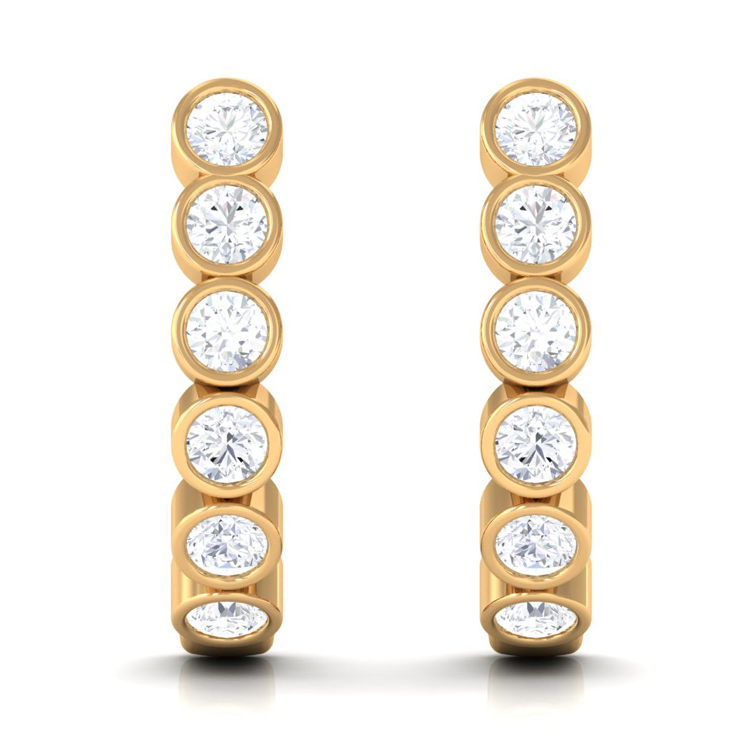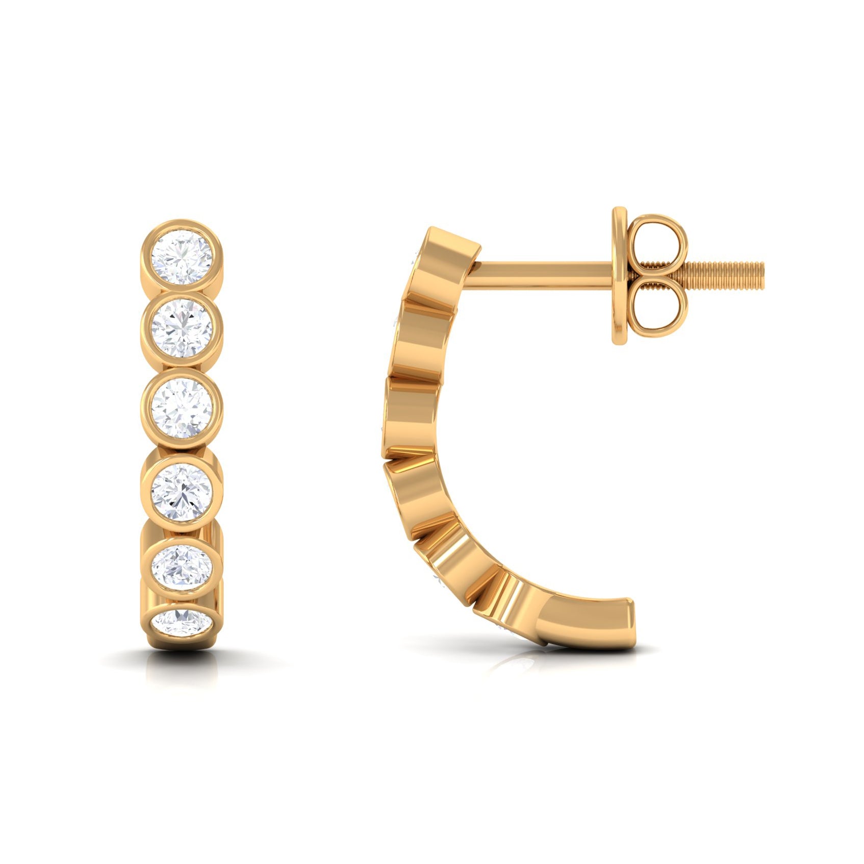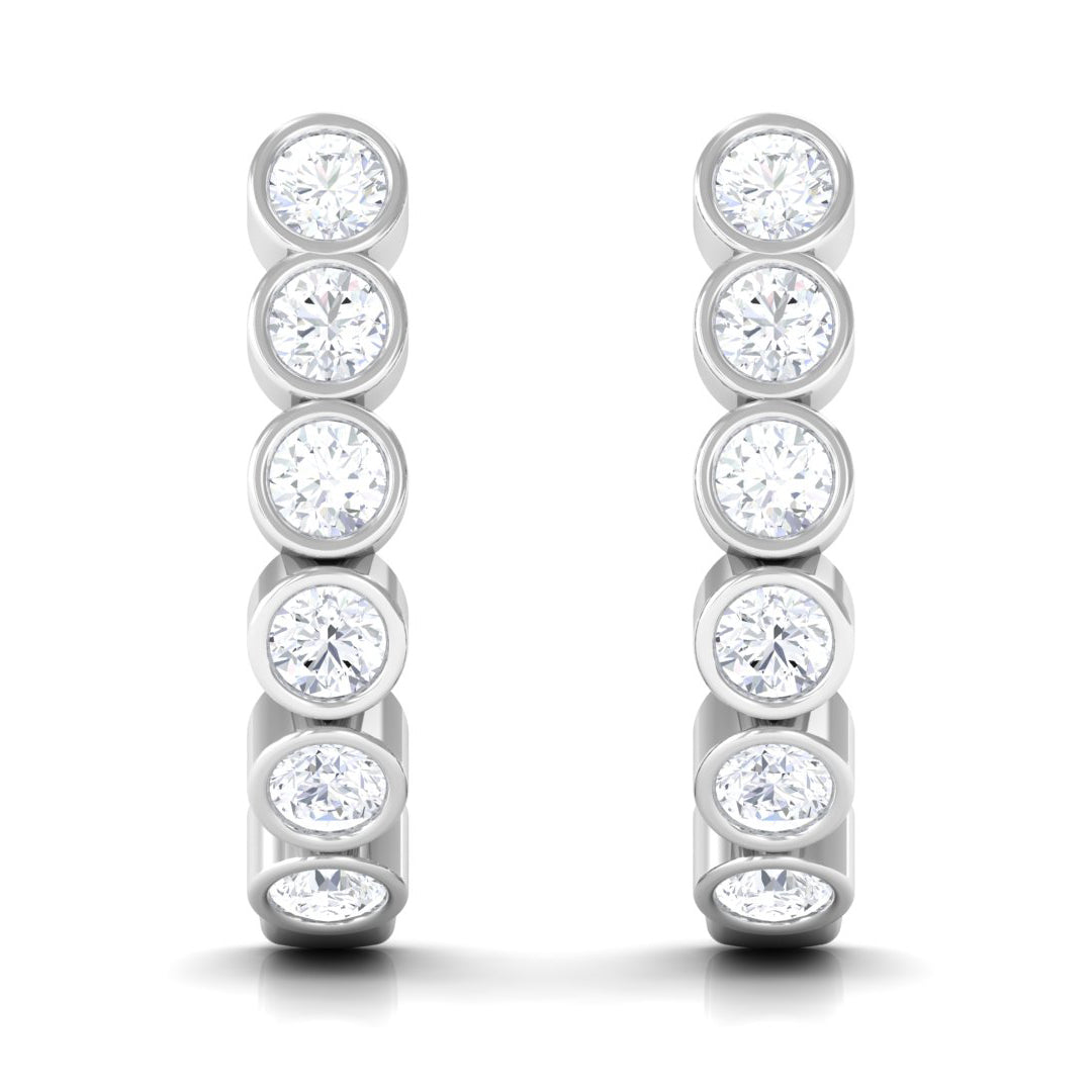Diamond Hoop Earrings: - A timeless jewelry, essential for every woman. Our diamond hoop earrings boast a delicate arrangement of small glistening diamonds embellishing the curving of hoop earrings. There is no other jewelry sparkling like these diamond hoop earrings.