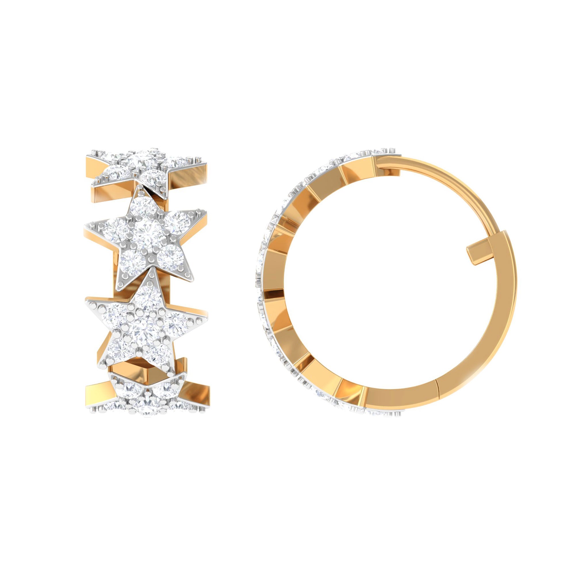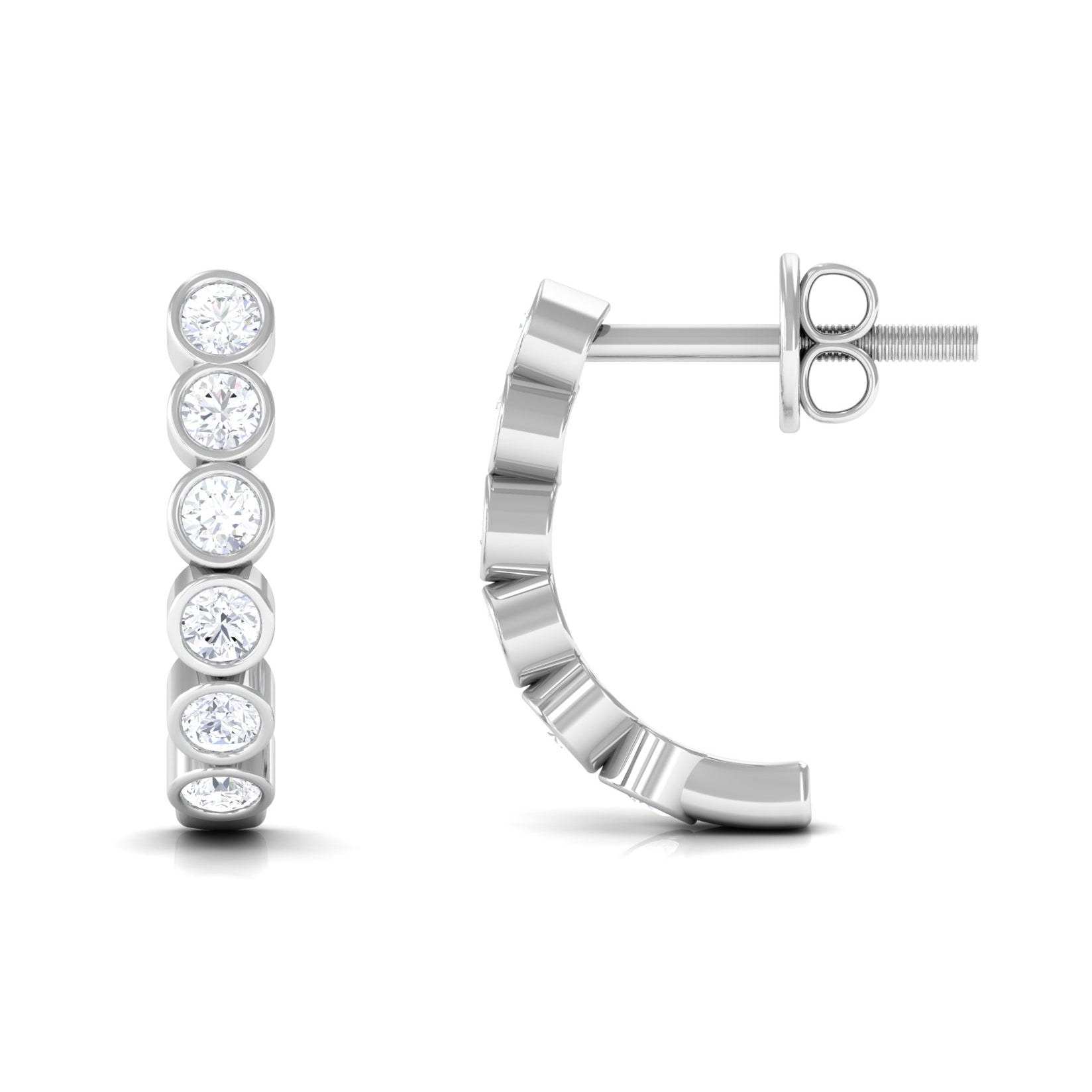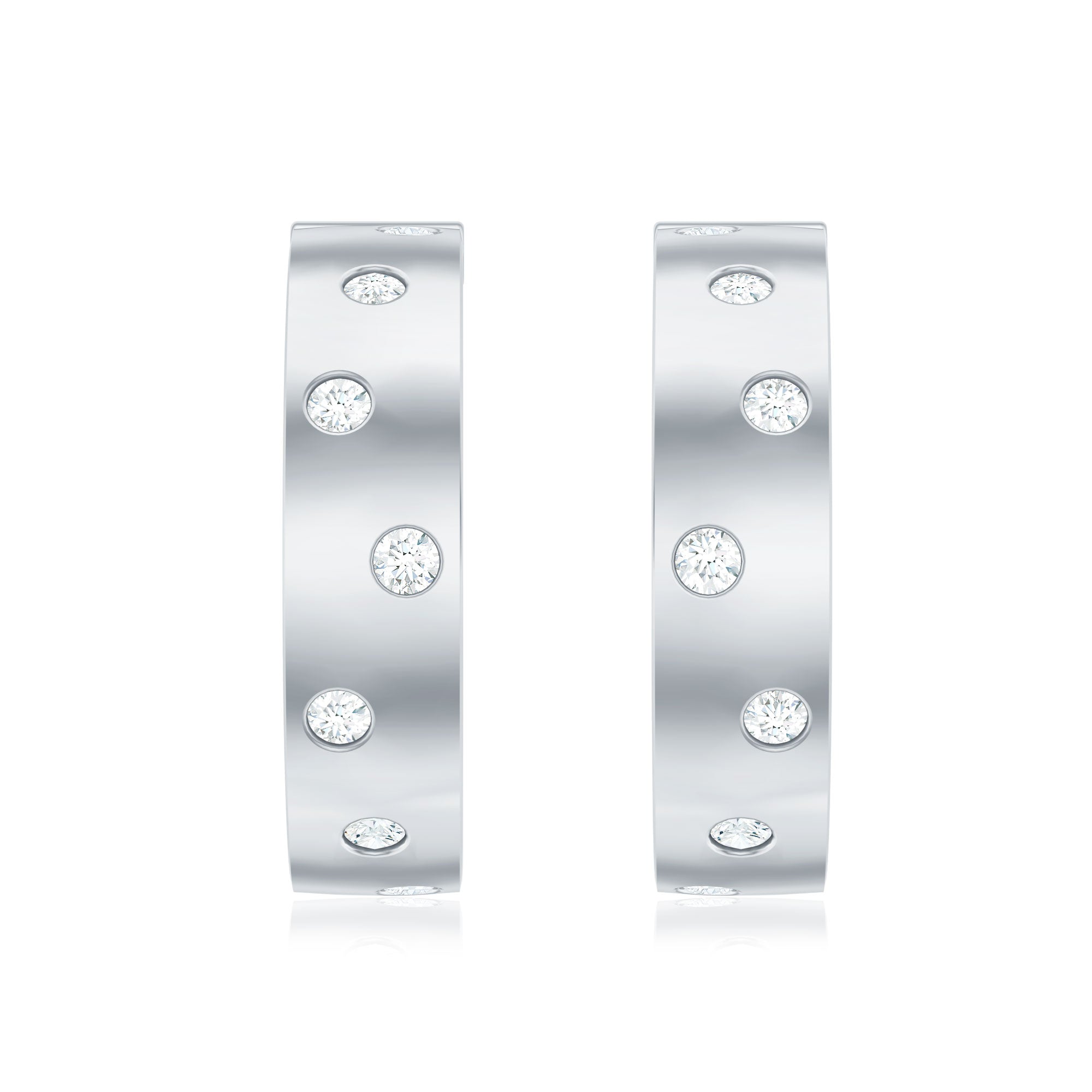 Diamond Hoop Earrings: - A timeless jewelry, essential for every woman. Our diamond hoop earrings boast a delicate arrangement of small glistening diamonds embellishing the curving of hoop earrings. There is no other jewelry sparkling like these diamond hoop earrings.