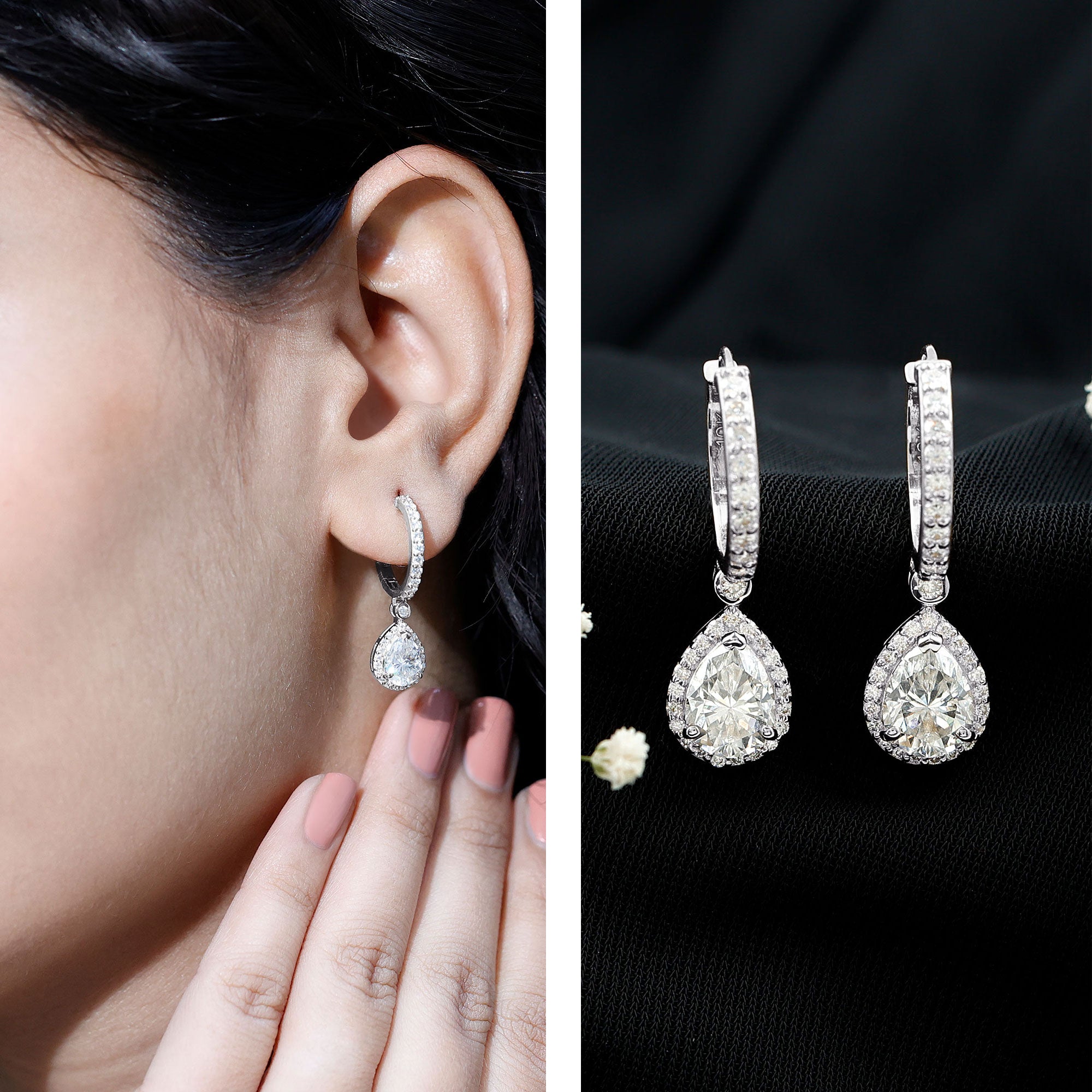 Hoop Drop Earrings: - Hoop drop earrings blend the classic appearance of hoop with the graceful charm of dangling drops. Each pair of hoop drop earrings features a delicate hoop element adorned with a timeless charm, lending a subtle way that captivates the eye. If you are among those who elevate the look of your outfit, then these exquisite designs of hoop earrings with intricate detailing and colored gemstones exude refined beauty and sophistication. These hoop earrings perfectly suit to your earlobe with their celestial motifs dangling below the hoop.