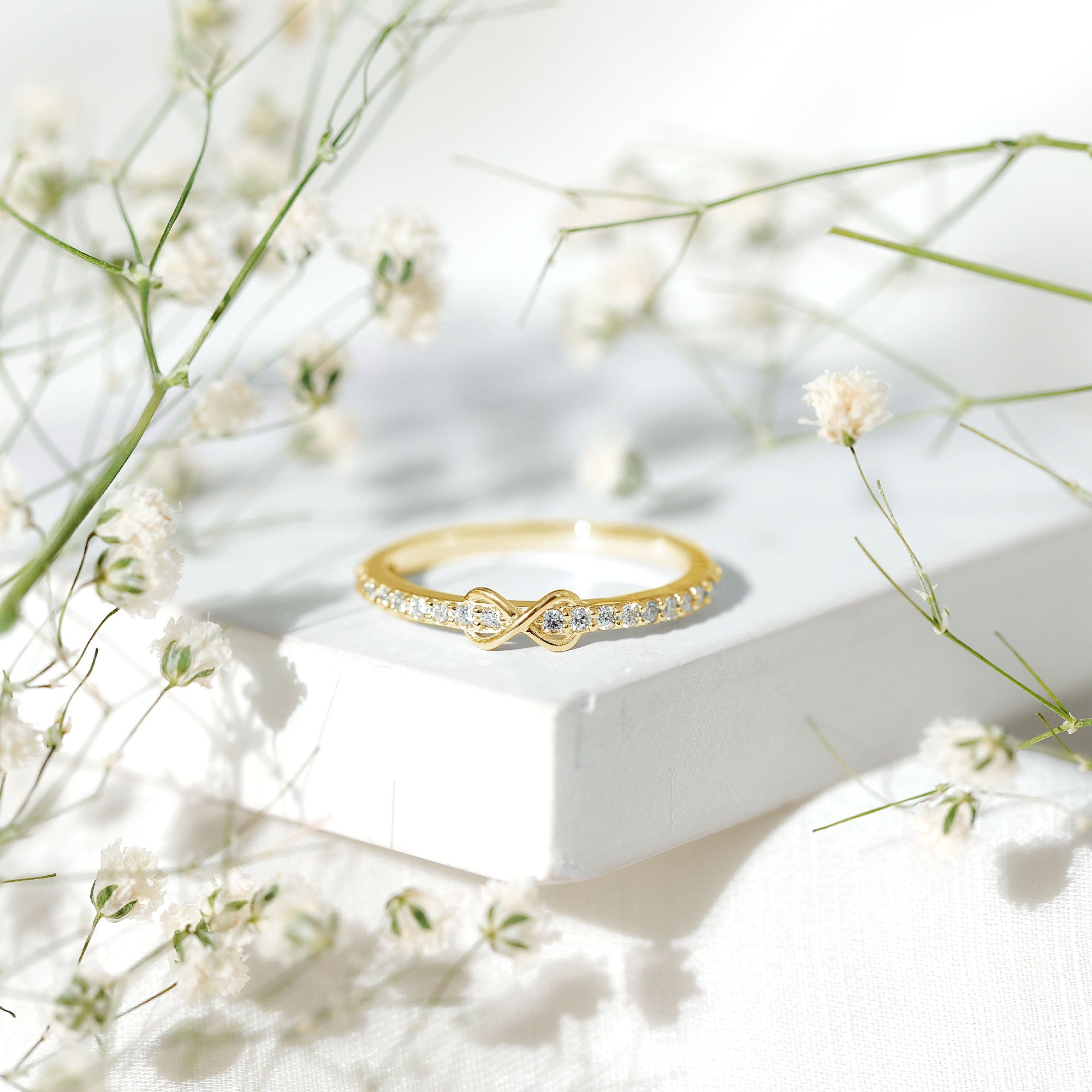 Our collection of infinity rings for women combine unique and trending designs with a diverse range of gemstones to create a mesmerizing collection of infinity rings. Further, blending different gemstone shapes with colorful hues of gold namely yellow gold, white gold and rose gold to bring further diversification in the overall infinity ring styles.