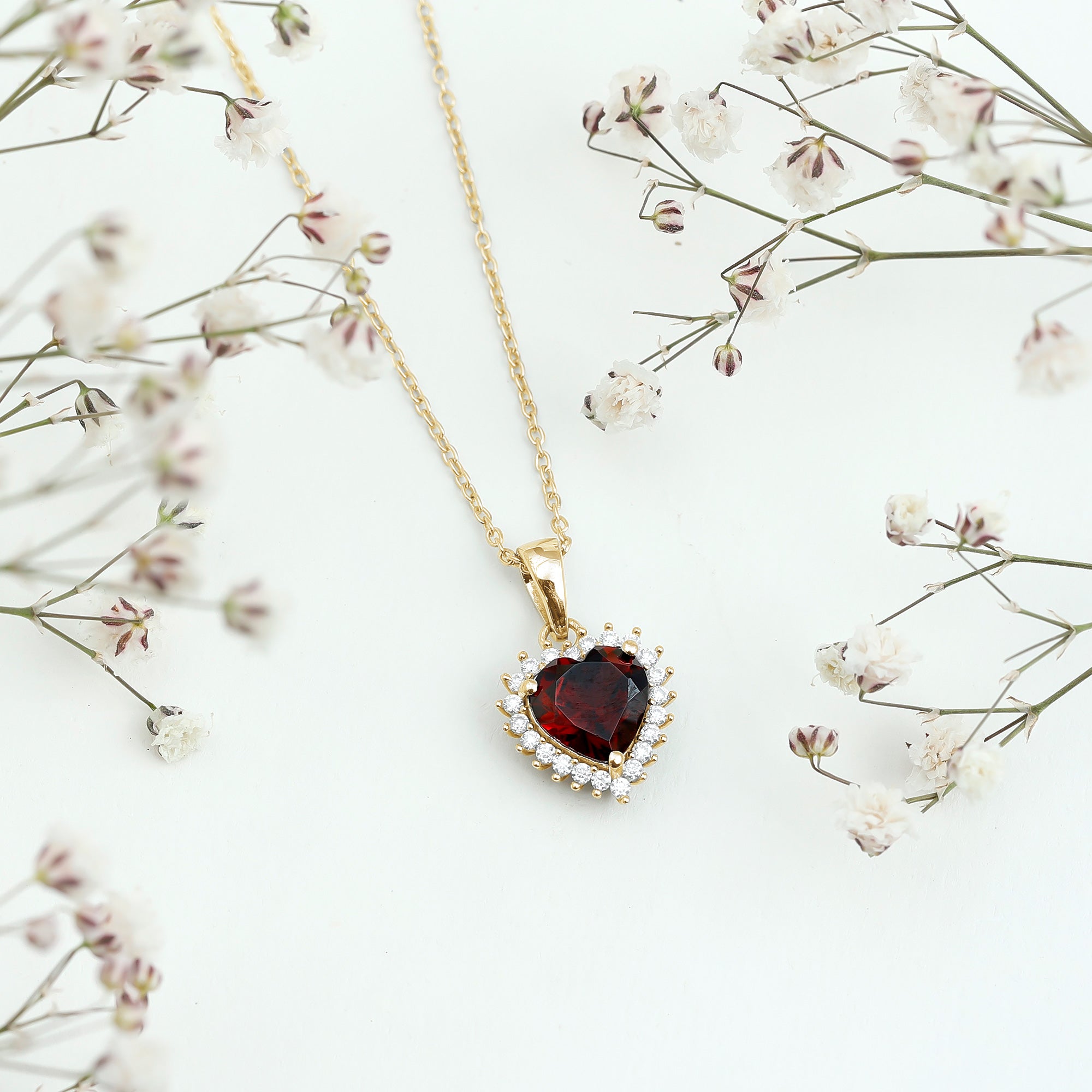Garnet Necklace:- A Drop & dangle & heart style garnet necklace would be a great option to start unconditional love and an everlasting bond. A Pared-back designs of garnet necklaces involves a shimmery halo, full eternity, statement, three stone, infinity, promise pendant, vintage art deco, and station chain pendants.