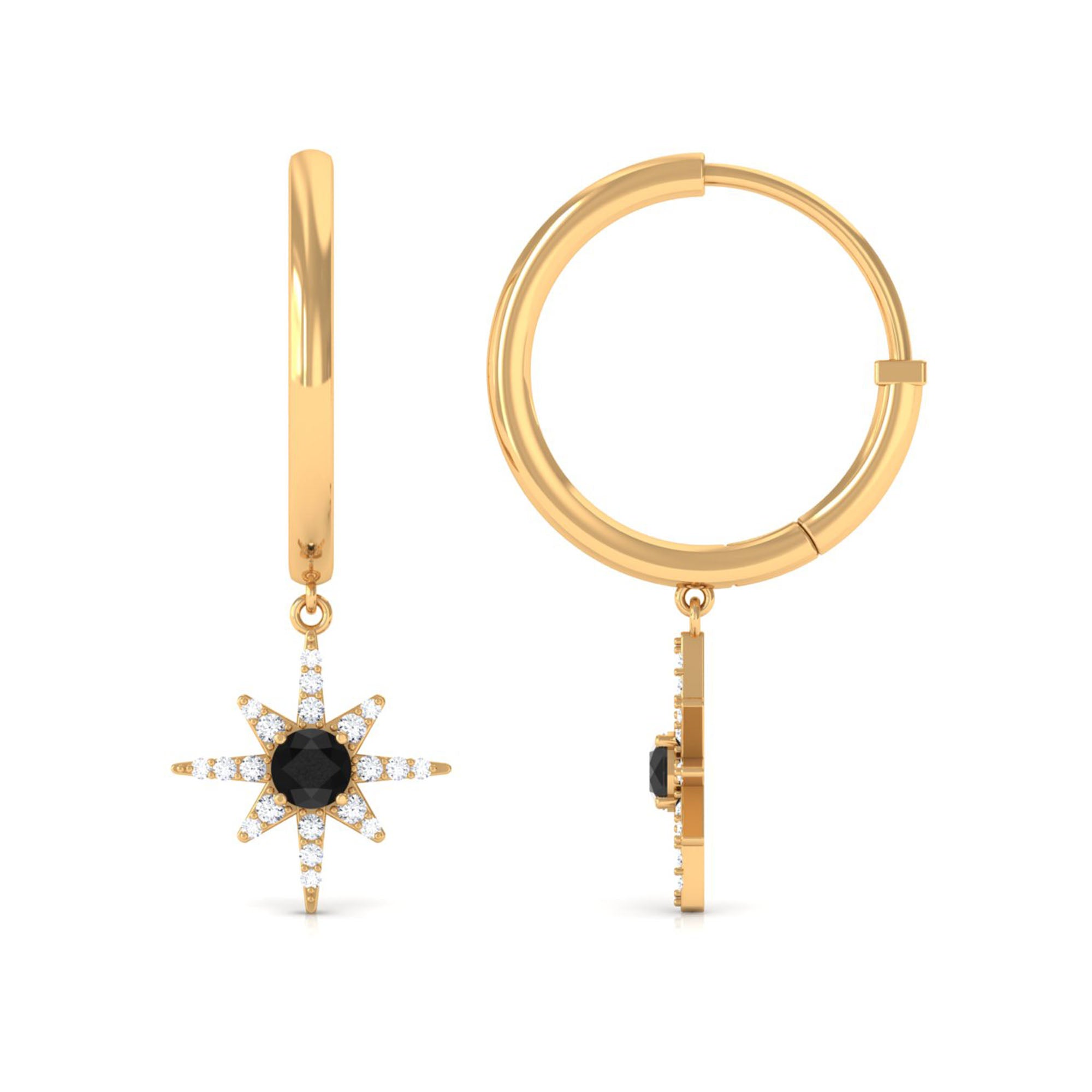 In this style, these earrings are majorly circular. You can simply get it in various shapes and sizes, while designs can range from minimalist to extravagant. Depending on the type you prefer, our gold hoops feature lab-grown black diamonds, crafted with precious metal.