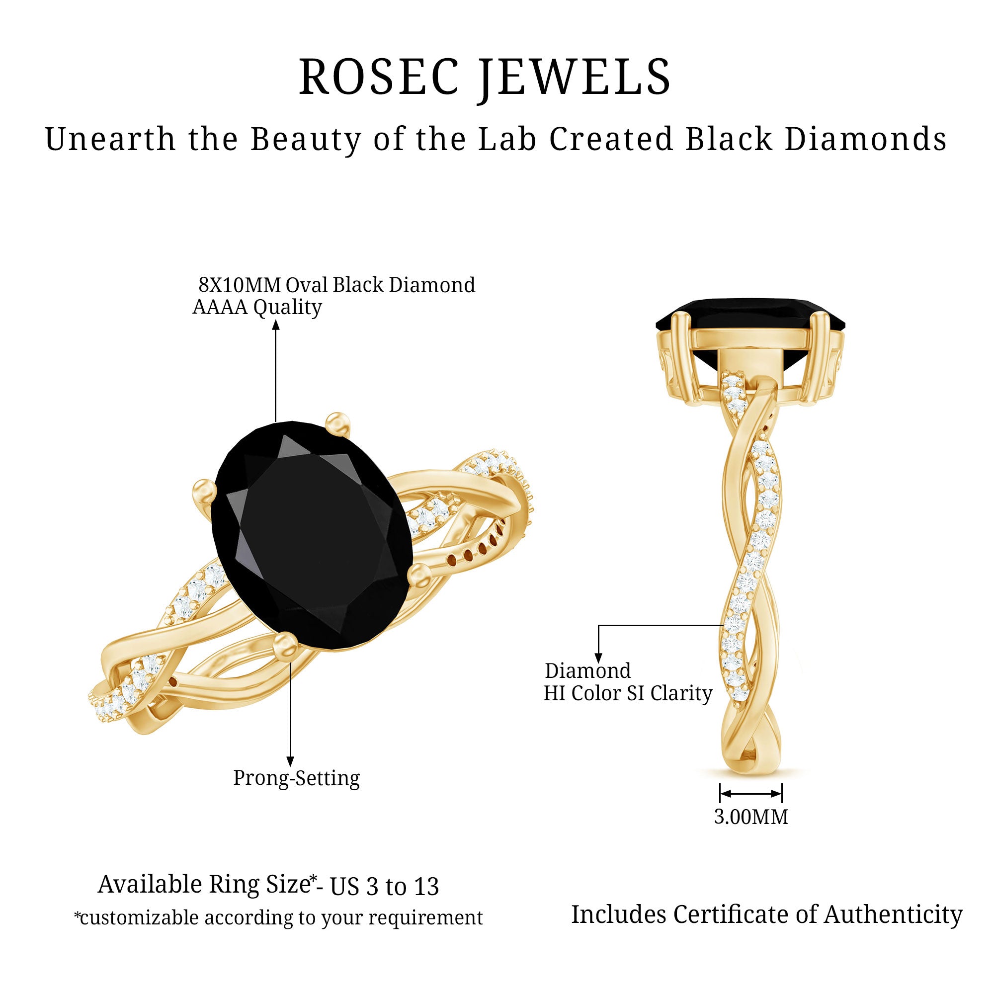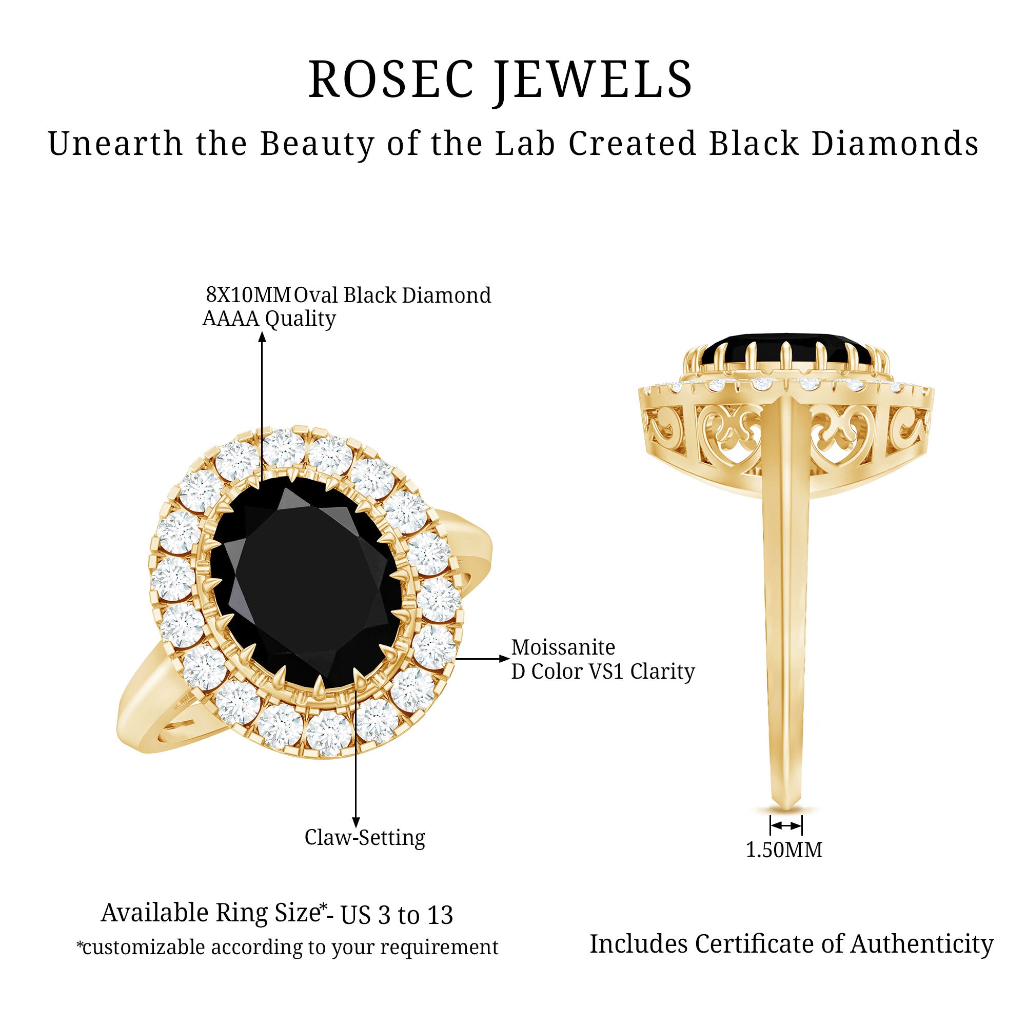 Black diamonds symbolize strength, resilience, and power. Your lab black diamond engagement ring reflects your unbreakable connection with your partner. This strong bond comes with the resilience to face life challenges together. Like the gemstone, your love is bold, rare, and enduring, ready to withstand every pressure.