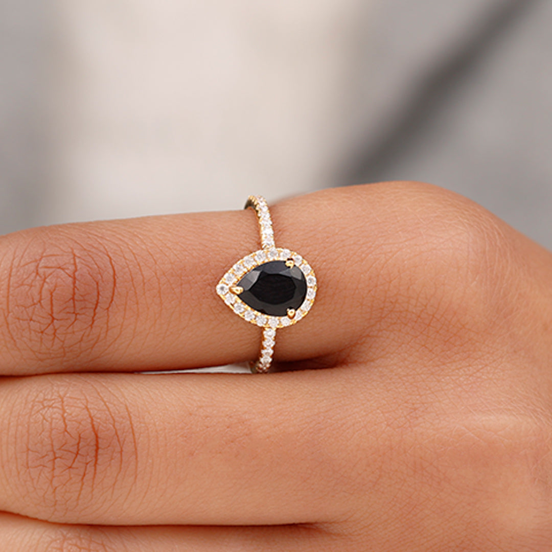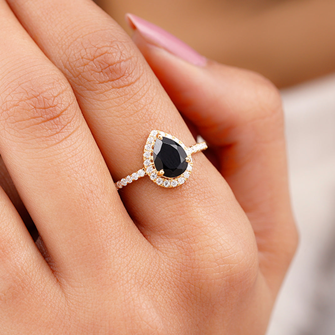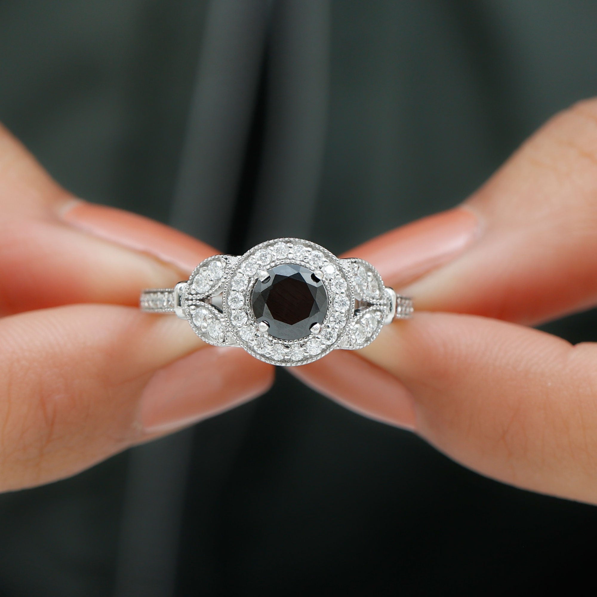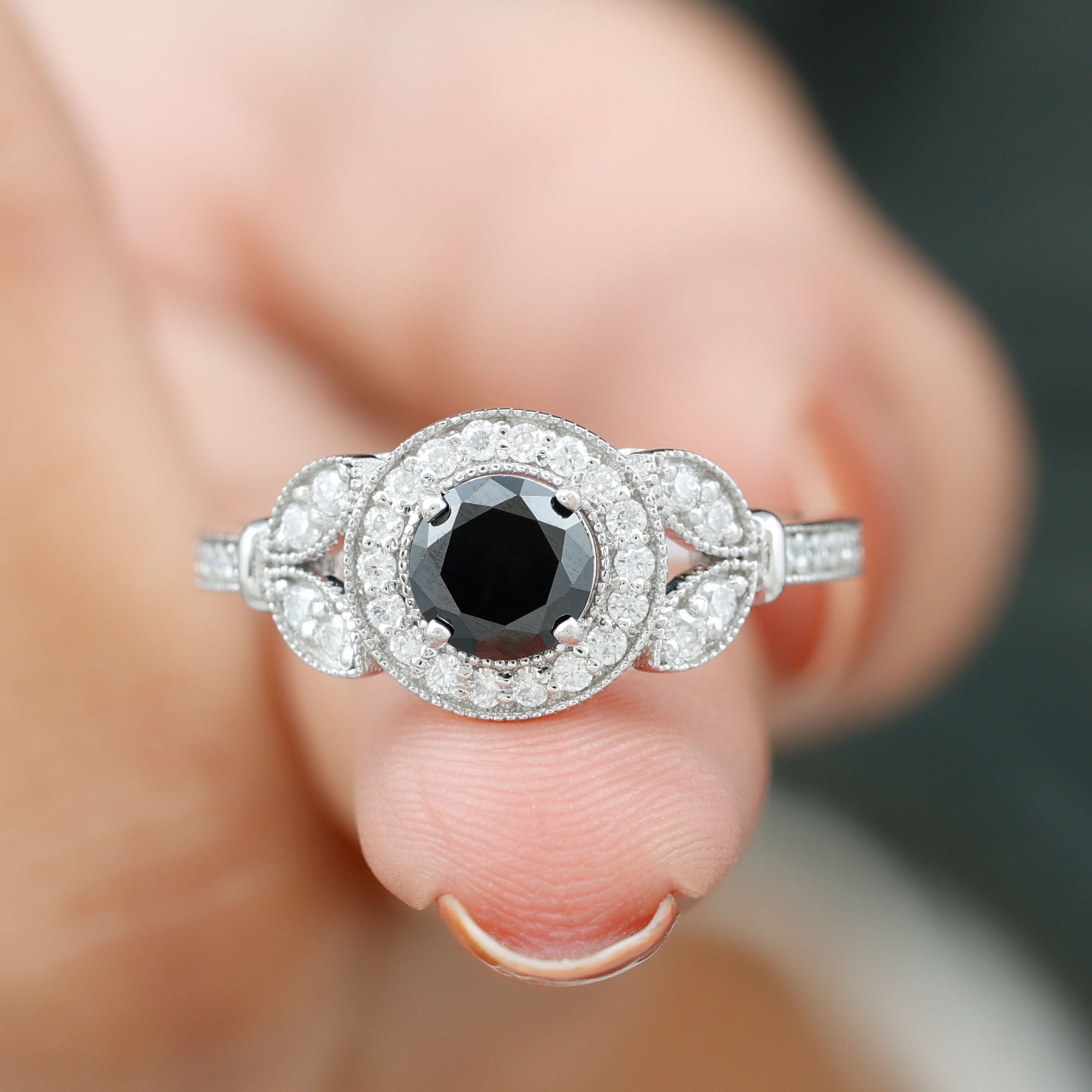 Lab Created Black Diamond Halo Engagement rings: Black diamond making the heart of the ring is surrounded by the accent of other shining gemstones, like moissanite or diamonds. The halo around the gemstone not only adds a sparkle, but offers it protection too.