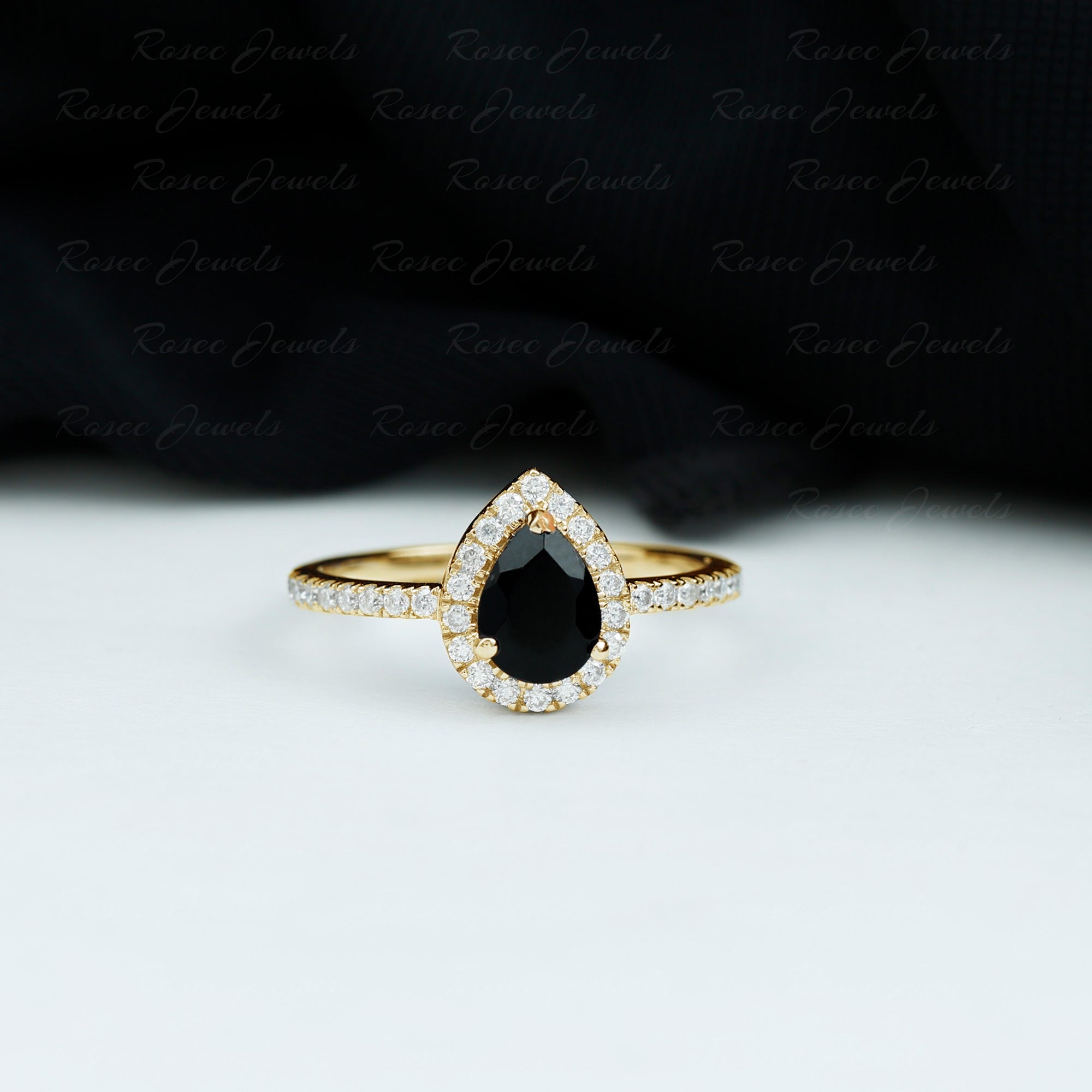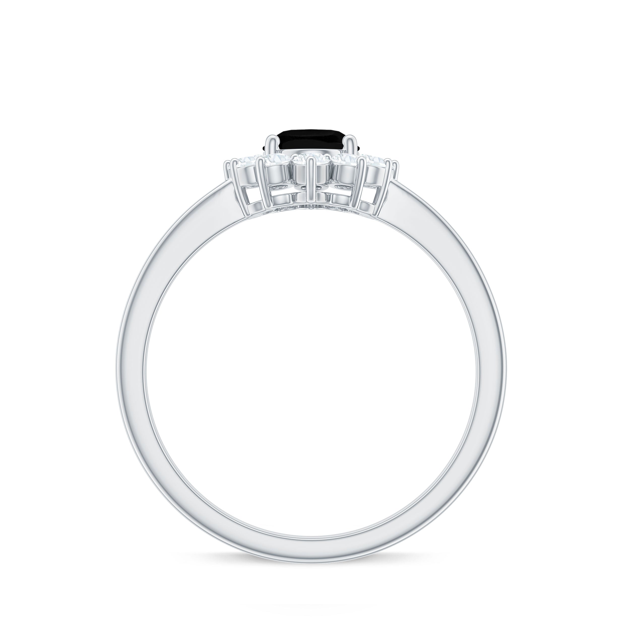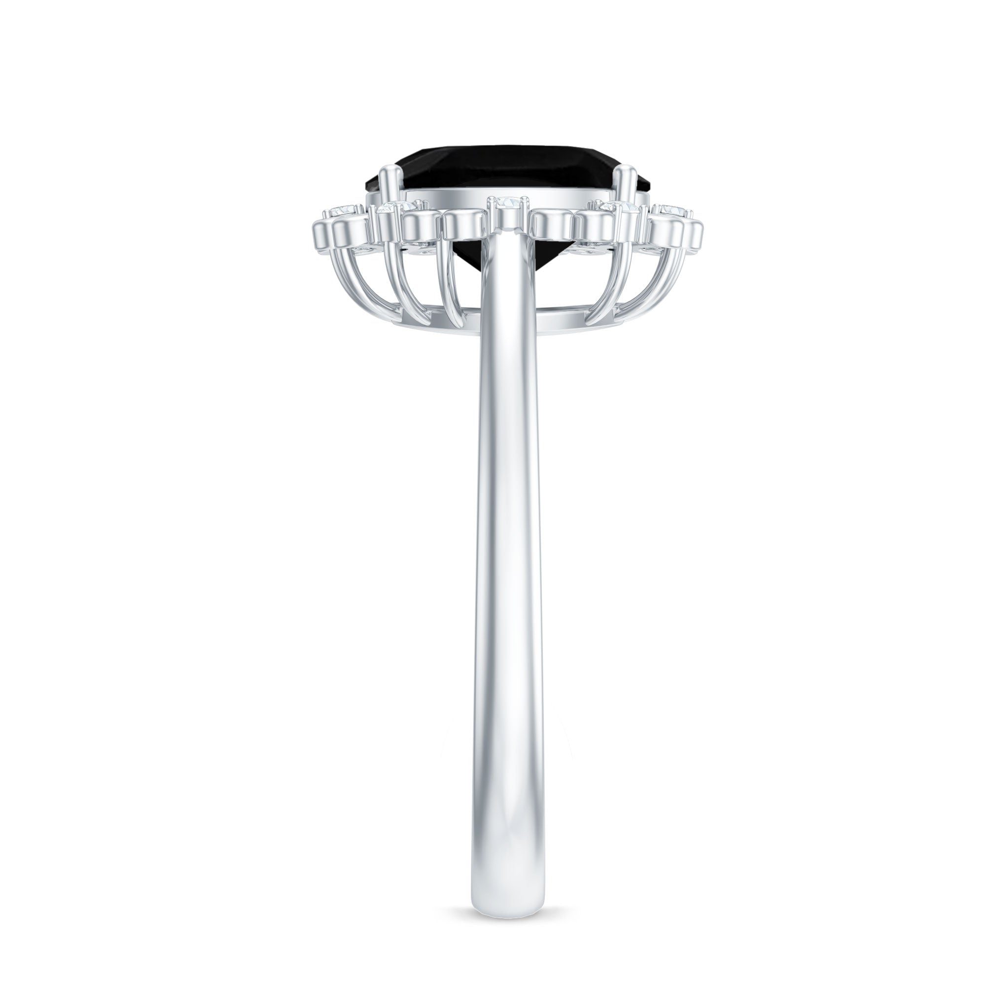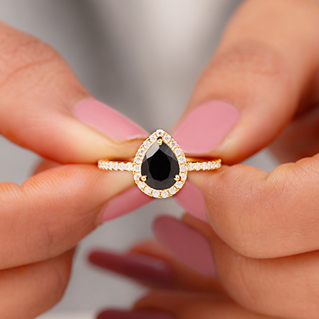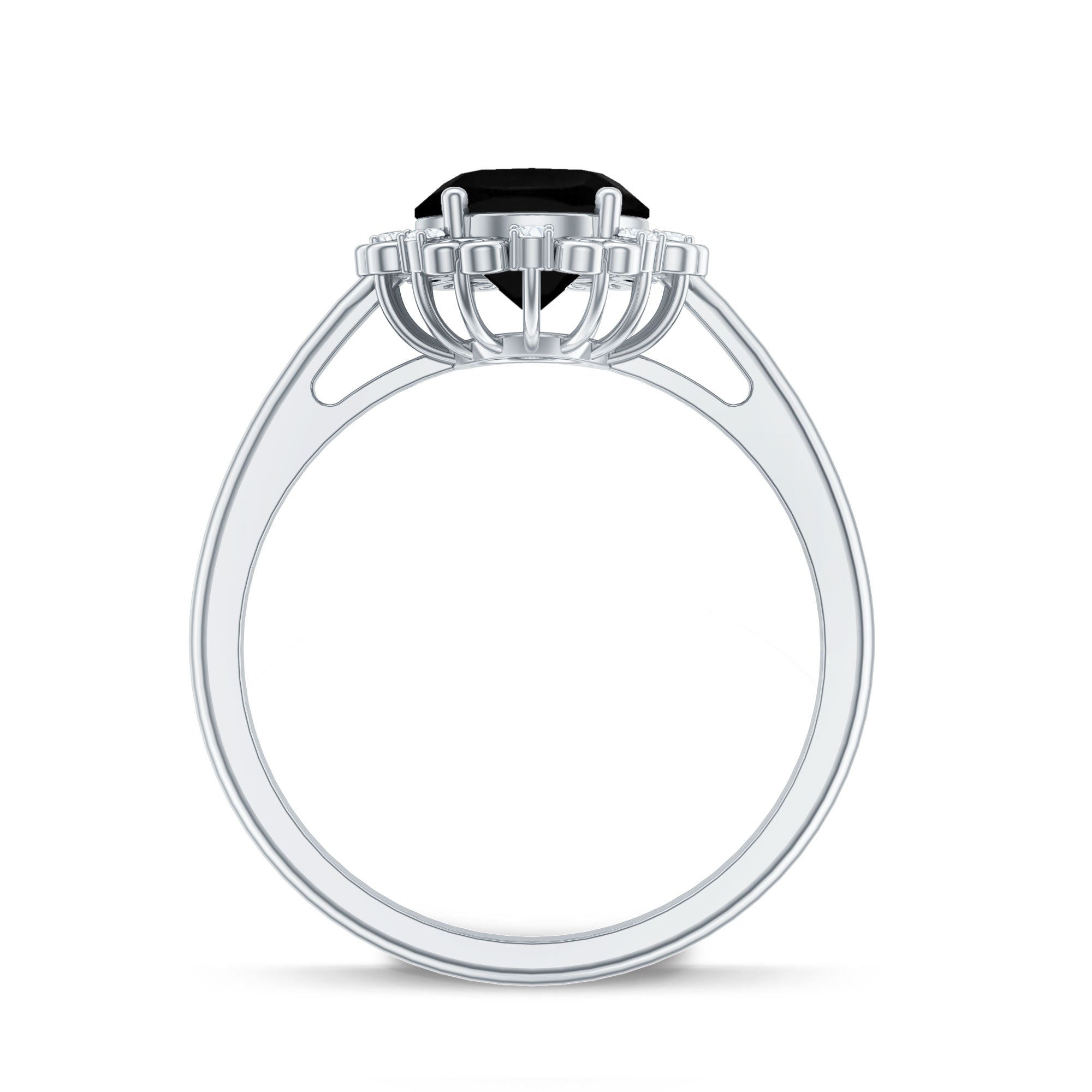 Lab Created Black Diamond Halo Engagement rings: Black diamond making the heart of the ring is surrounded by the accent of other shining gemstones, like moissanite or diamonds. The halo around the gemstone not only adds a sparkle, but offers it protection too.