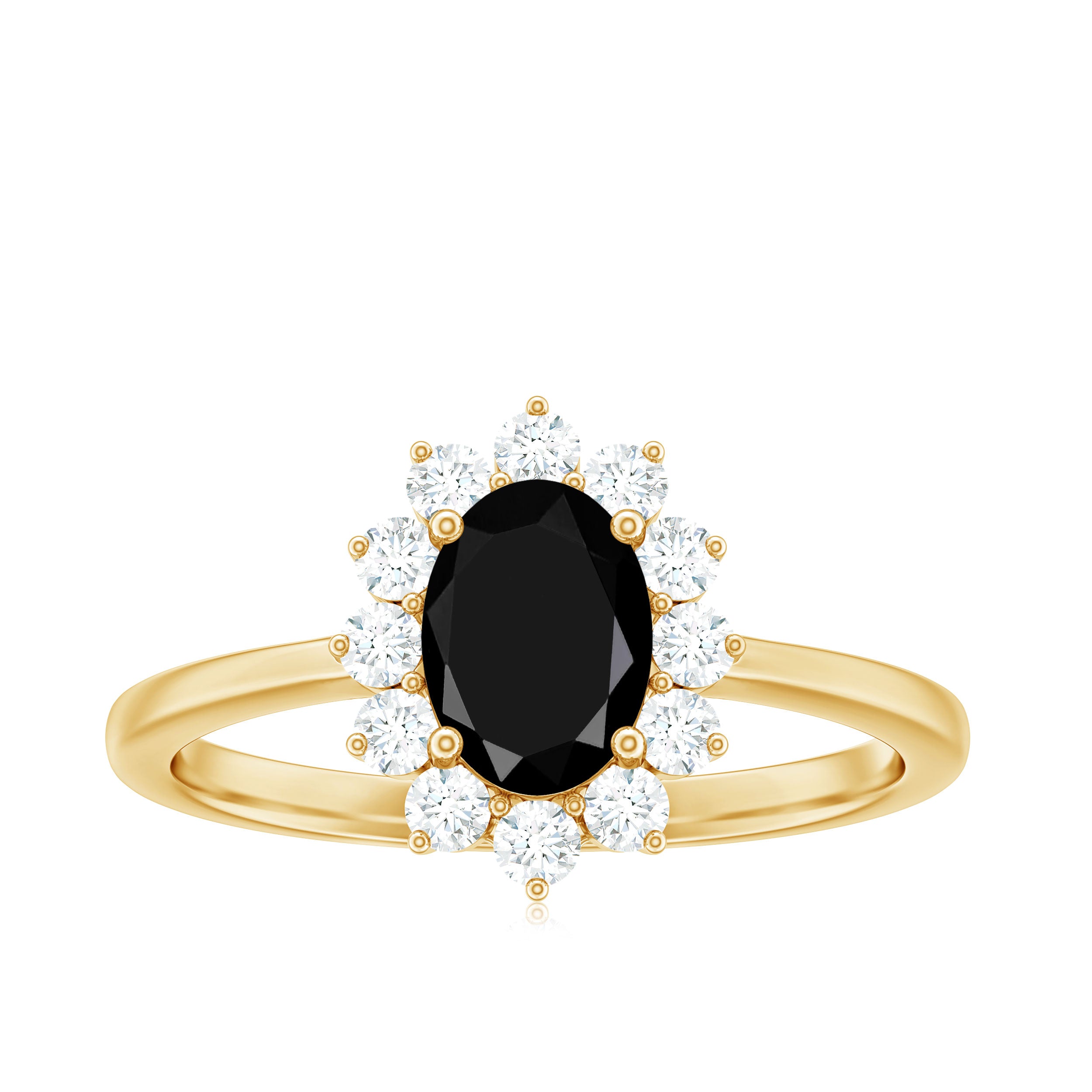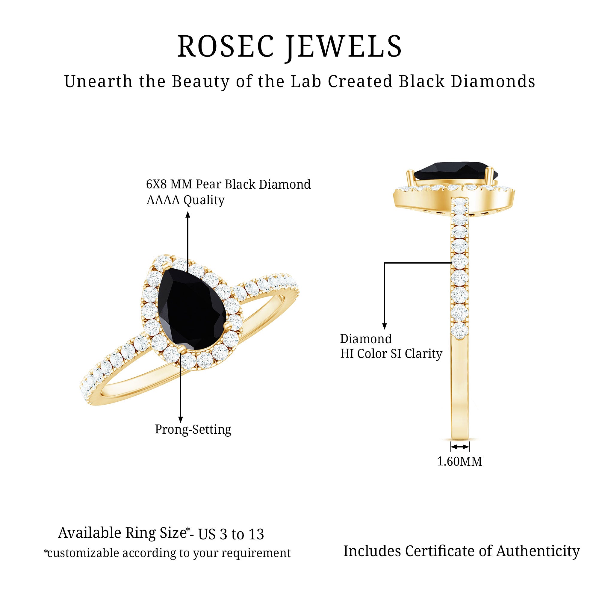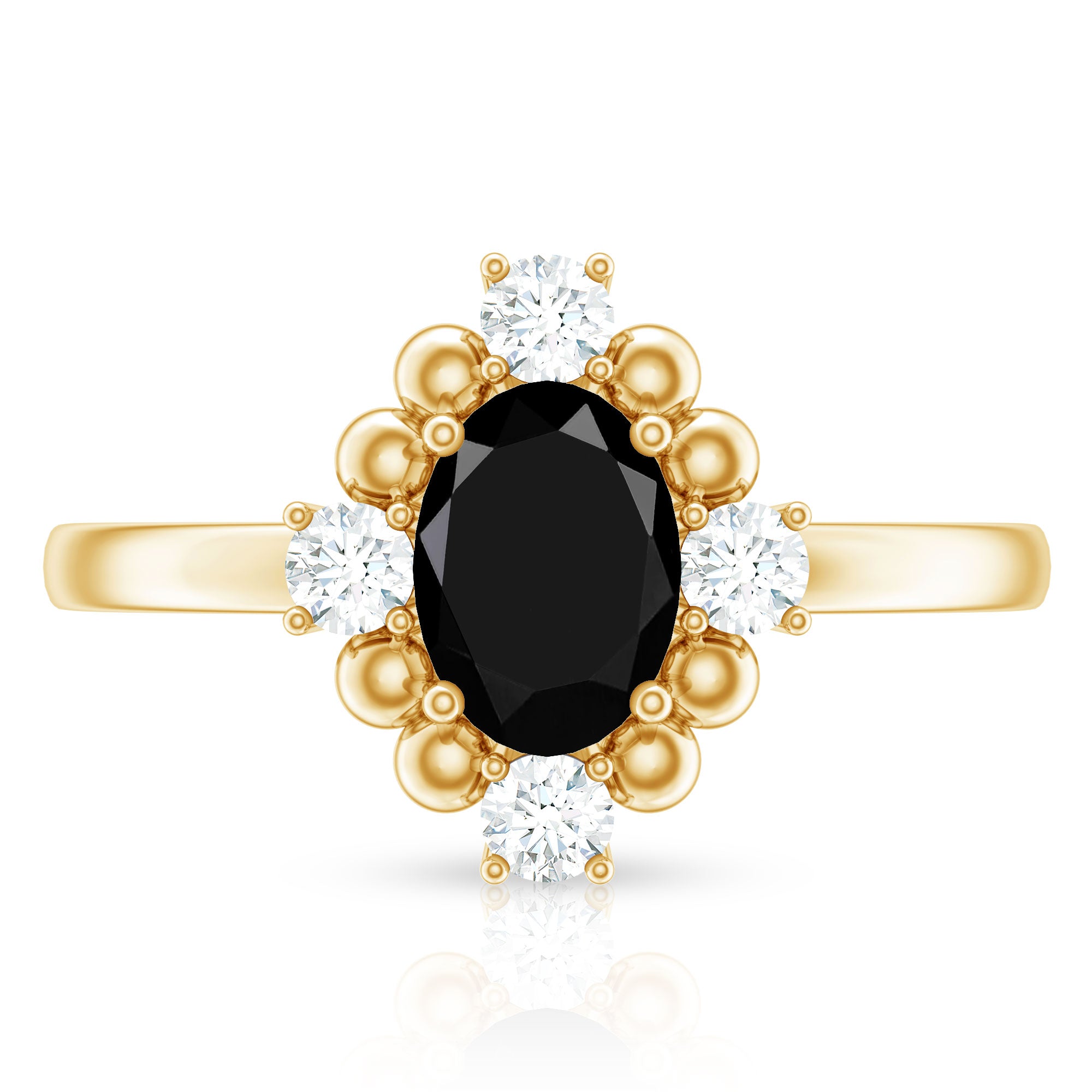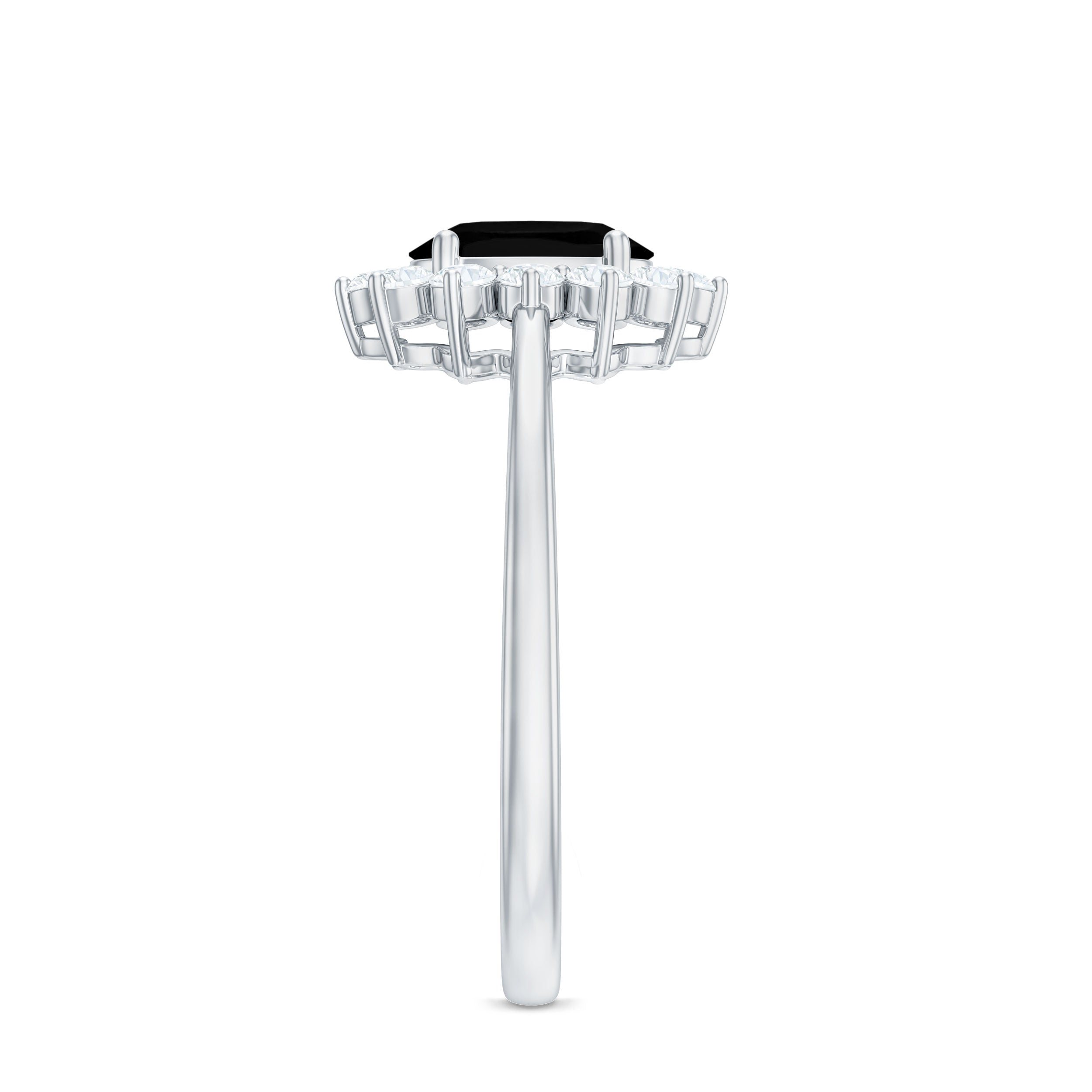 Lab Created Black Diamond Halo Engagement rings: Black diamond making the heart of the ring is surrounded by the accent of other shining gemstones, like moissanite or diamonds. The halo around the gemstone not only adds a sparkle, but offers it protection too.
