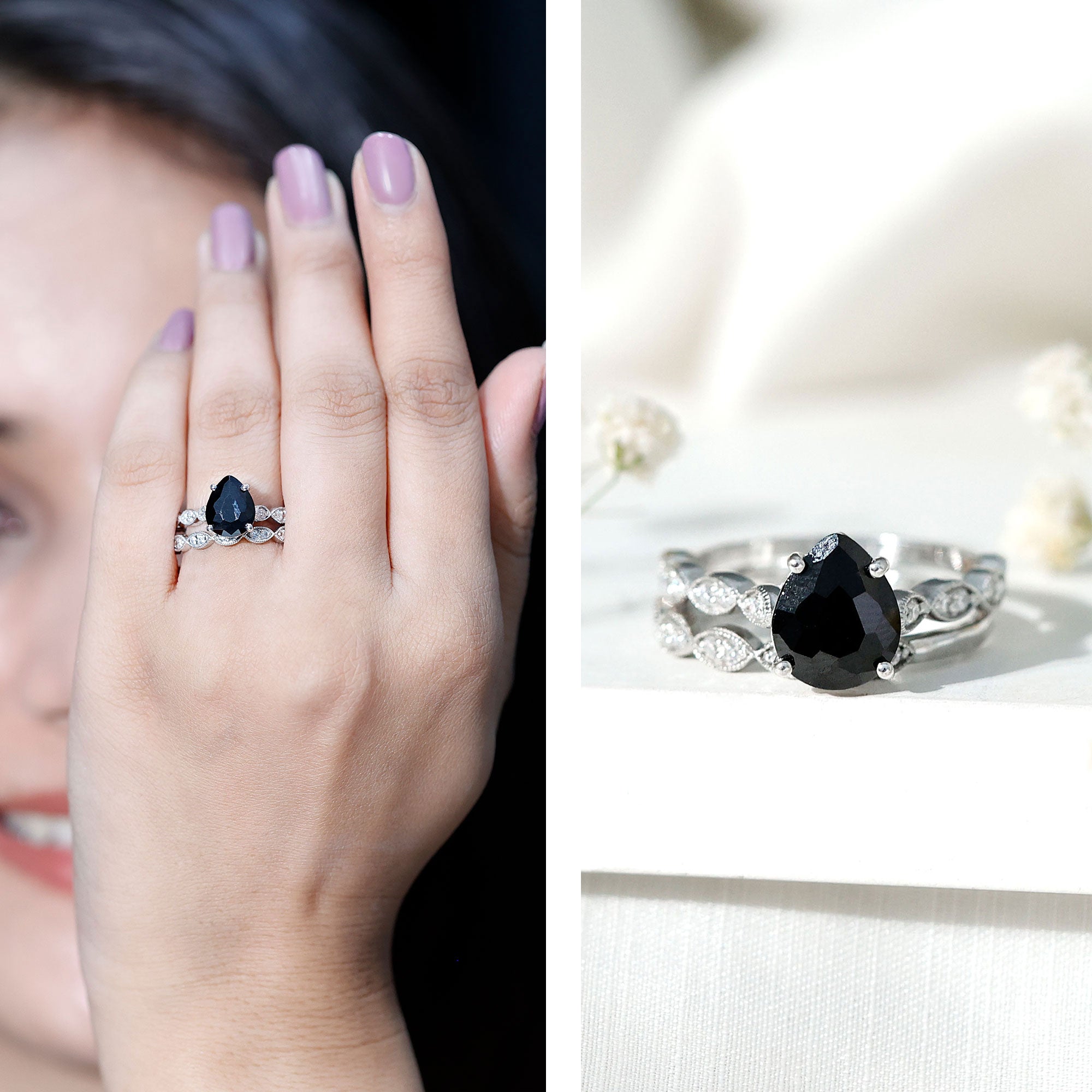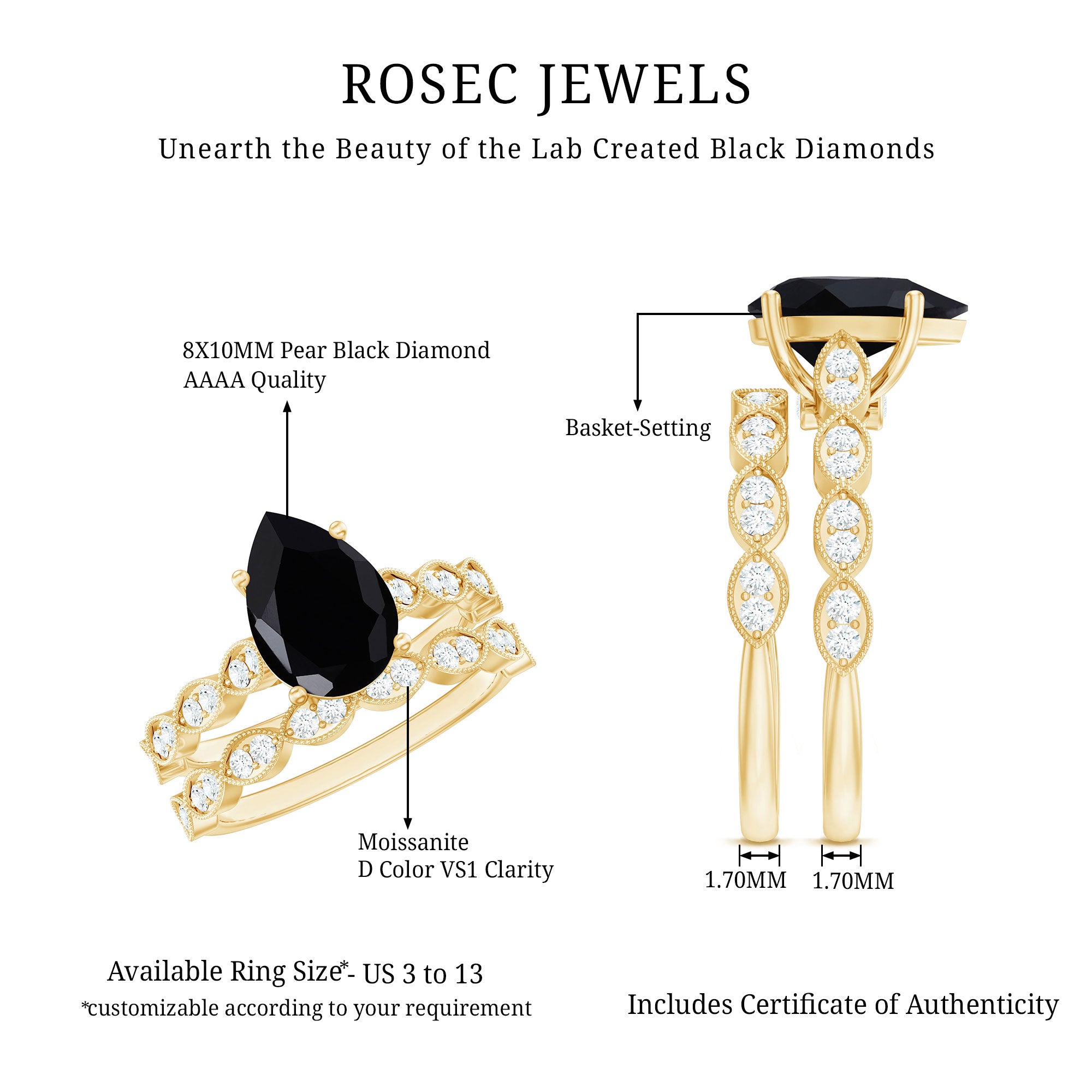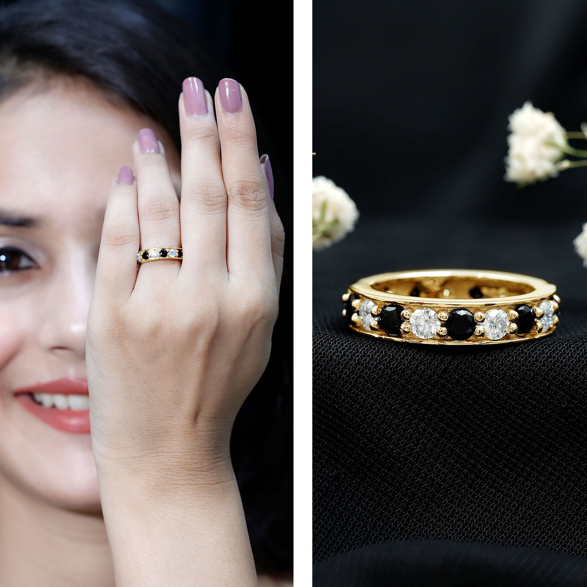 • Type Of Metals: We have all three options of premium metals yellow gold, white gold, and rose gold. We also Have affordable and durable 92.5 silver metal options with lab black color gemstones.