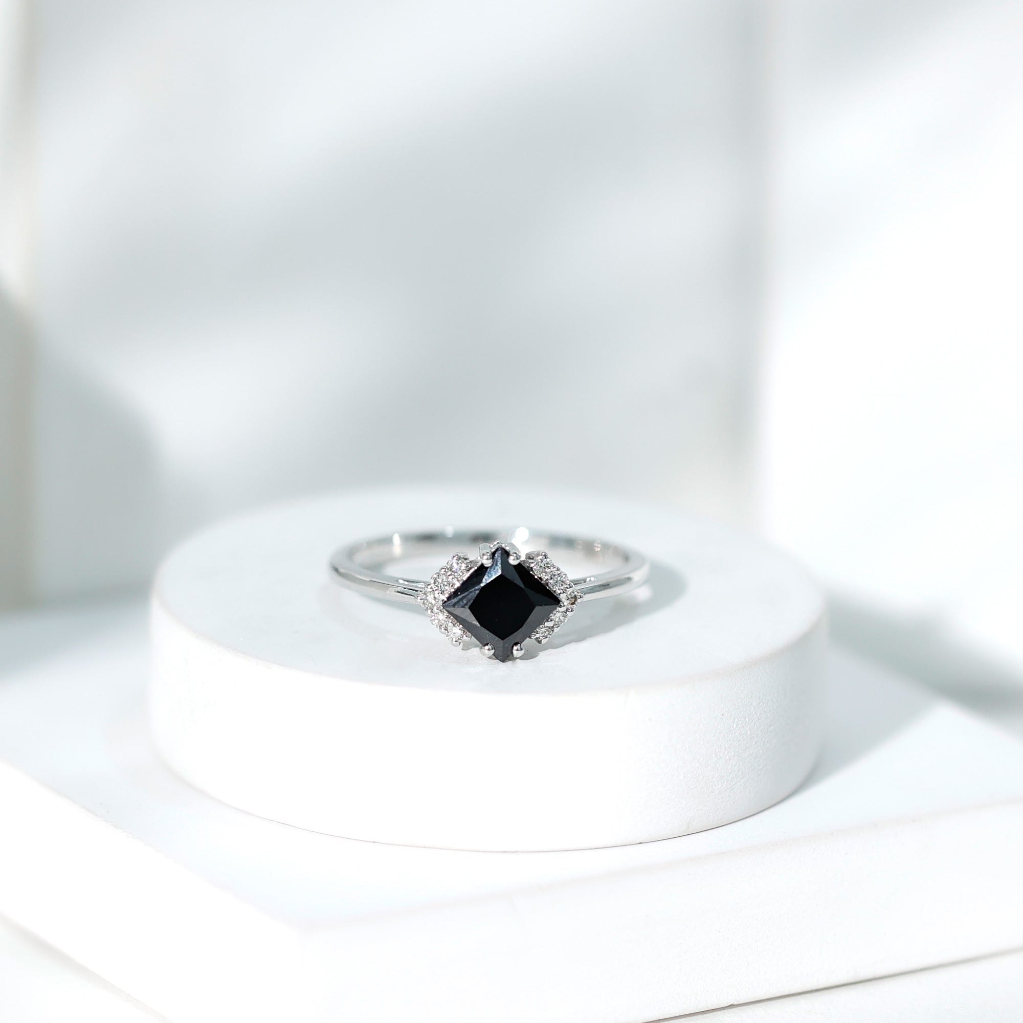 Promise rings symbolize devotion and commitment, as they are also called pre-engagement rings. Featuring a synthetic black diamond gemstone either in a simple style or enhanced by diamonds or other gems to make it more attractive. The black diamond promise rings are an incredible way to express your feelings for your special one. An ideal reminder of the commitment you both share.