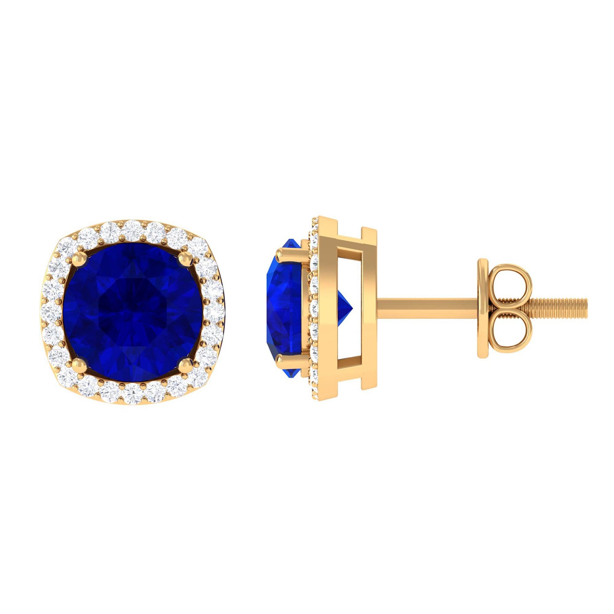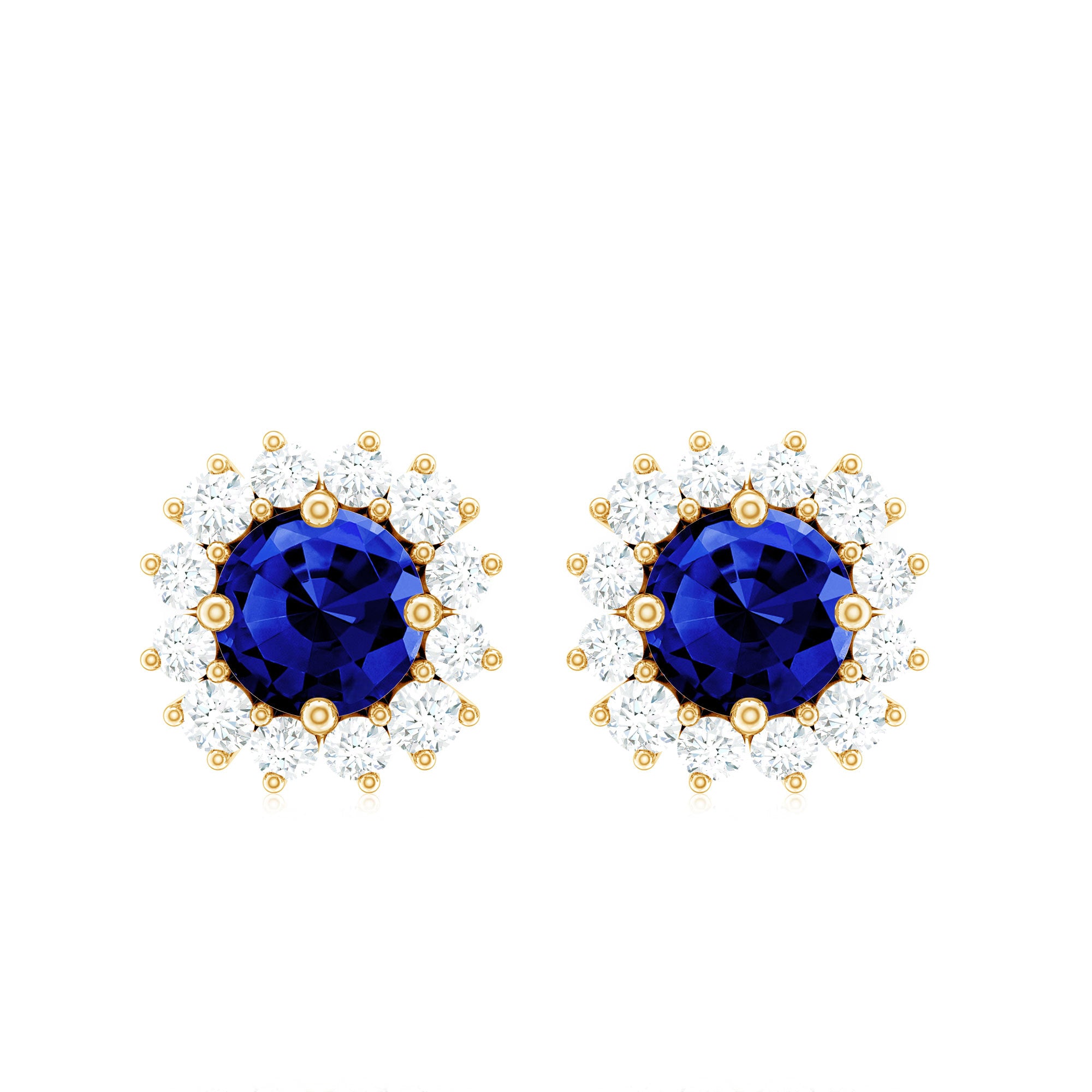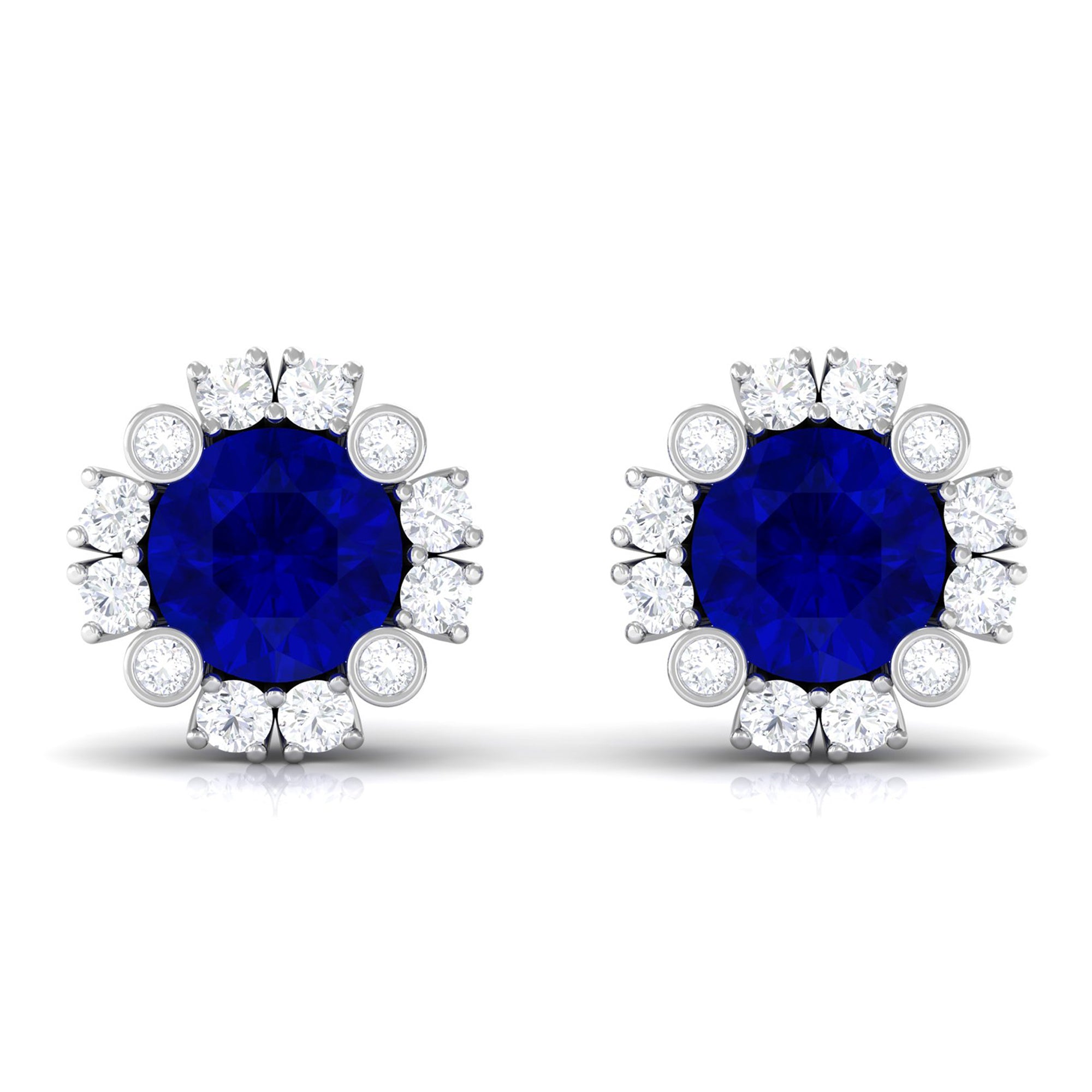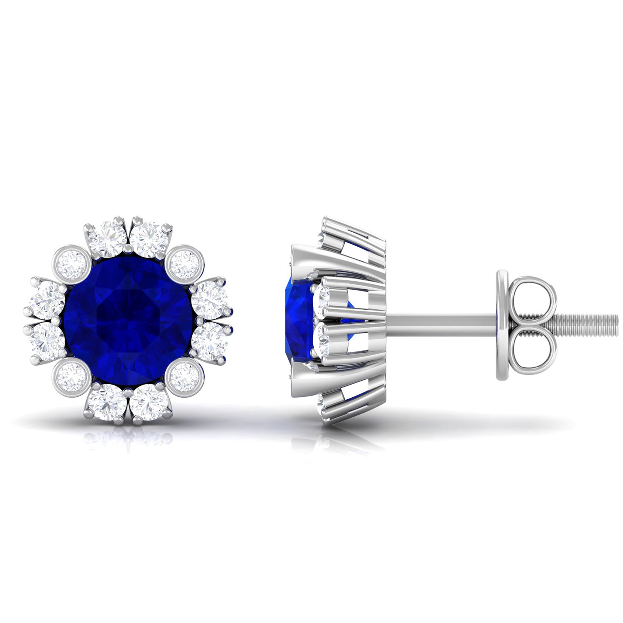 Lab Created Blue Sapphire Stud Earring: - A mesmerizing sparkle and enduring appeal, these labs grown blue sapphire stud earrings reflect its gleam and vibrant color when set with other luminous gemstones like diamond. They are available in a range of designs that elaborate their shine with a halo setting. Make a stunning impression and elevate your style with our elegant and charming lab created blue sapphire stud earrings.