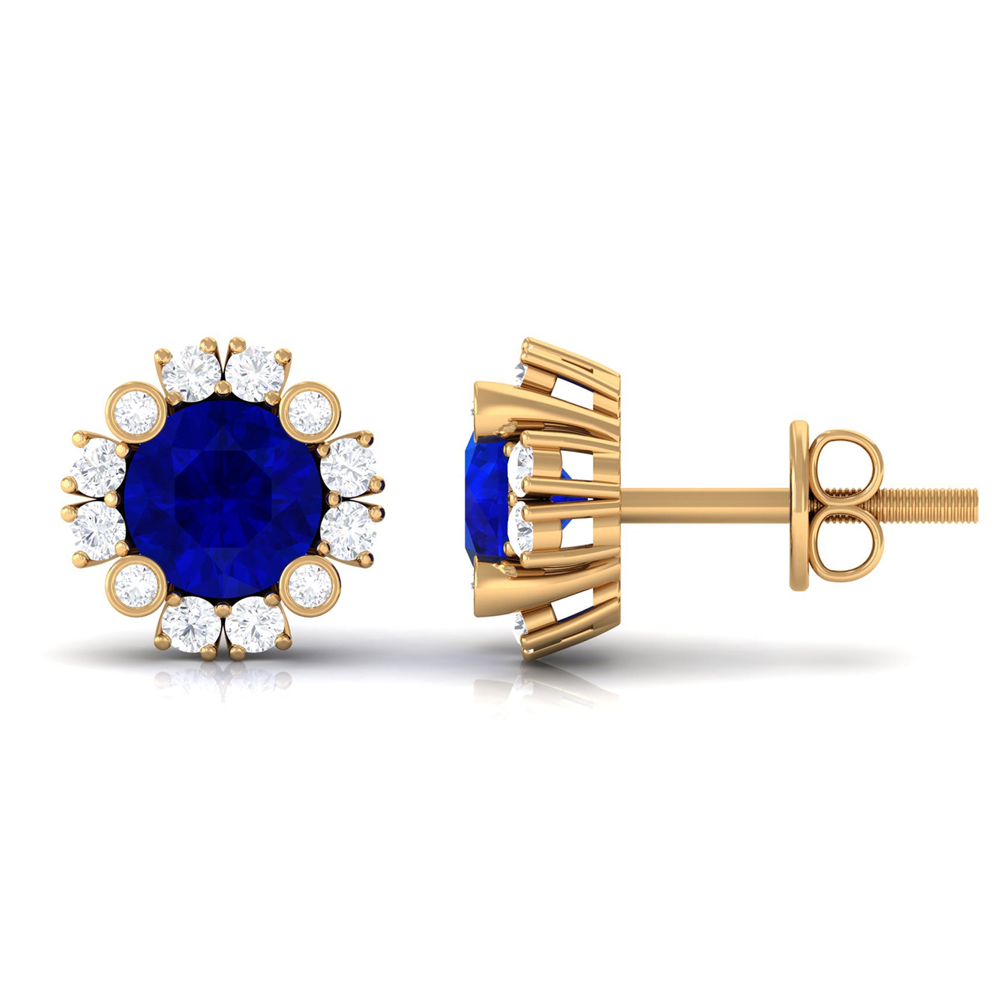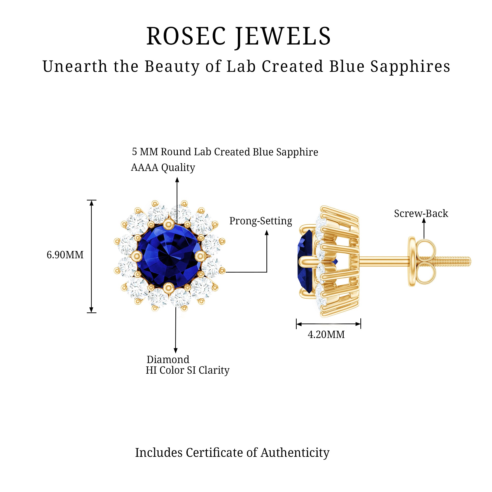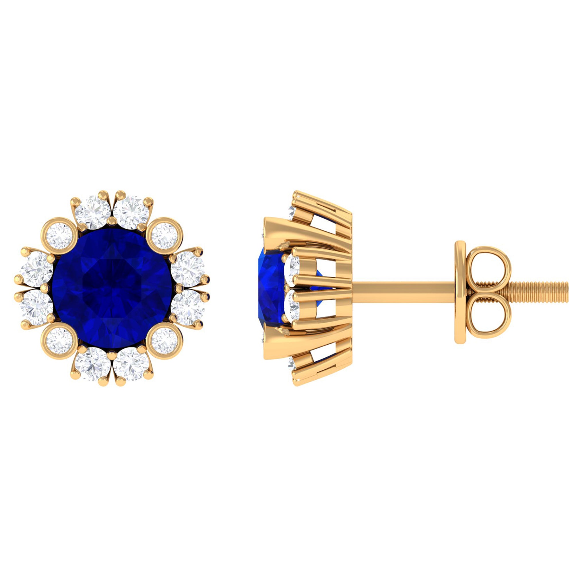 Lab Created Blue Sapphire Stud Earring: - A mesmerizing sparkle and enduring appeal, these labs grown blue sapphire stud earrings reflect its gleam and vibrant color when set with other luminous gemstones like diamond. They are available in a range of designs that elaborate their shine with a halo setting. Make a stunning impression and elevate your style with our elegant and charming lab created blue sapphire stud earrings.
