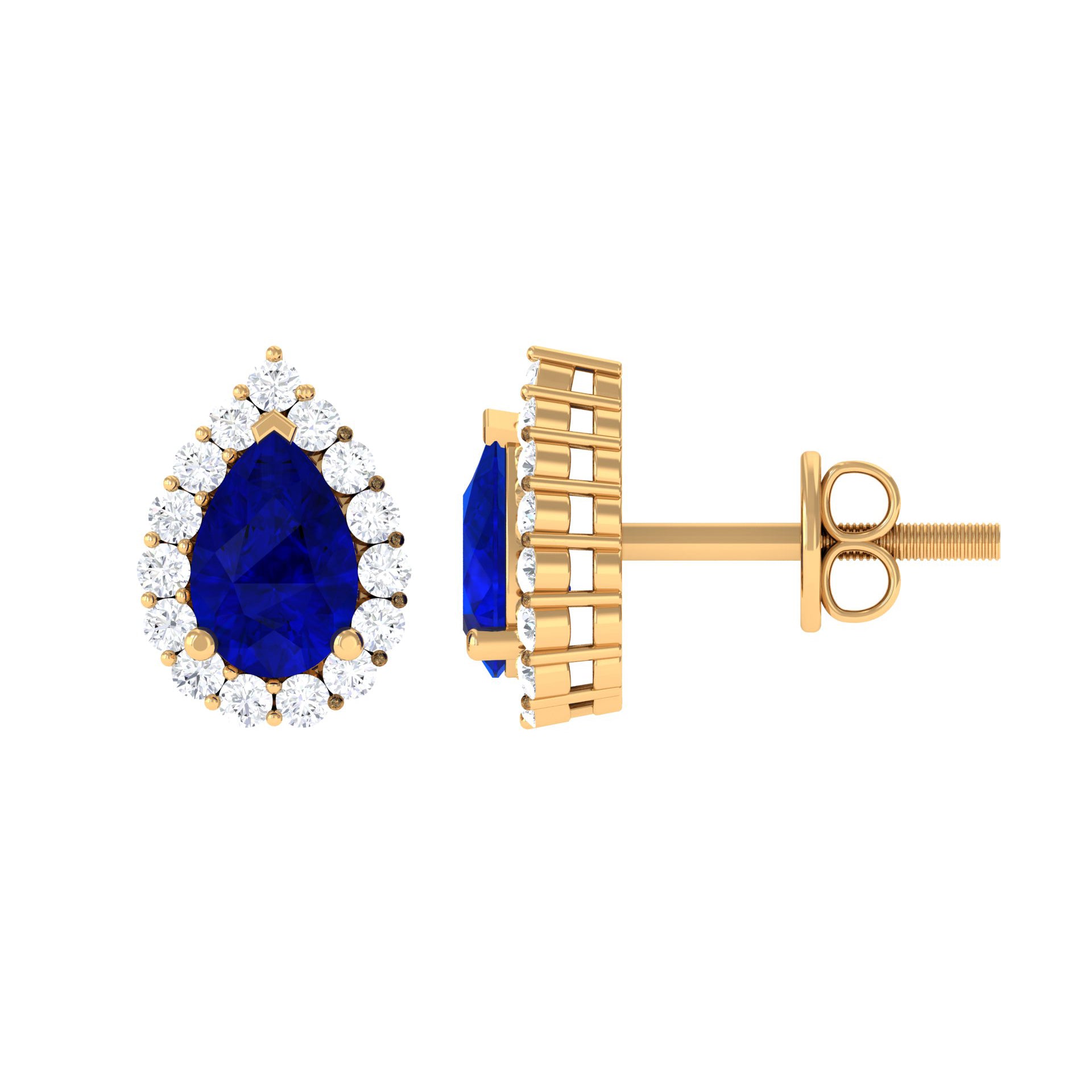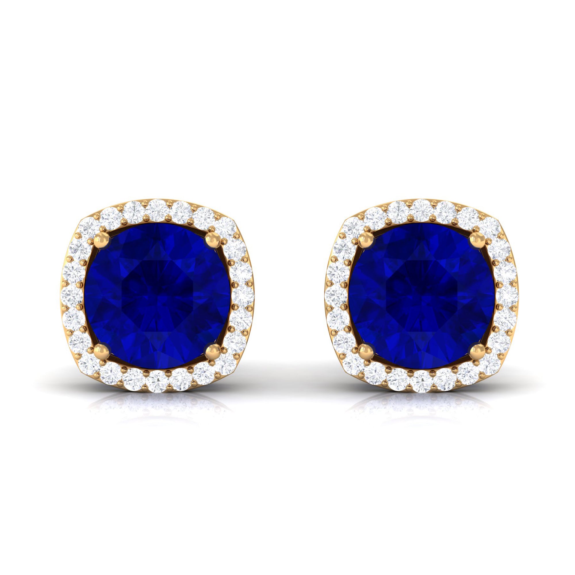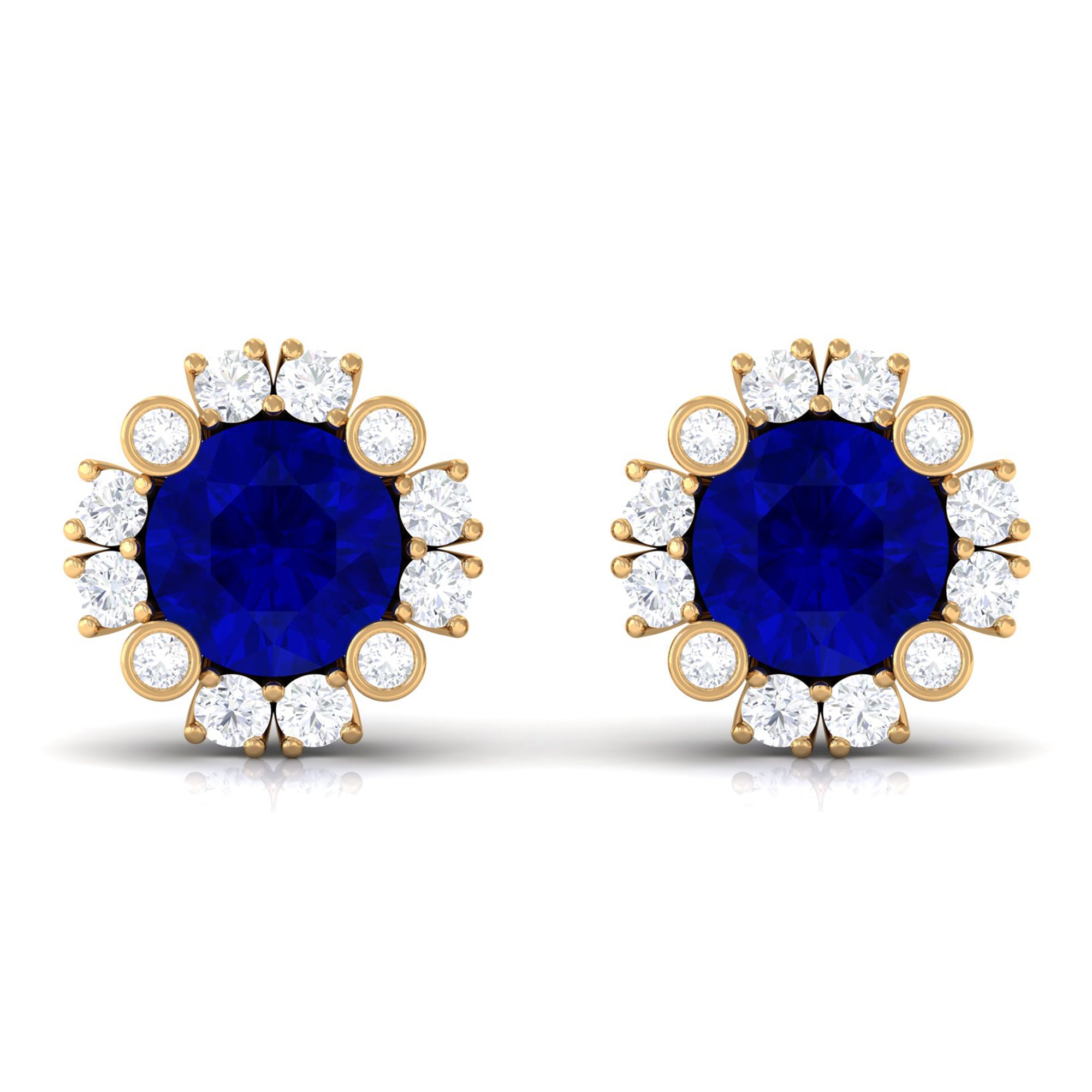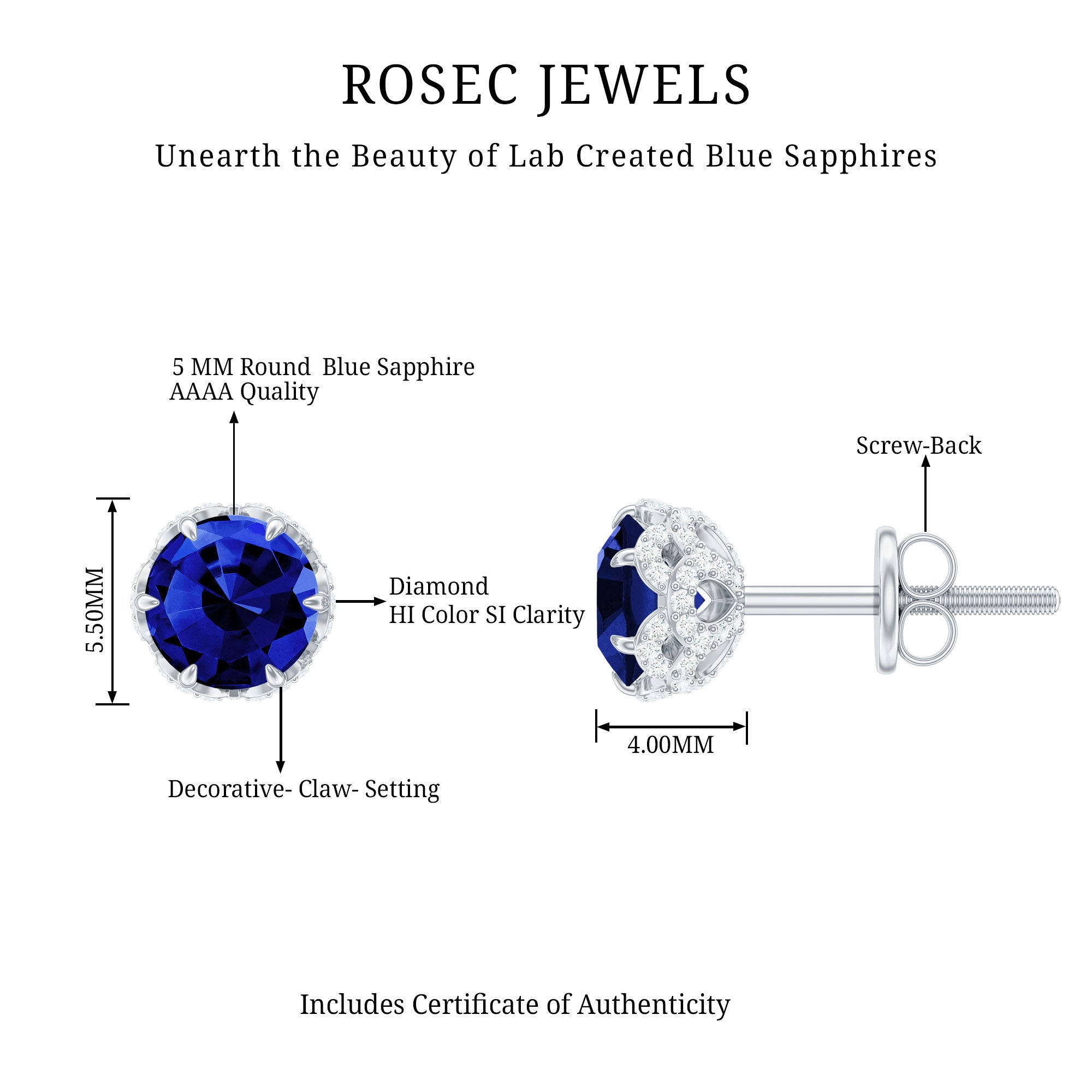 Lab Created Blue Sapphire Stud Earring: - A mesmerizing sparkle and enduring appeal, these labs grown blue sapphire stud earrings reflect its gleam and vibrant color when set with other luminous gemstones like diamond. They are available in a range of designs that elaborate their shine with a halo setting. Make a stunning impression and elevate your style with our elegant and charming lab created blue sapphire stud earrings.