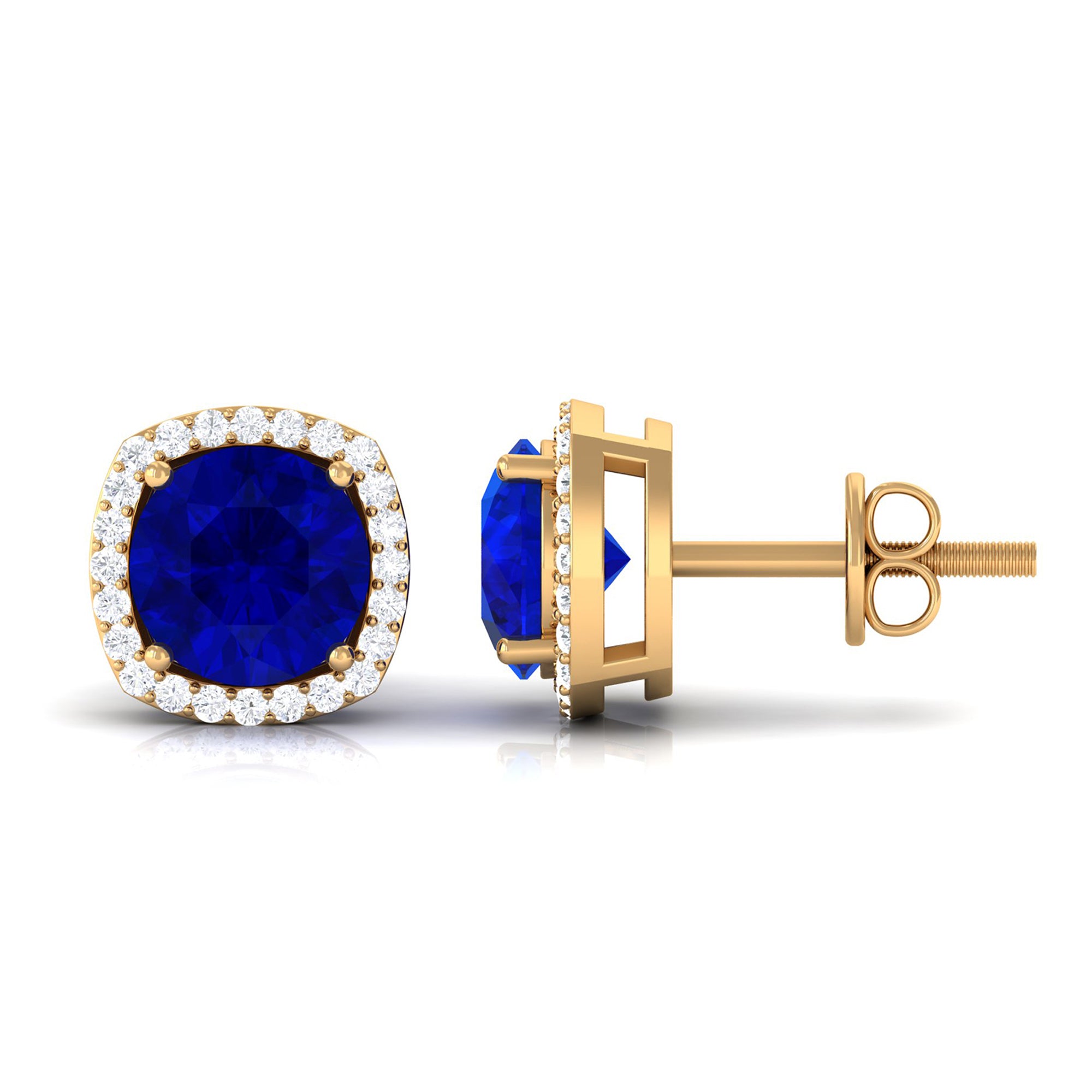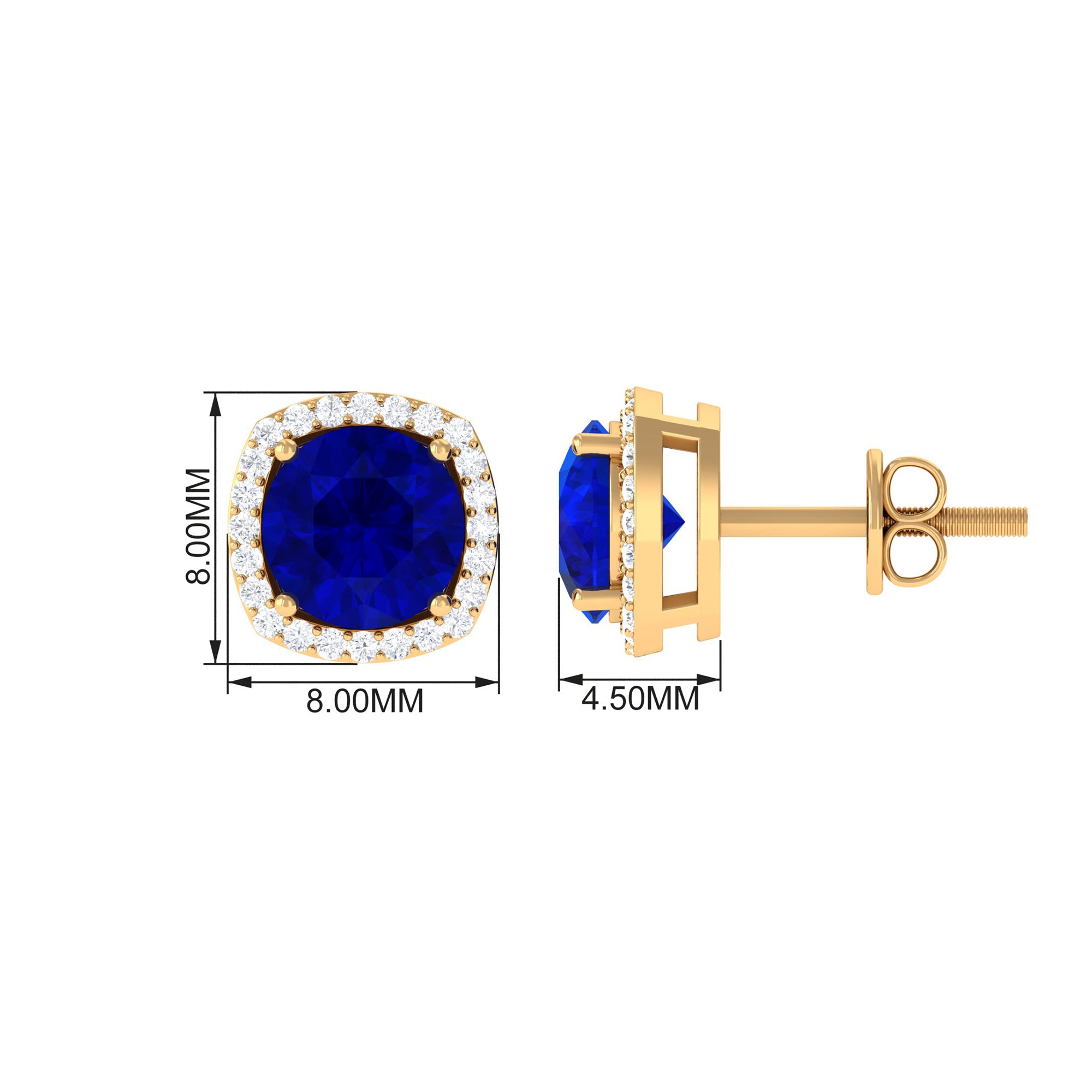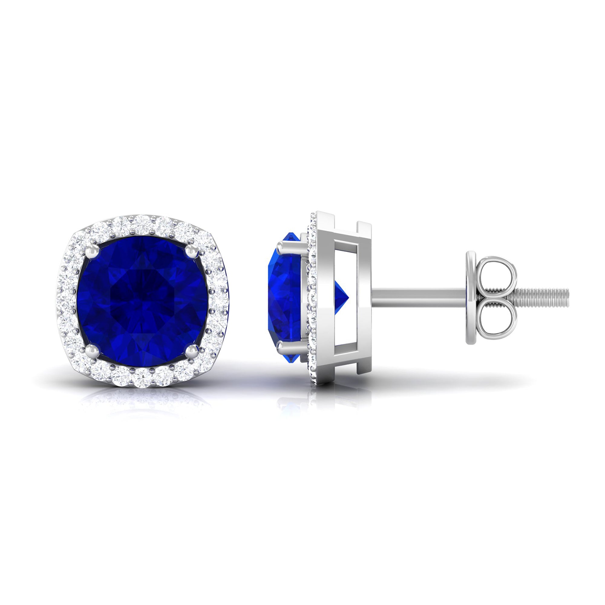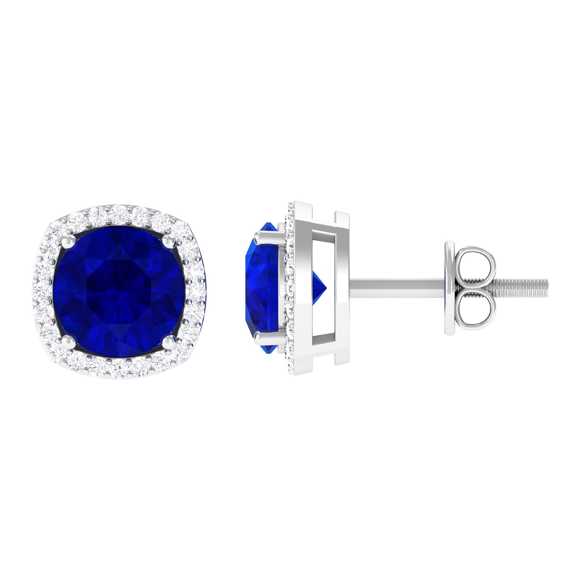 Lab Created Blue Sapphire Halo Earrings: - This halo not only enhances the blue sapphire's intense color but is also a great addition to the brilliance and size of gems. Our lab grown blue sapphire halo earrings are the perfect blend of modernism and sophistication, a perfect piece of earrings for those who seek for fusion of elegance and charm.