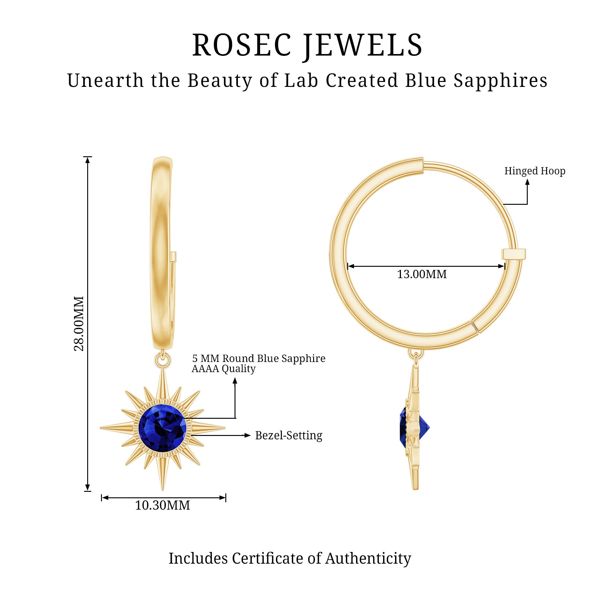 Lab Created Blue Sapphire Hoop Earrings: - These earrings are adorned with round shape lab grown blue sapphire in hoop style, an excellent choice for those who always look for the mesmerizing sparkle in jewelry. We offer a modern twist on the elegant hoop earrings, combining the allure of a blue sapphire that signifies wisdom and calmness.
