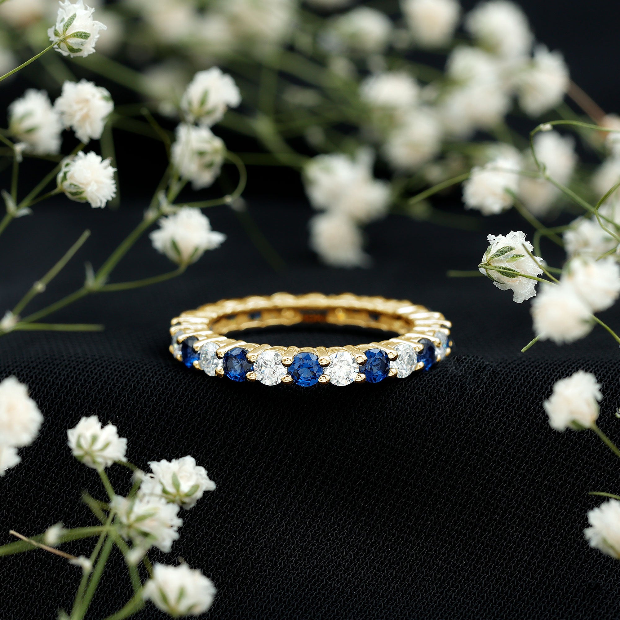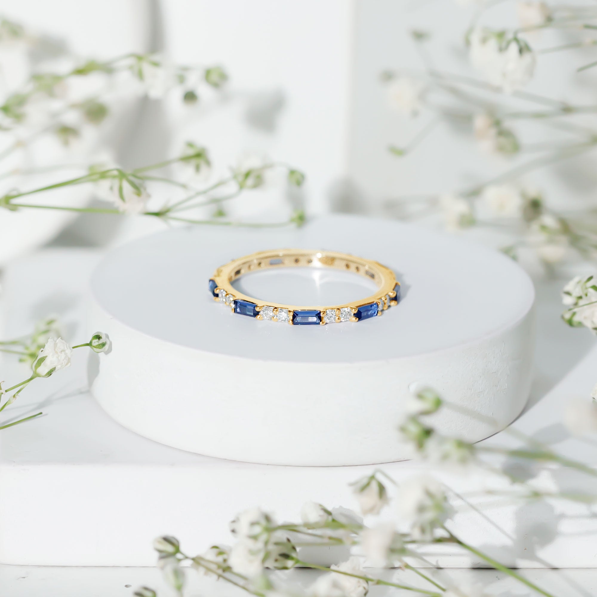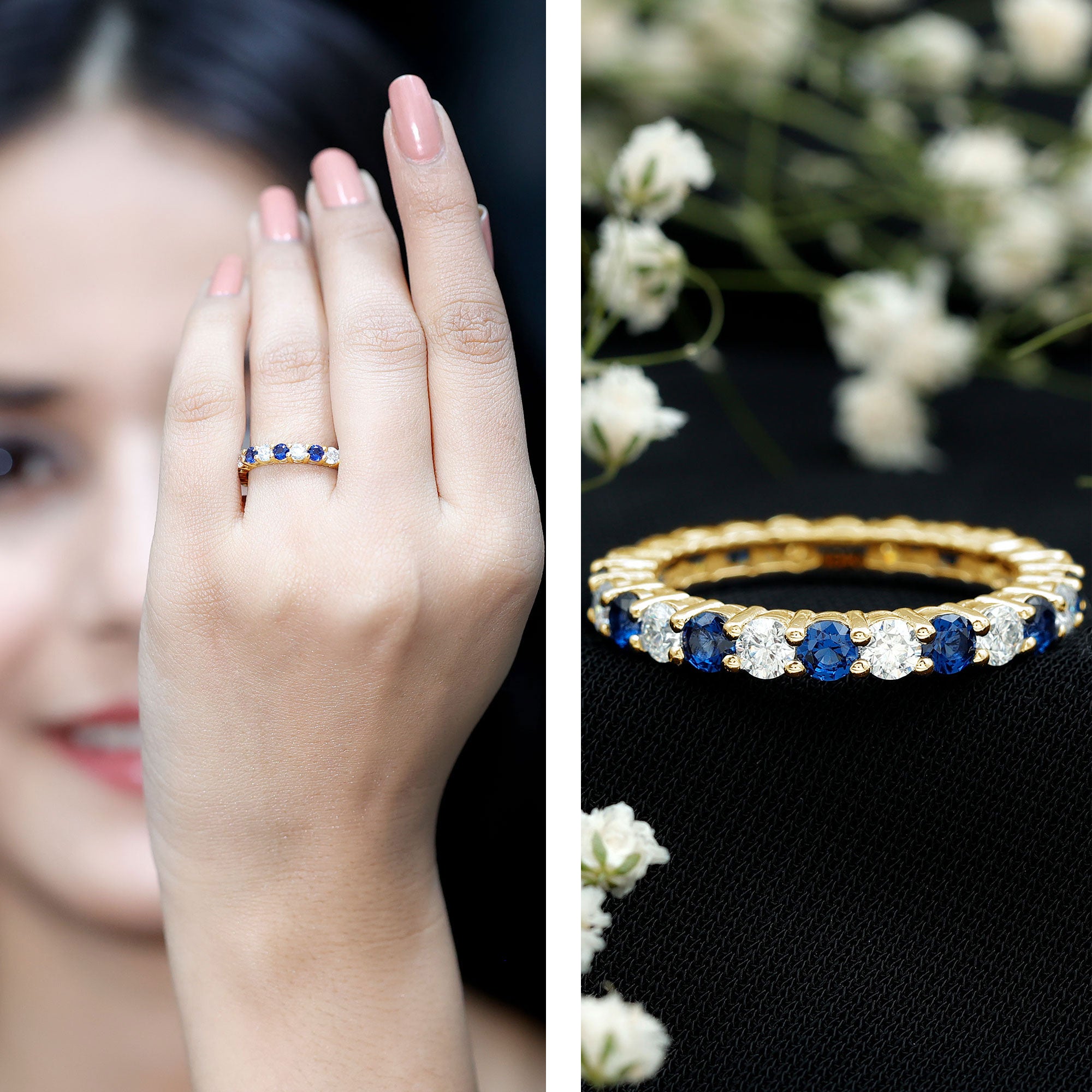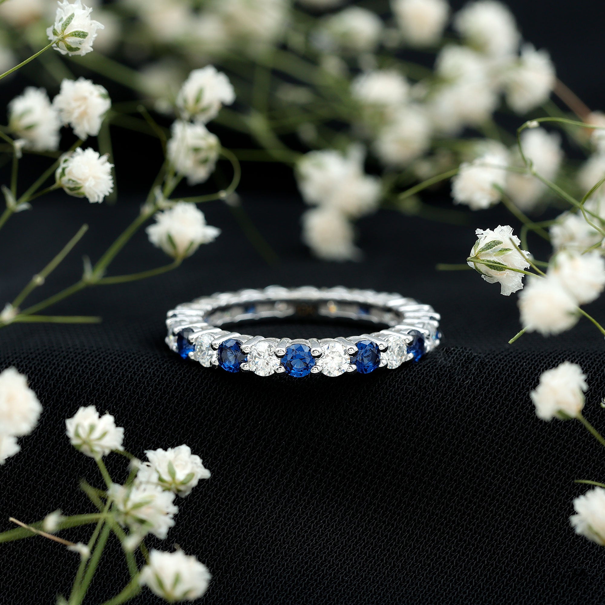 Eternity Rings: Celebrate the ever-lasting bond that you have with your loved ones and remind them of the same everyday with our Blue Sapphire Eternity rings which are duly crafted with love for your special ones.