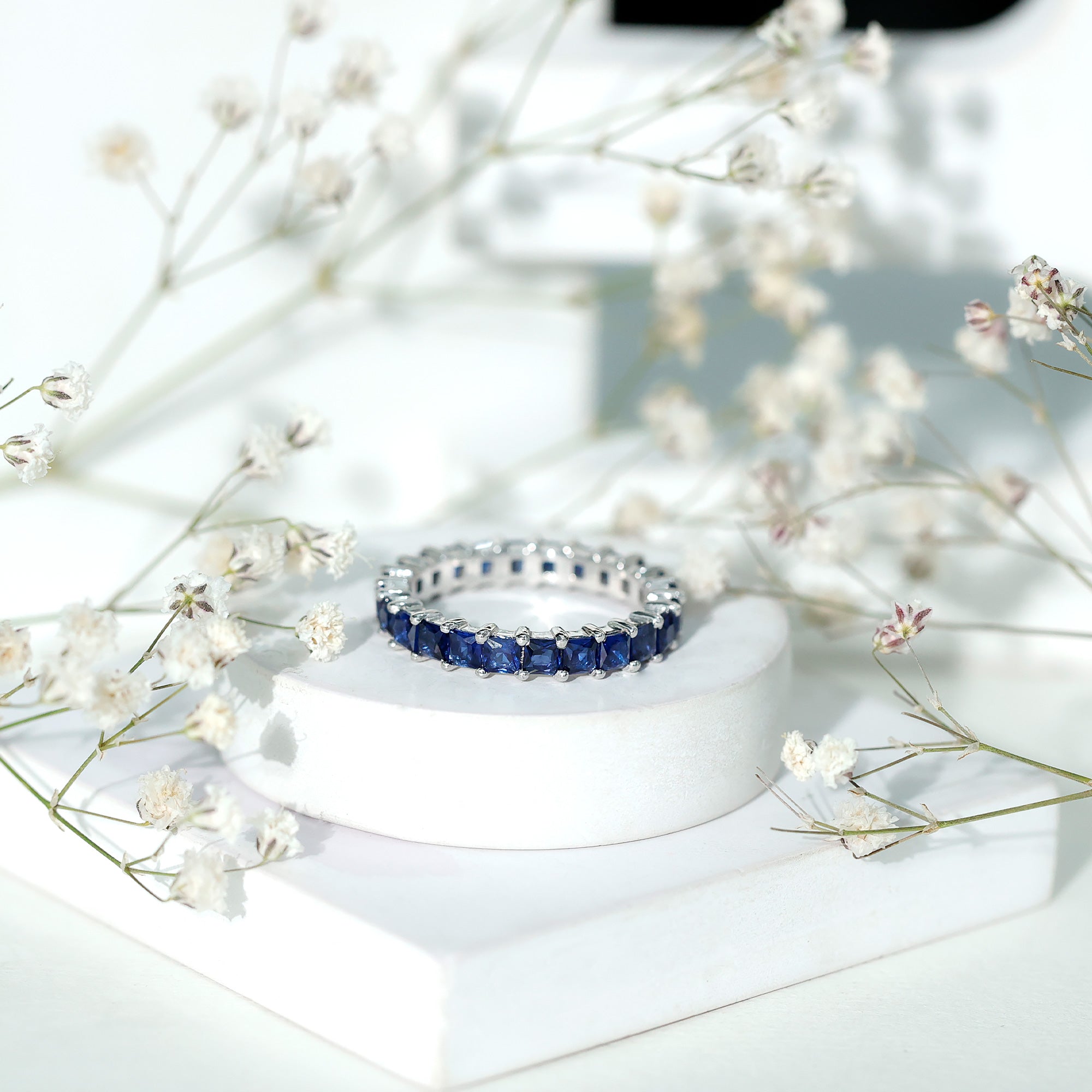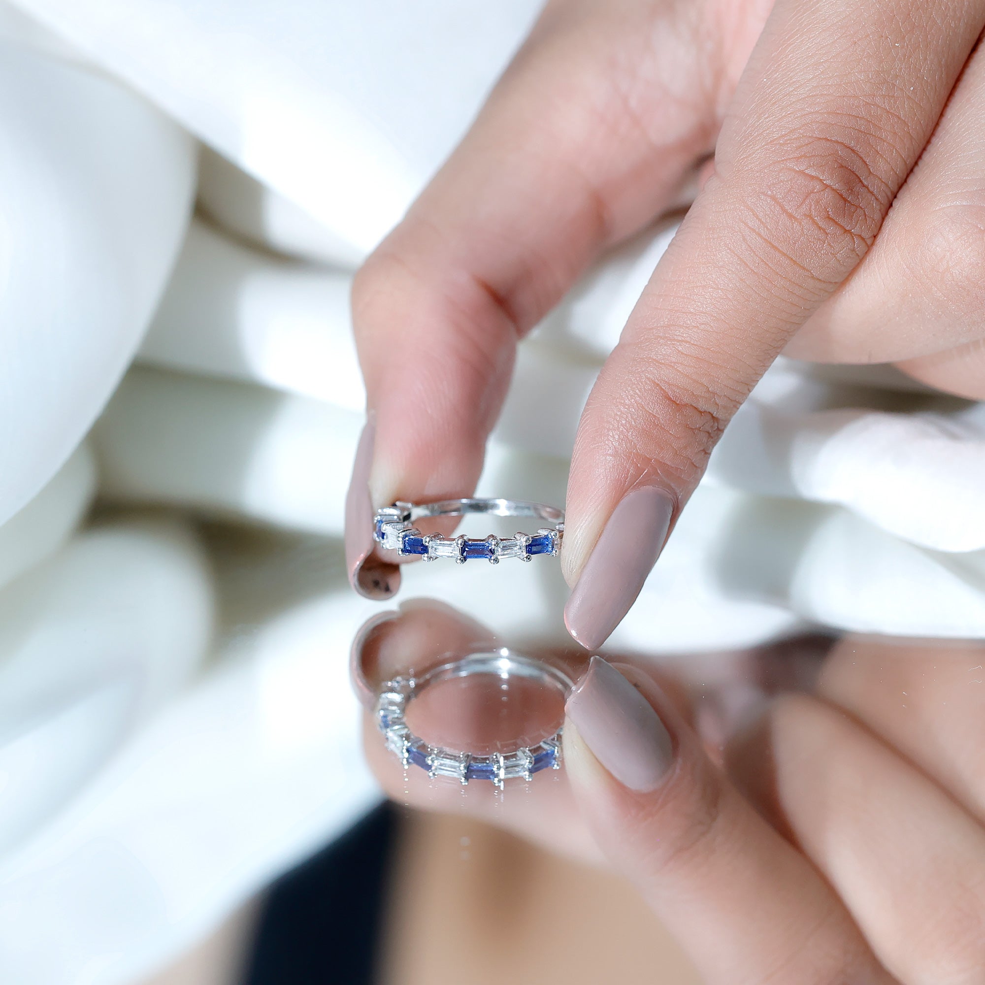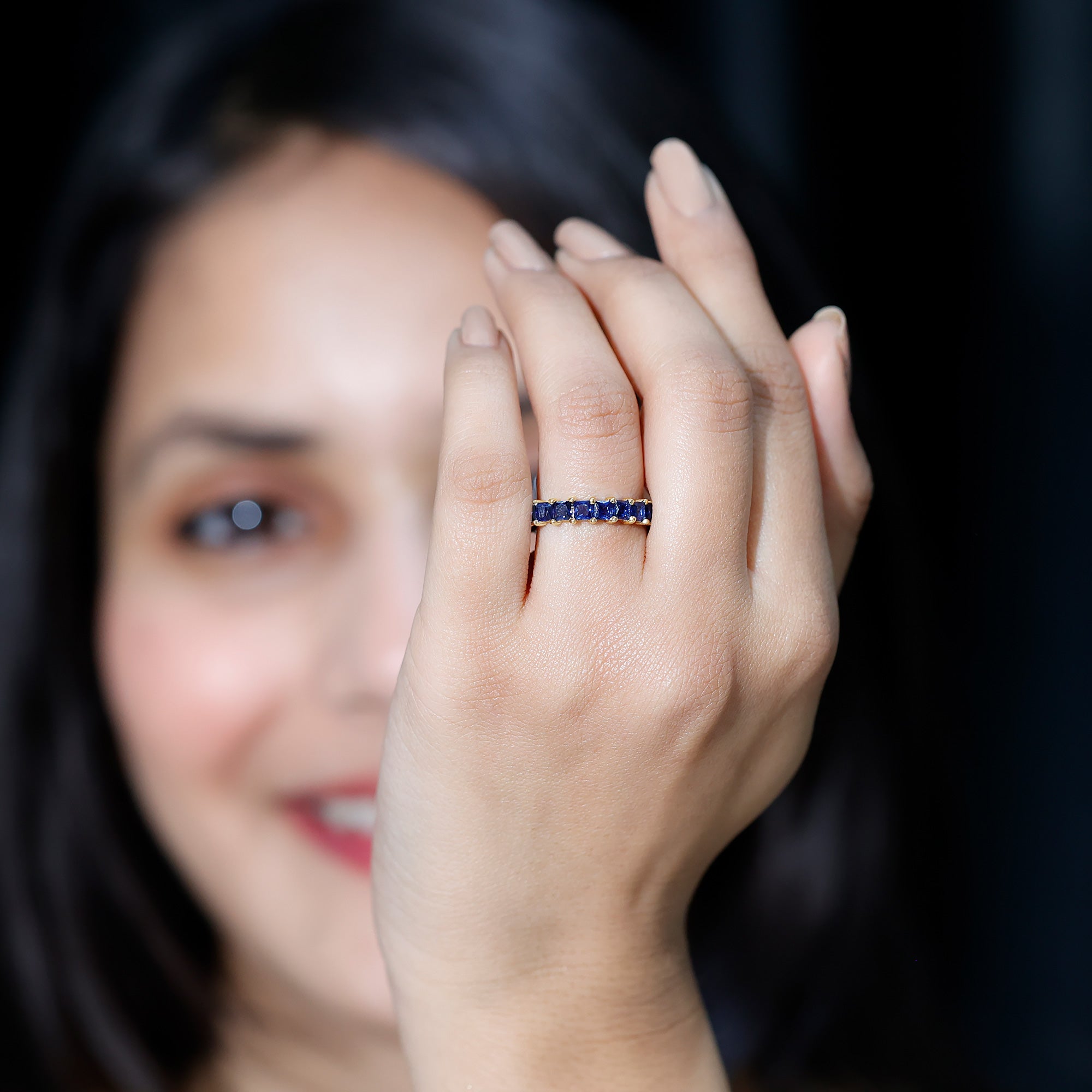 Eternity Rings: Celebrate the ever-lasting bond that you have with your loved ones and remind them of the same everyday with our Blue Sapphire Eternity rings which are duly crafted with love for your special ones.