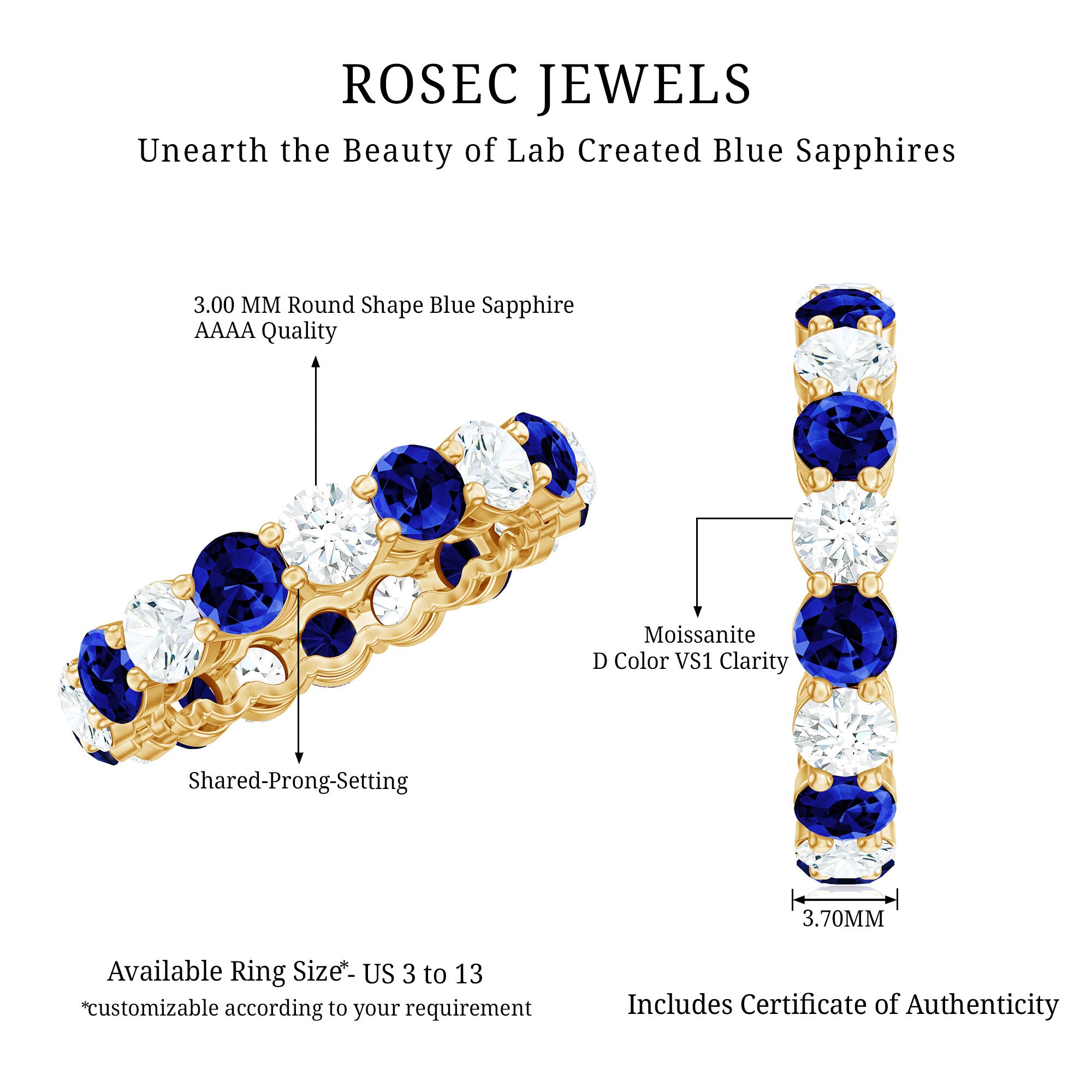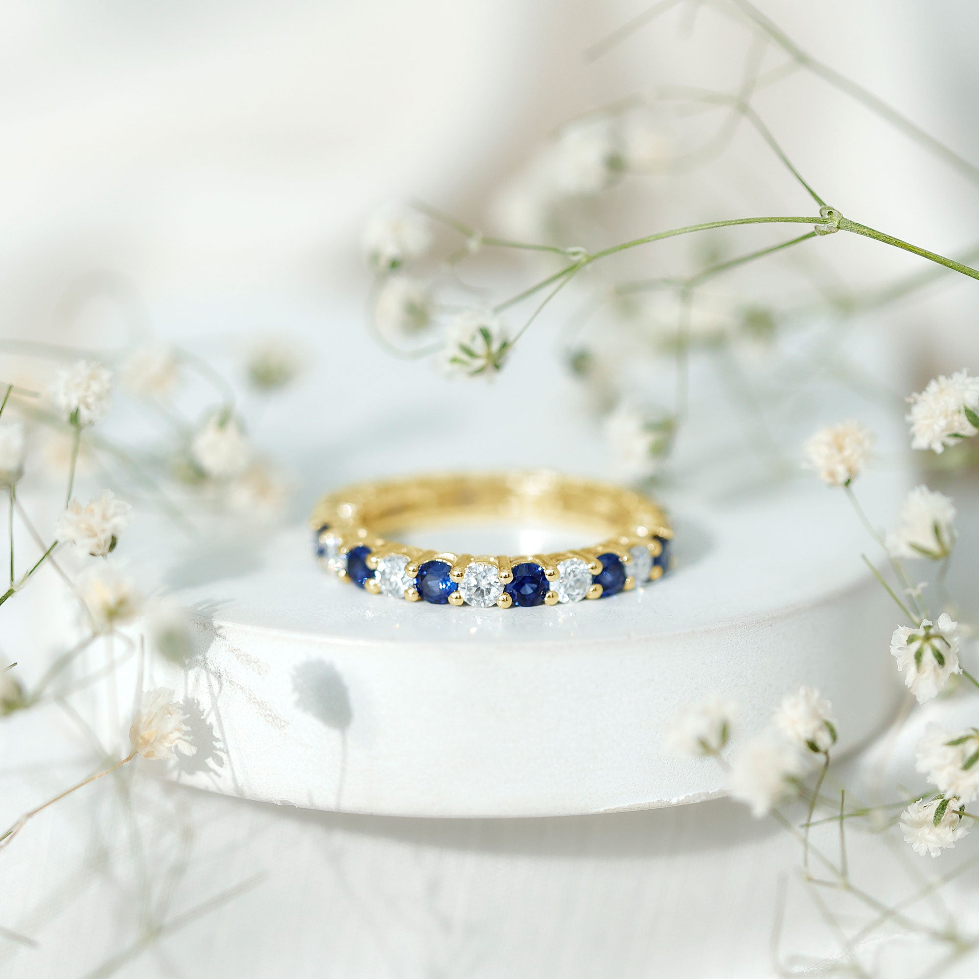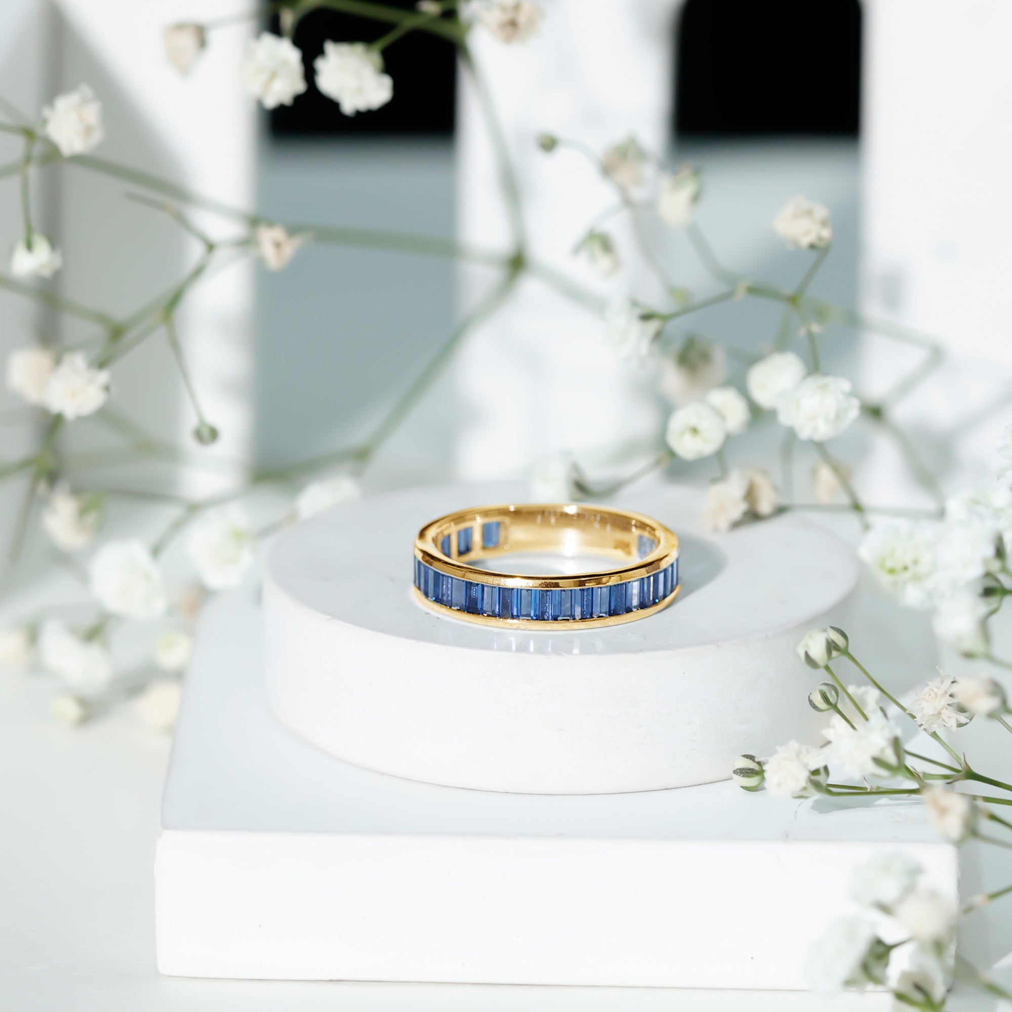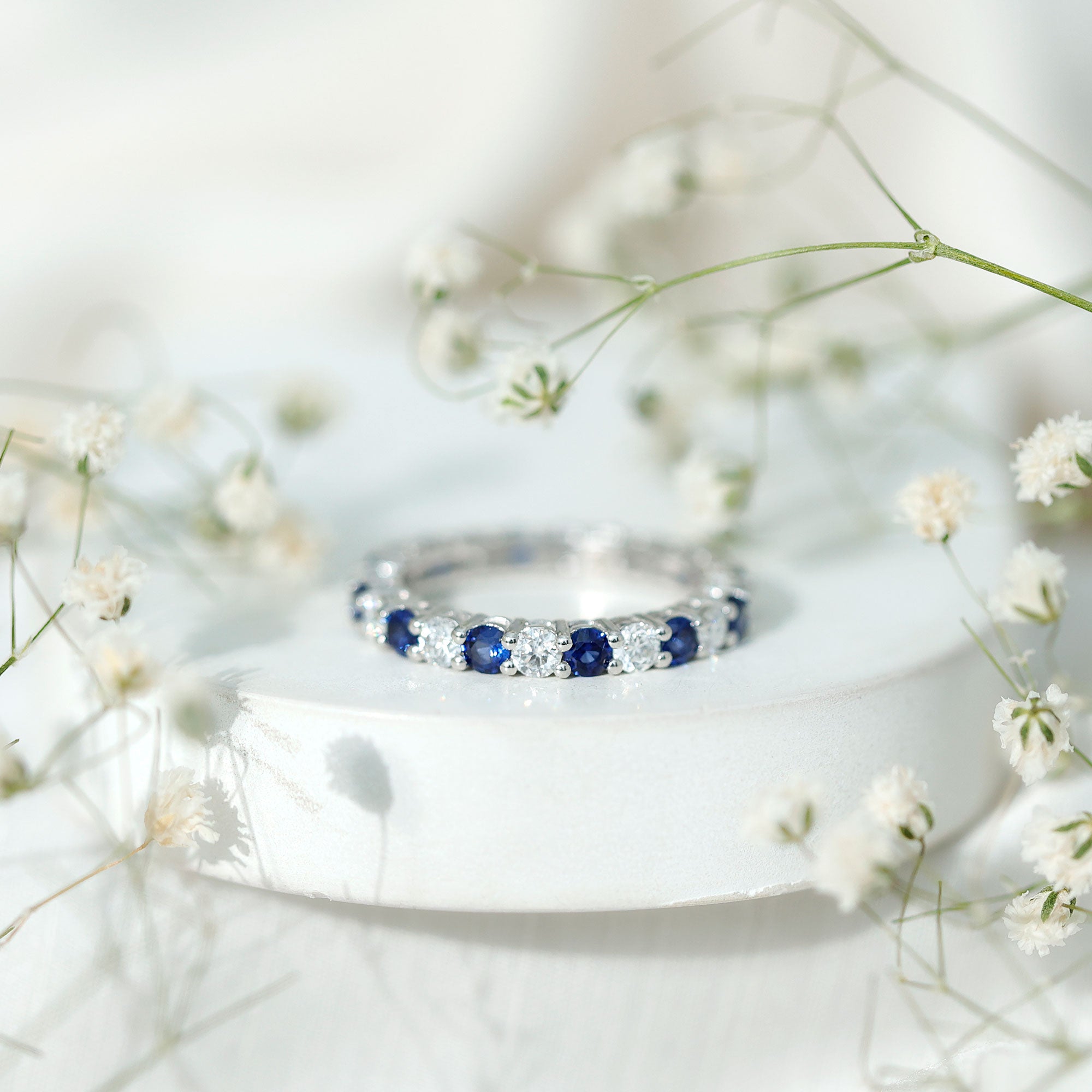 Eternity Rings: Celebrate the ever-lasting bond that you have with your loved ones and remind them of the same everyday with our Blue Sapphire Eternity rings which are duly crafted with love for your special ones.