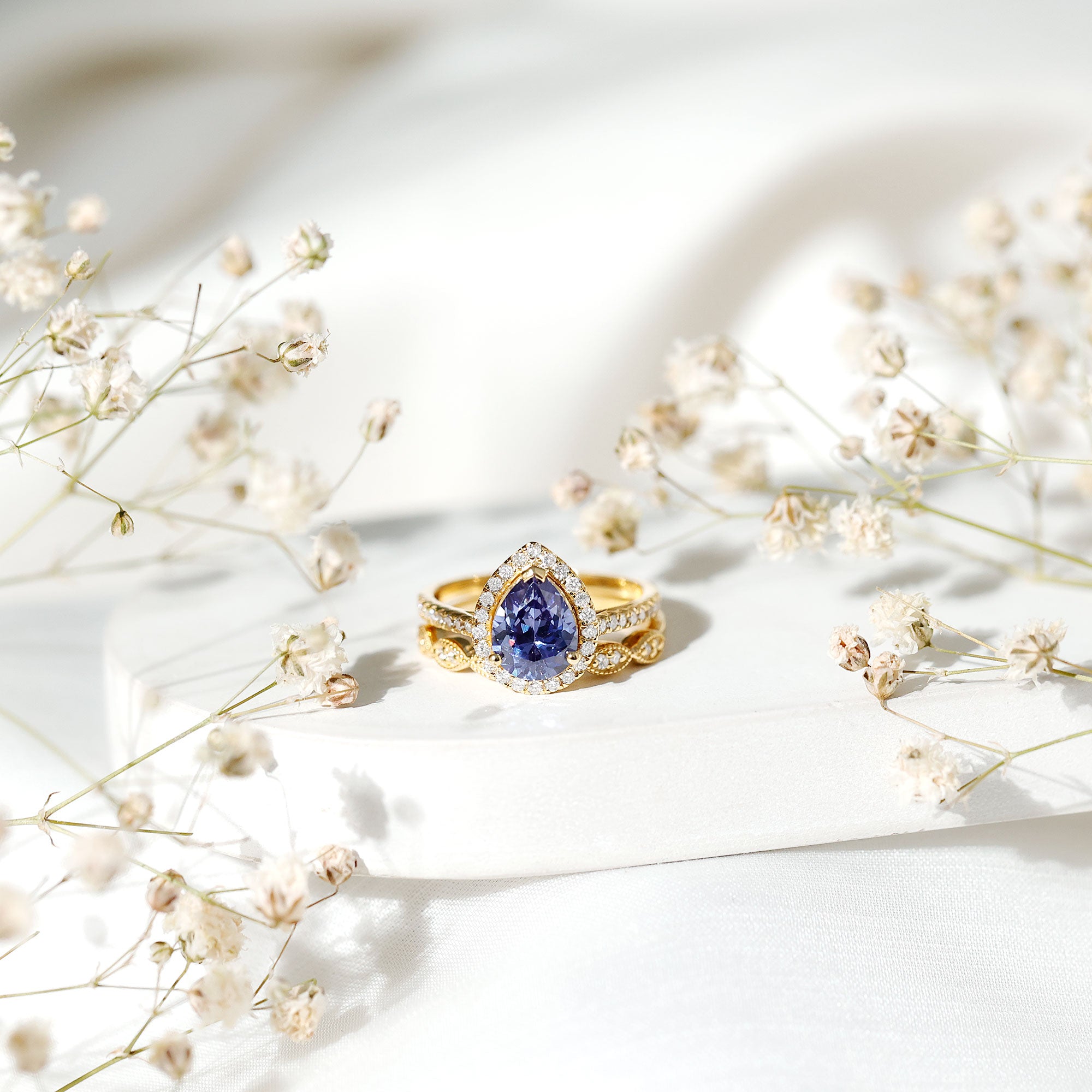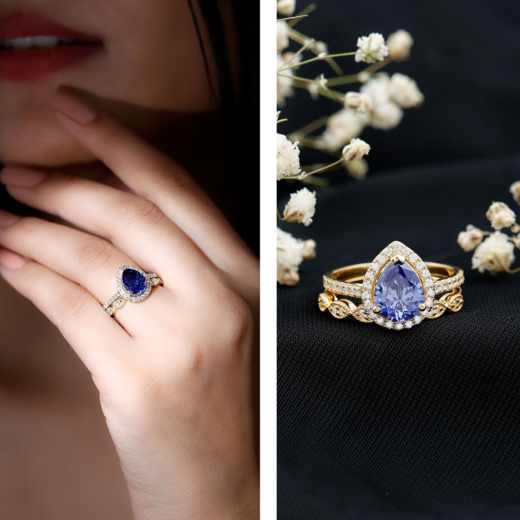 Rings Sets: Give yourself a luxurious appeal with our Blue Sapphire Ring Sets designed especially to keep your precious bonds held close to you in one set of bands. Bridal Ring Set is a combination of engagement ring and wedding ring.