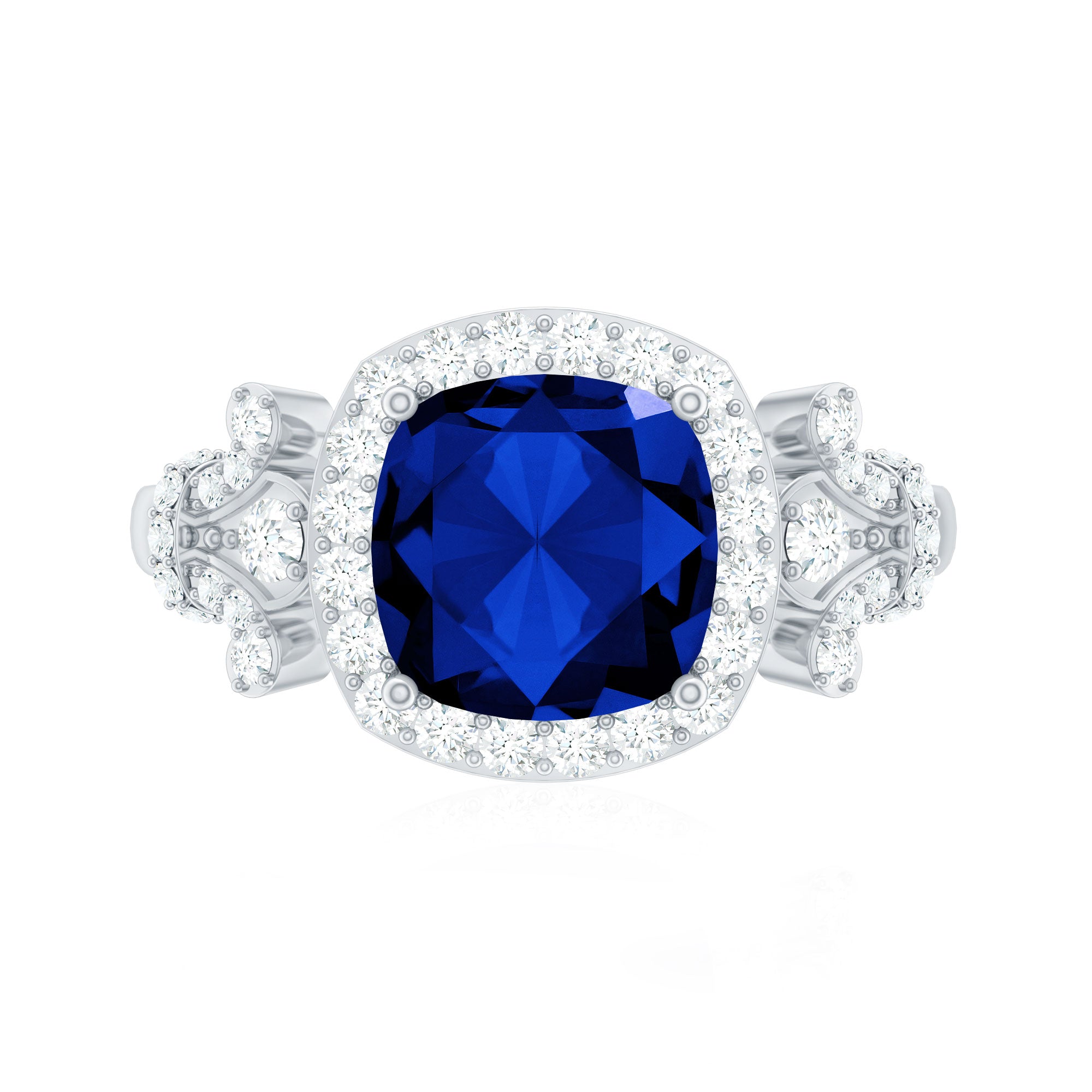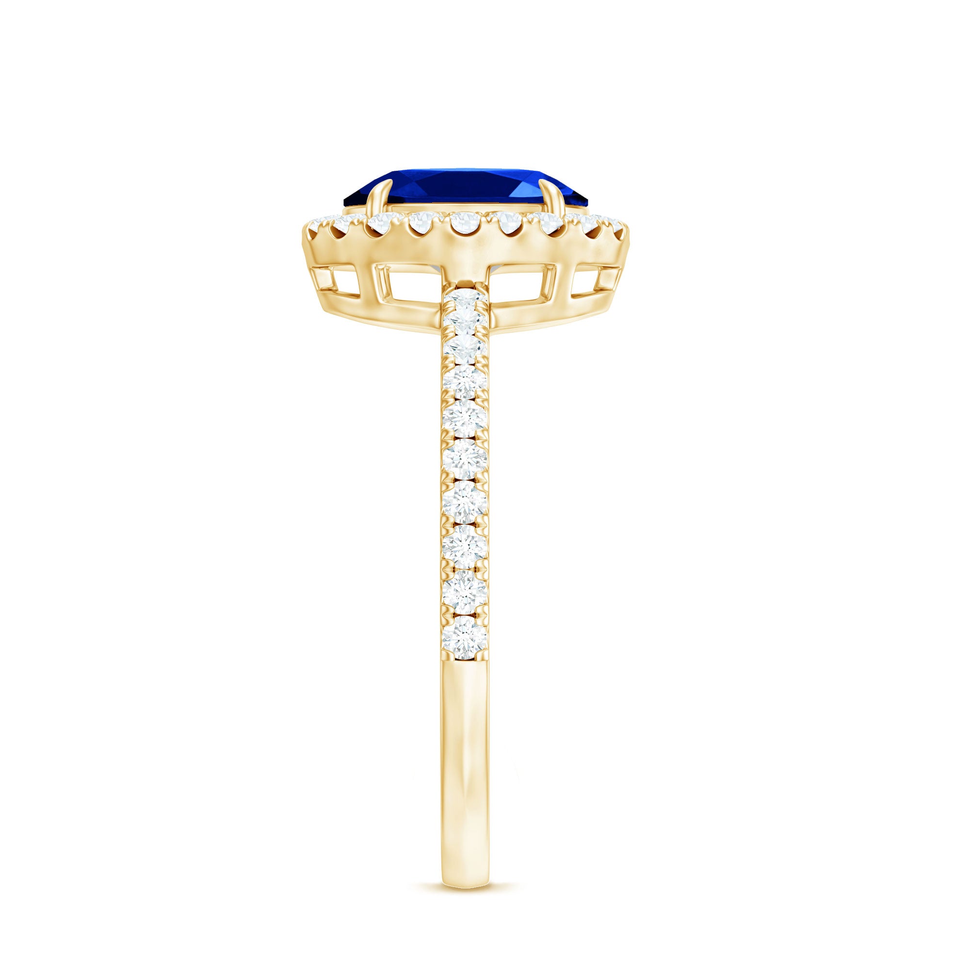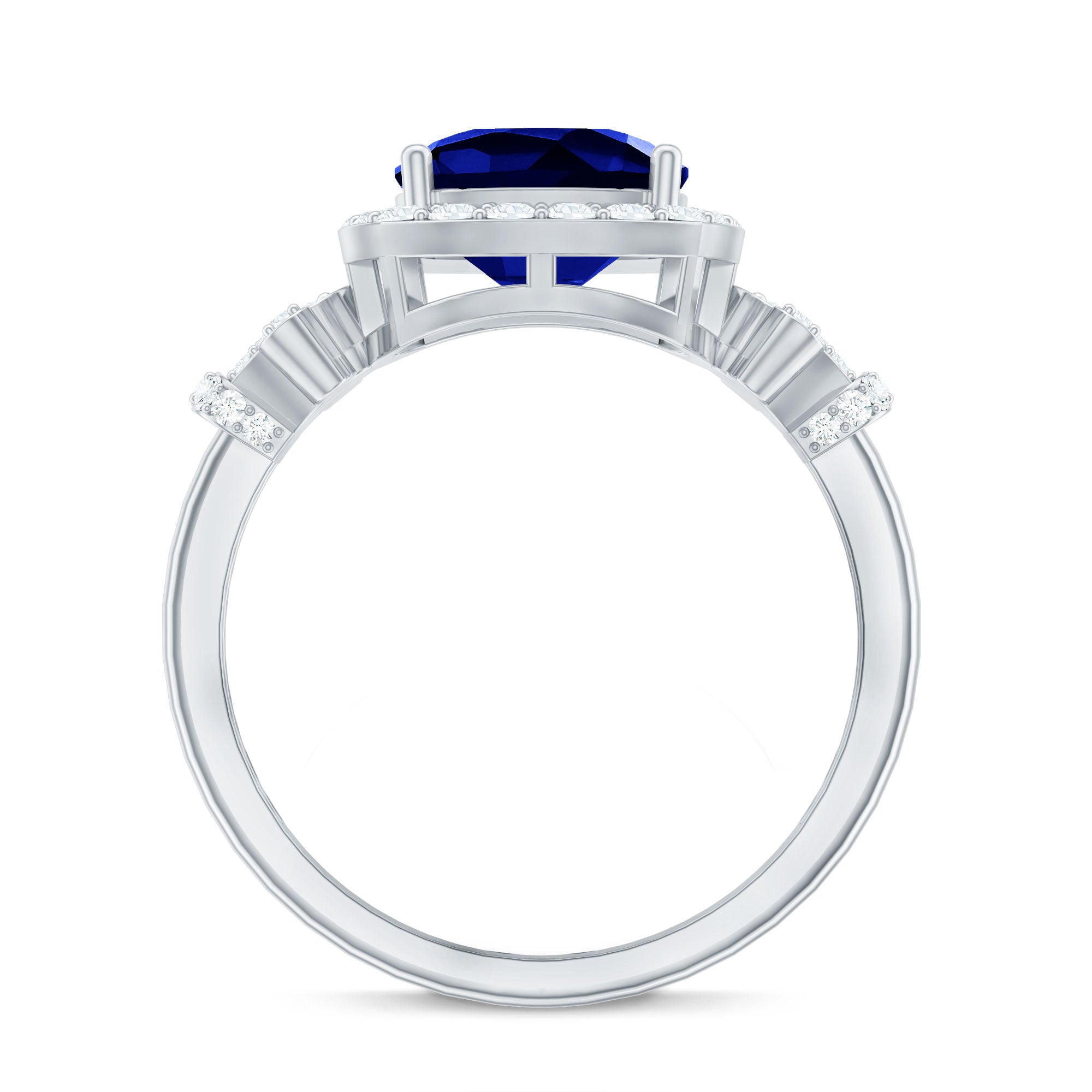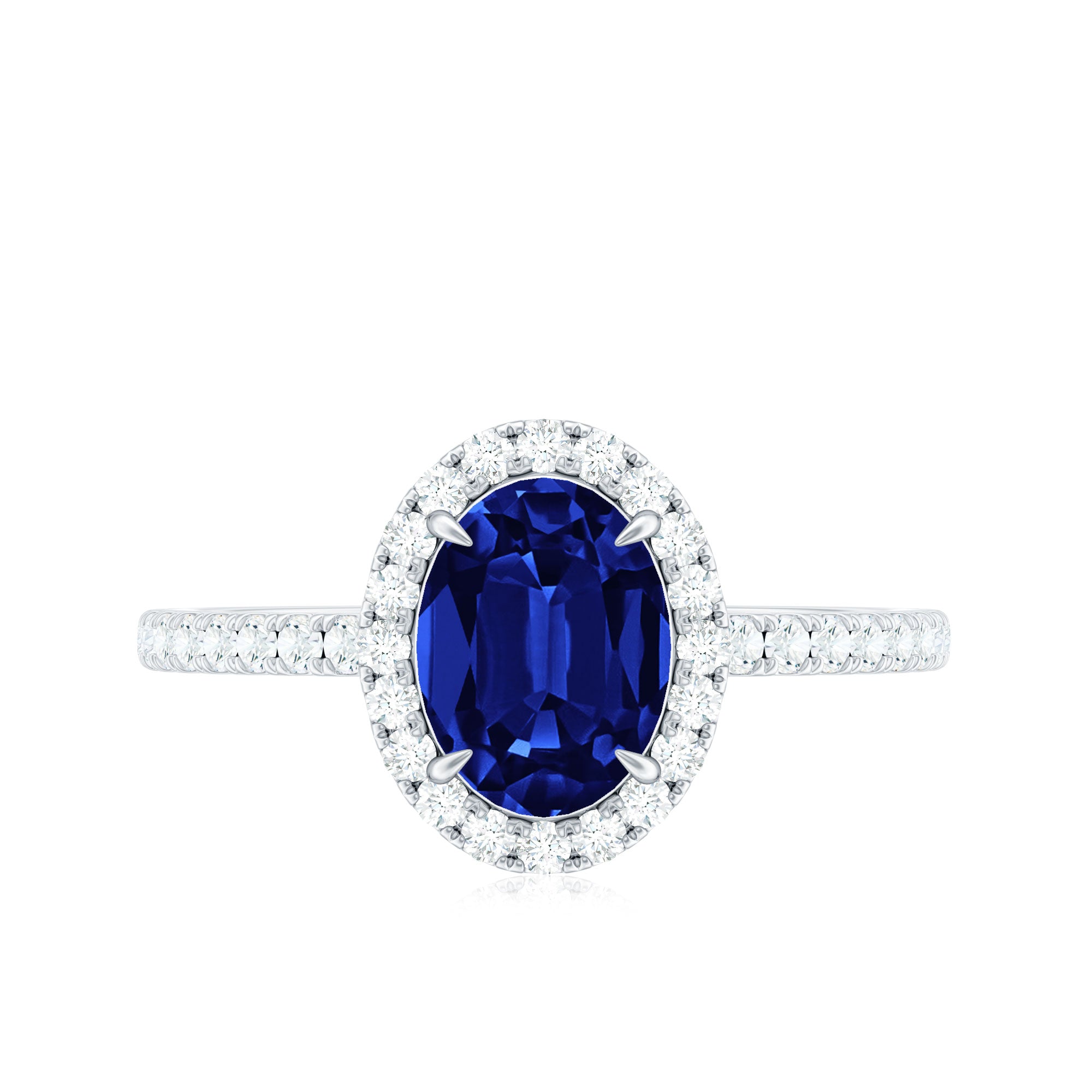 Halo Rings: Begin your new chapter of life with our Blue Sapphire Halo rings. Our eye-catching Blue Sapphire placed in the center and surrounded by small Moissanite stones giving it a magnified look. It fits perfectly with all your occasions as an ultimate symbol of elegance and luxury.