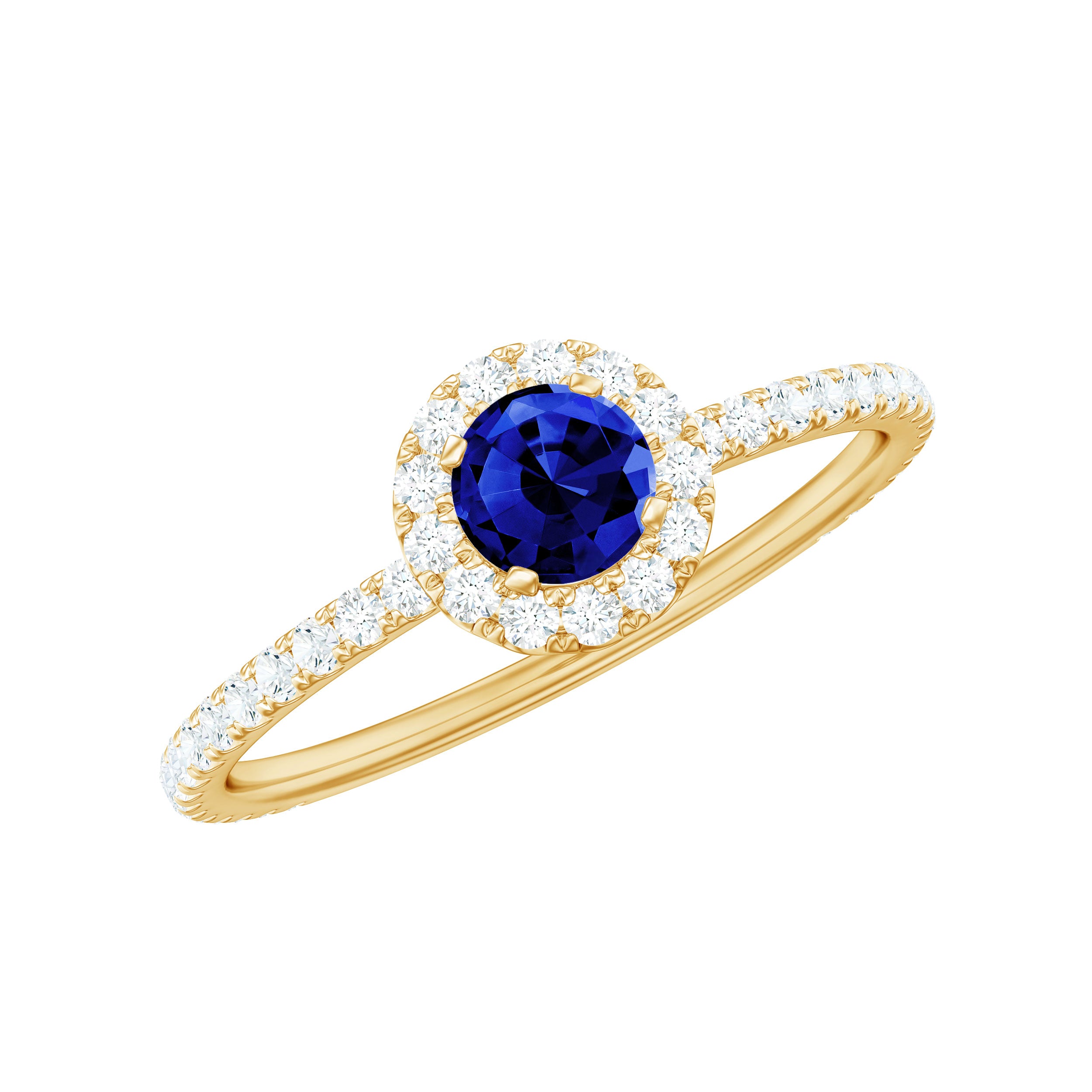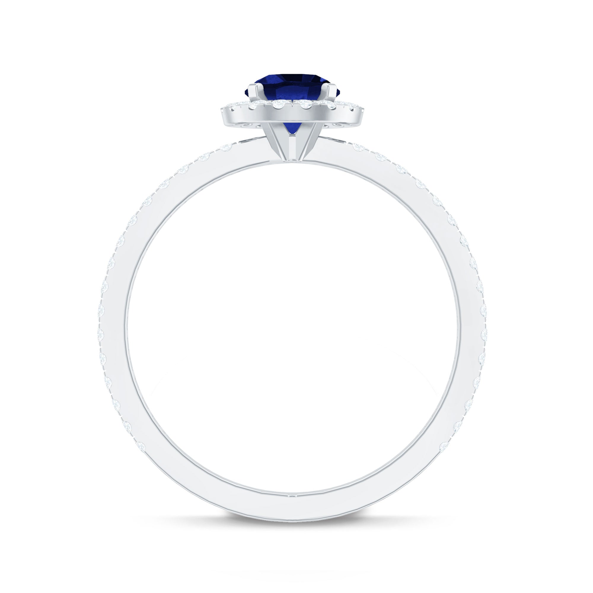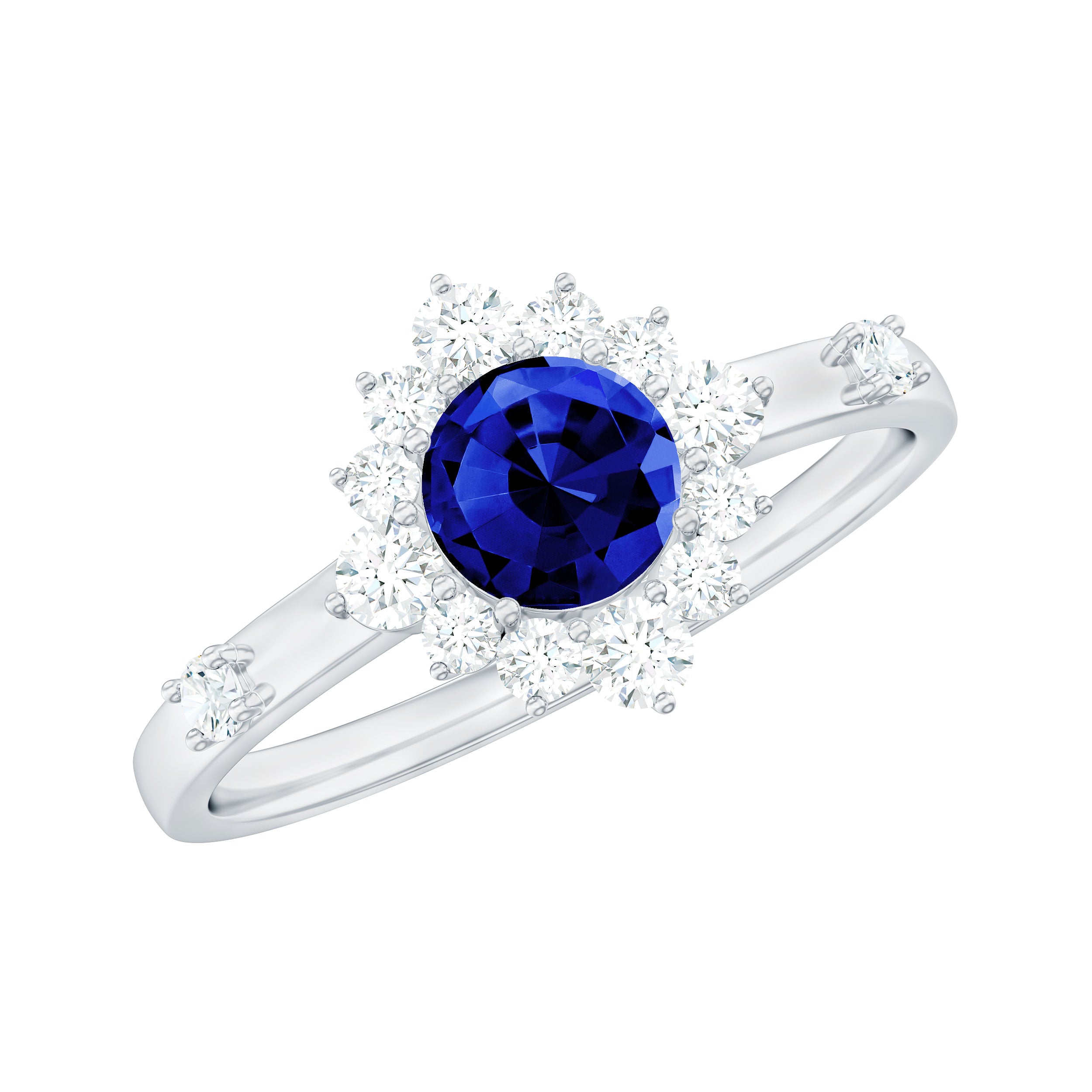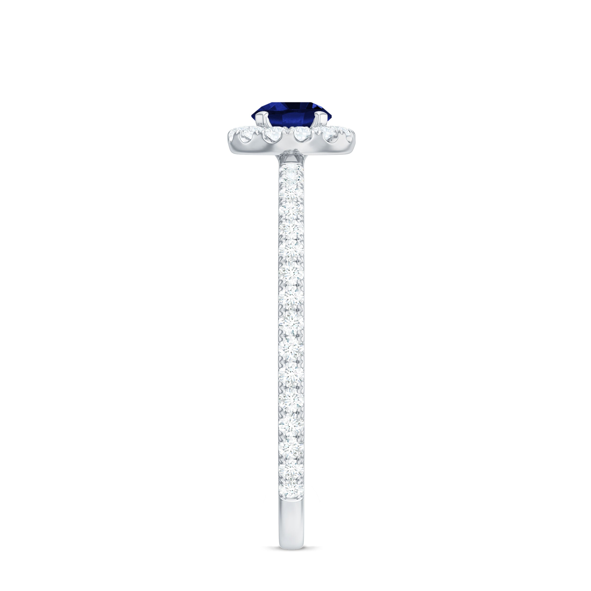 Halo Rings: Begin your new chapter of life with our Blue Sapphire Halo rings. Our eye-catching Blue Sapphire placed in the center and surrounded by small Moissanite stones giving it a magnified look. It fits perfectly with all your occasions as an ultimate symbol of elegance and luxury.