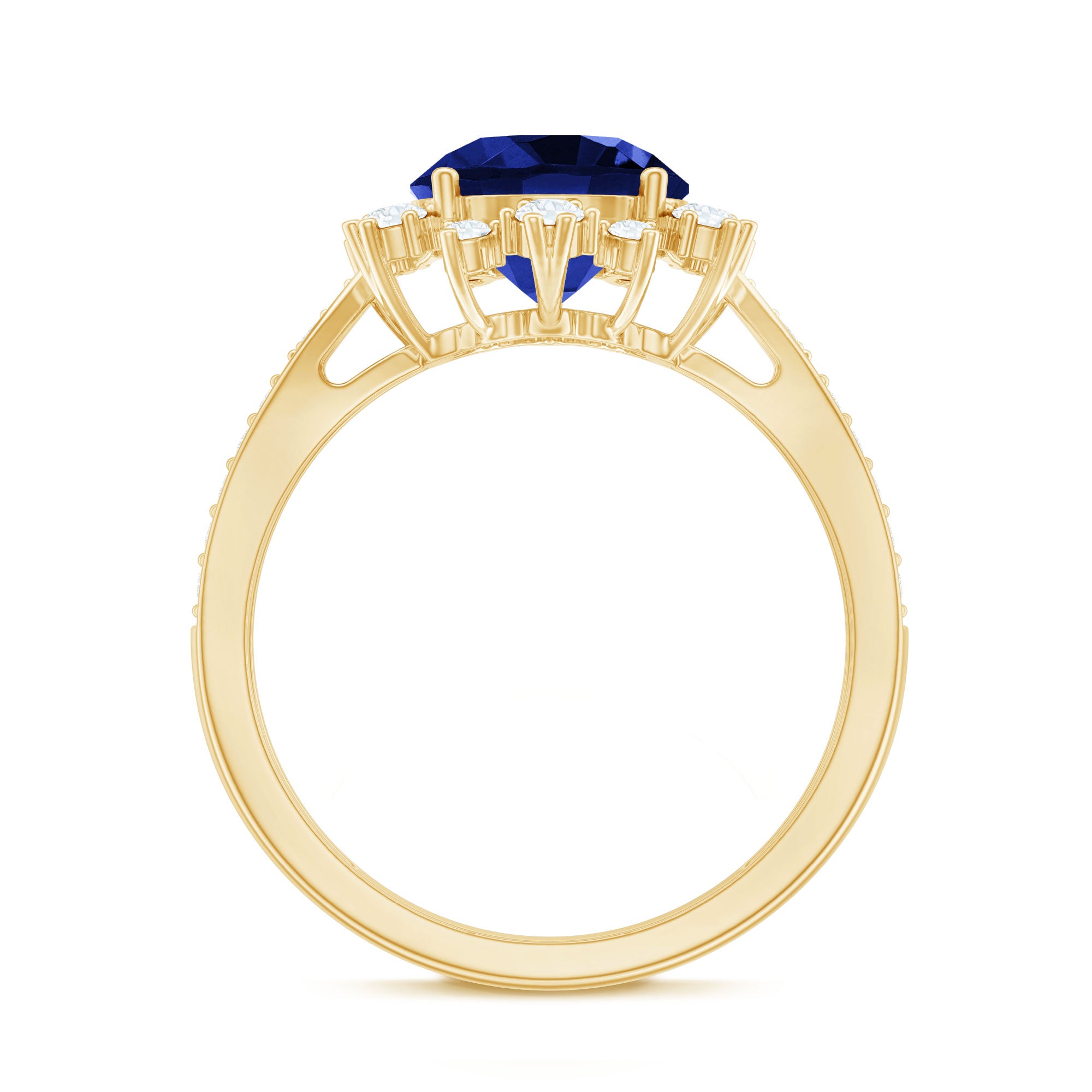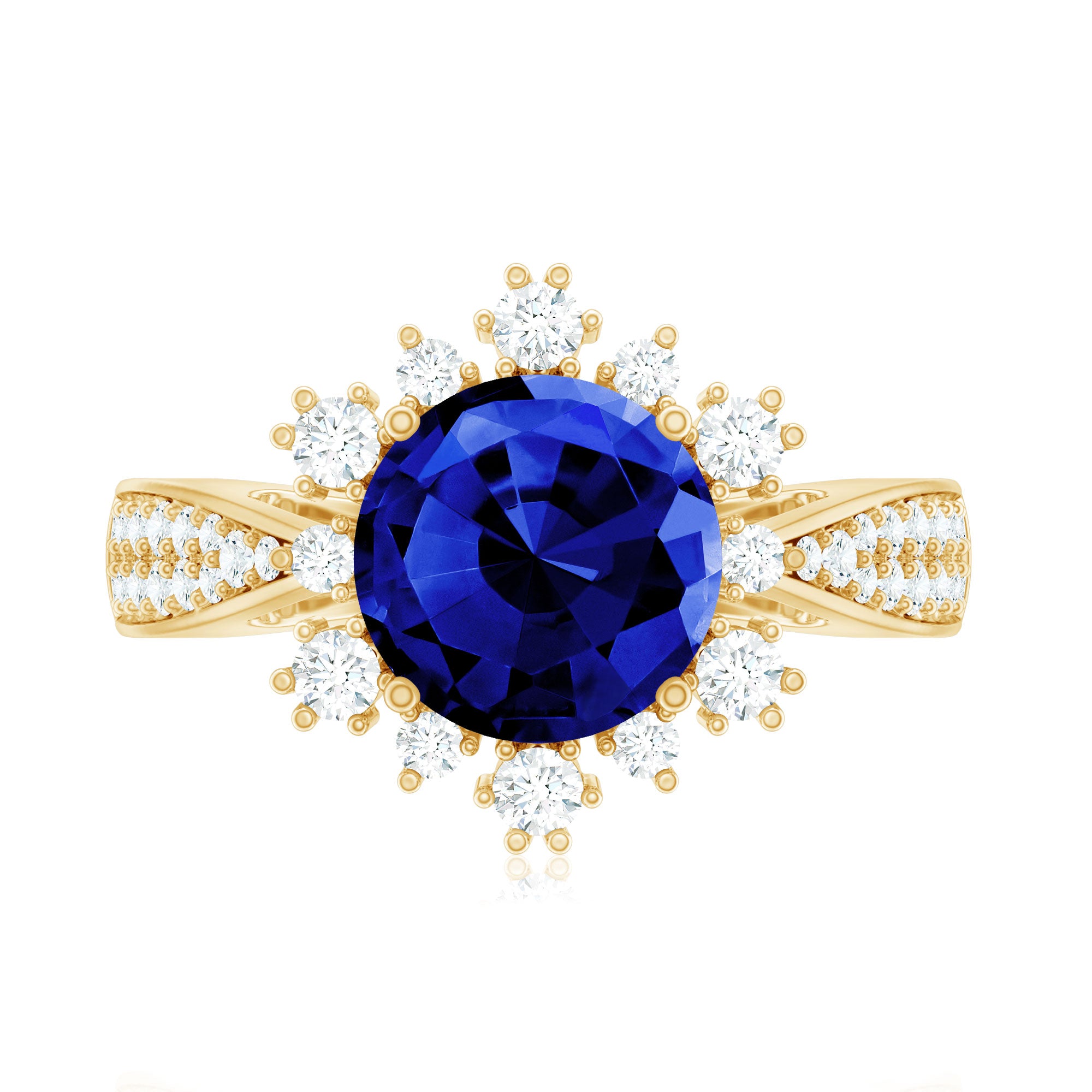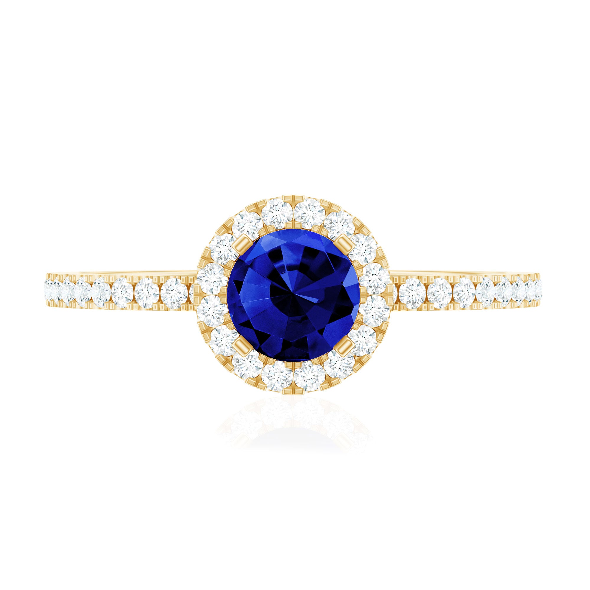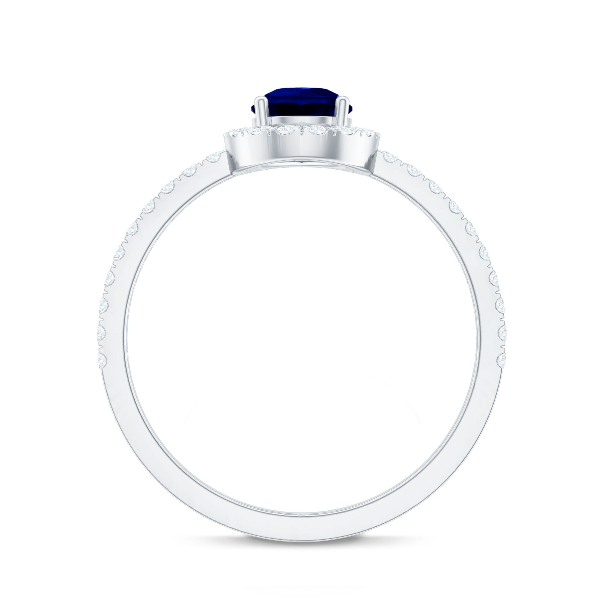Halo Rings: Begin your new chapter of life with our Blue Sapphire Halo rings. Our eye-catching Blue Sapphire placed in the center and surrounded by small Moissanite stones giving it a magnified look. It fits perfectly with all your occasions as an ultimate symbol of elegance and luxury.