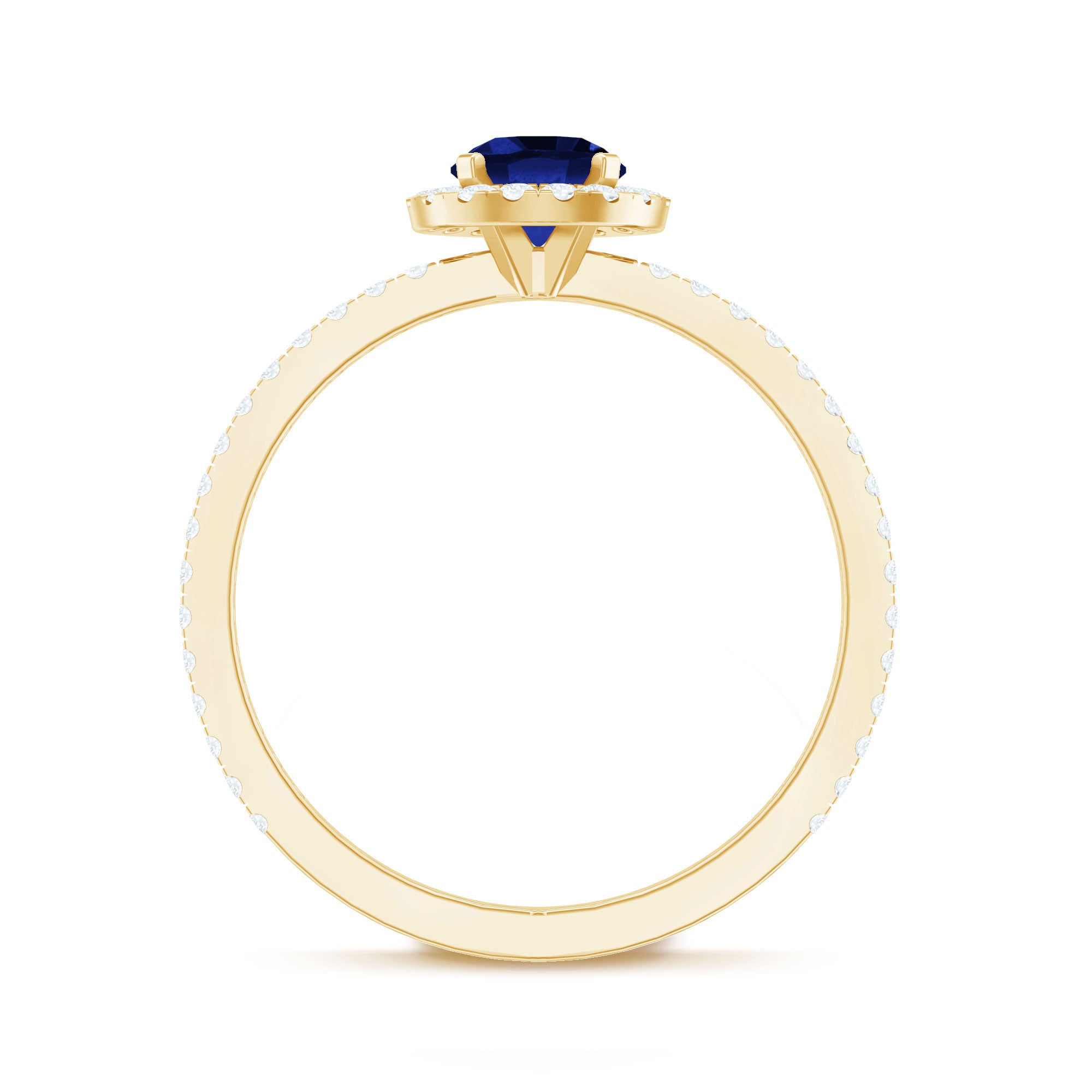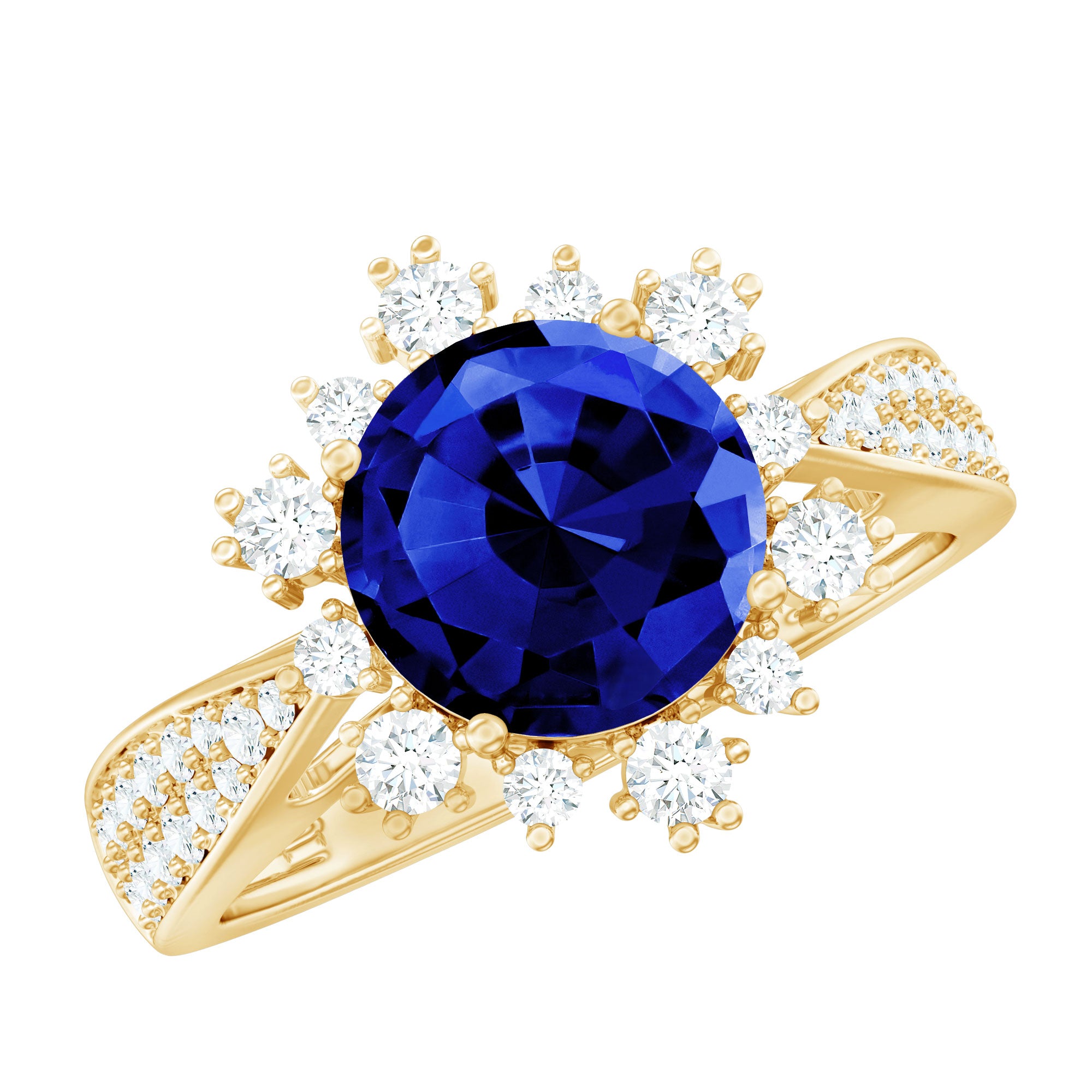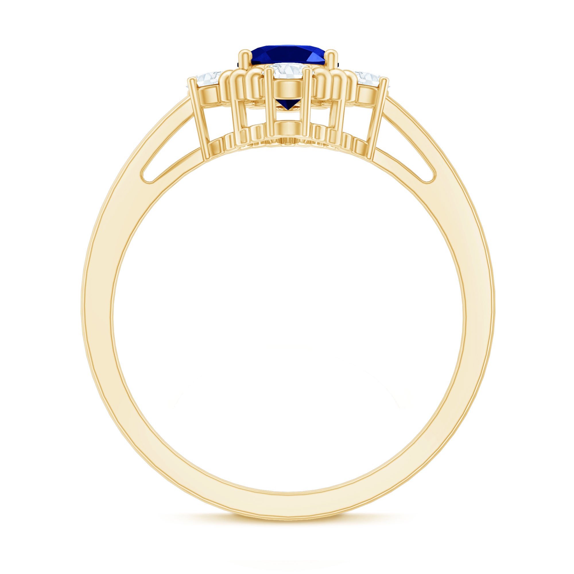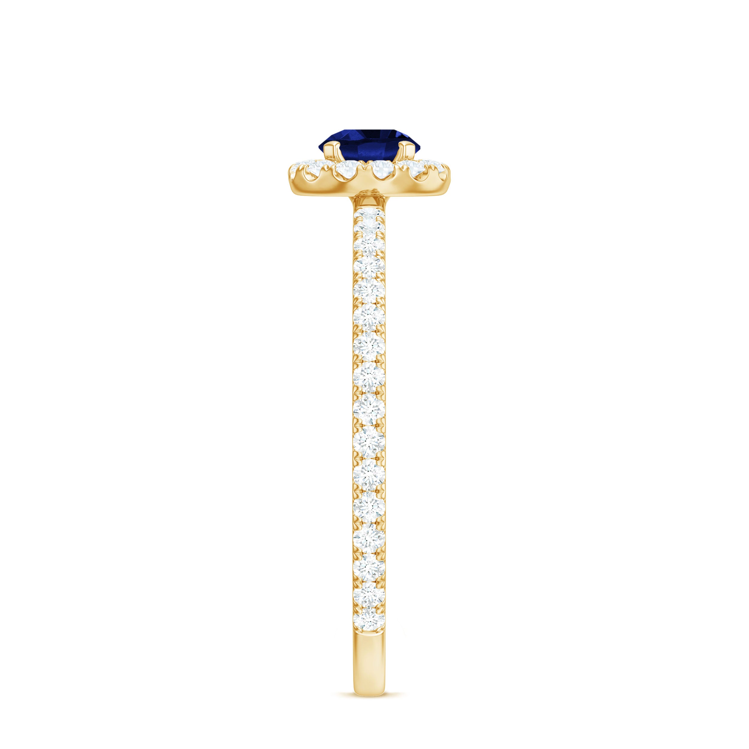 Halo Rings: Begin your new chapter of life with our Blue Sapphire Halo rings. Our eye-catching Blue Sapphire placed in the center and surrounded by small Moissanite stones giving it a magnified look. It fits perfectly with all your occasions as an ultimate symbol of elegance and luxury.