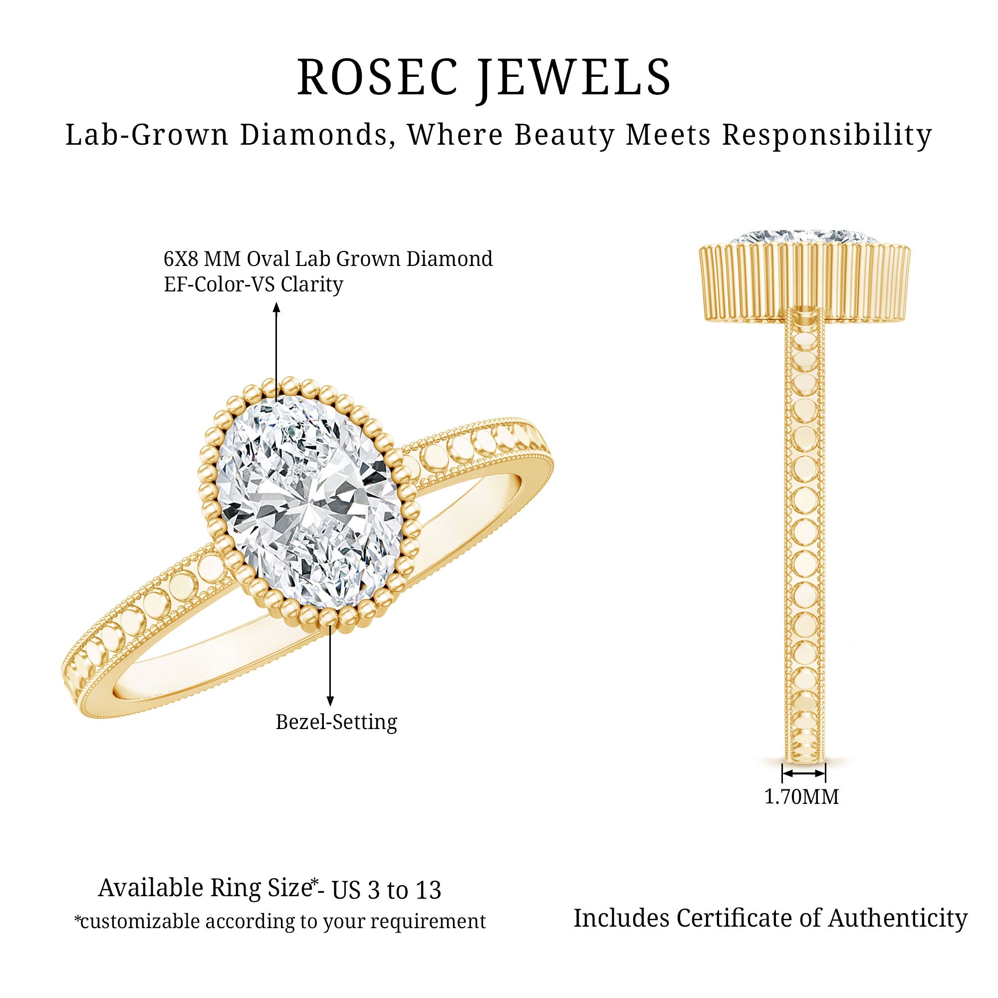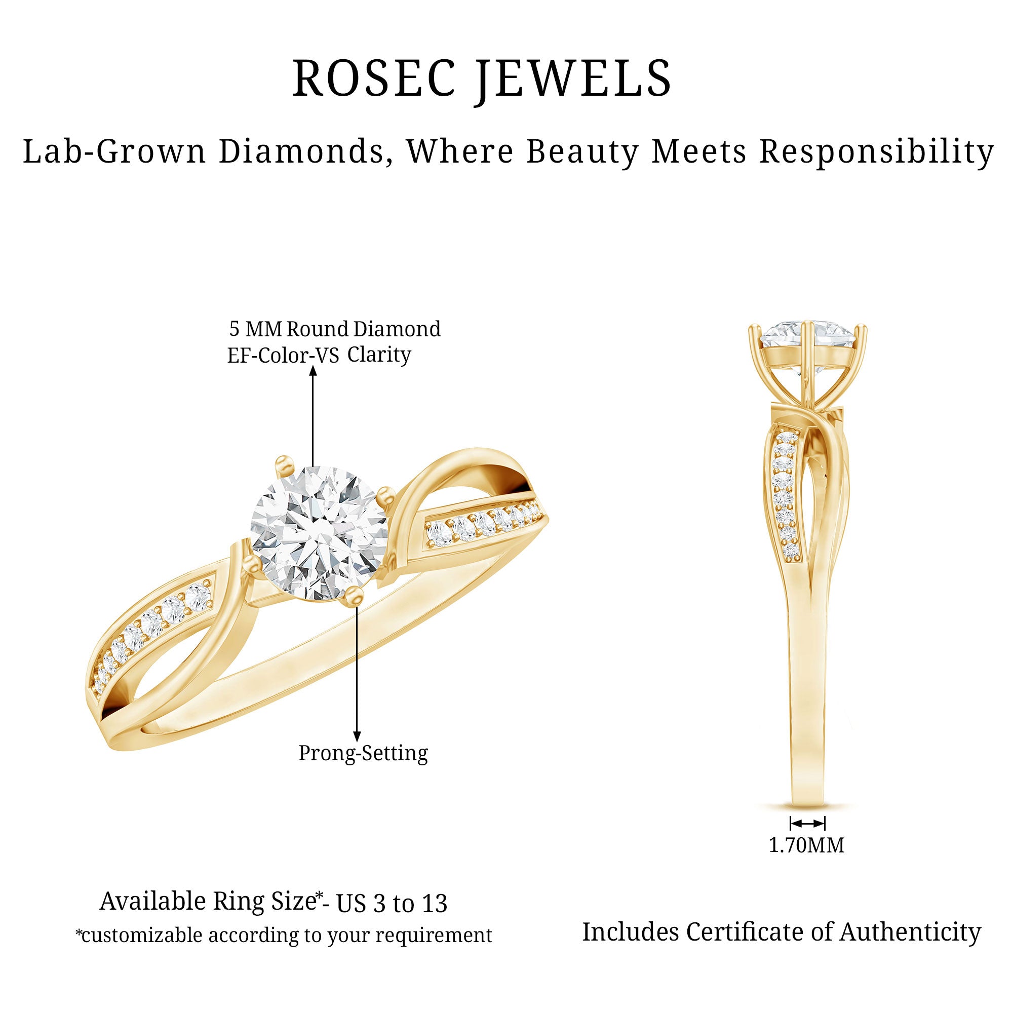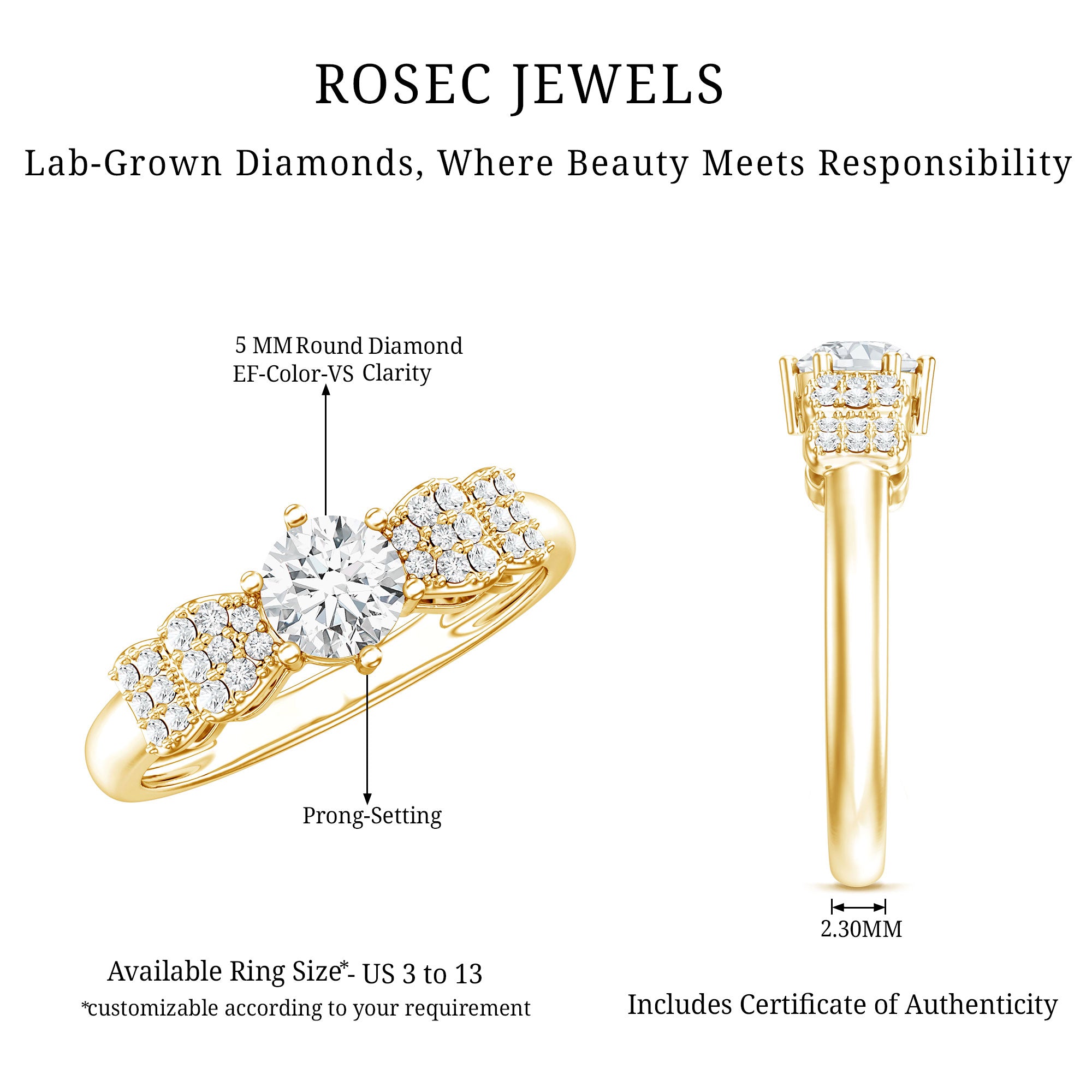 What sets Rosec Jewels apart from the rest? Well, it is about serving nothing less than the best in terms of quality, authenticity, and convenience. With rosec jewels, you will get high-quality lab-grown diamonds and rings crafted with perfection.