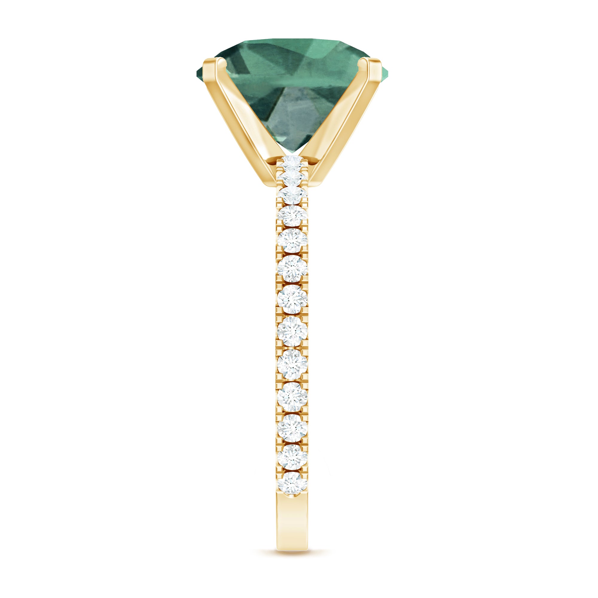 Metal options available:Yellow Gold: Classic glow of yellow gold, can be the choice of traditional warmth lovers. It is known to enhance the rich tones of green gemstone.
