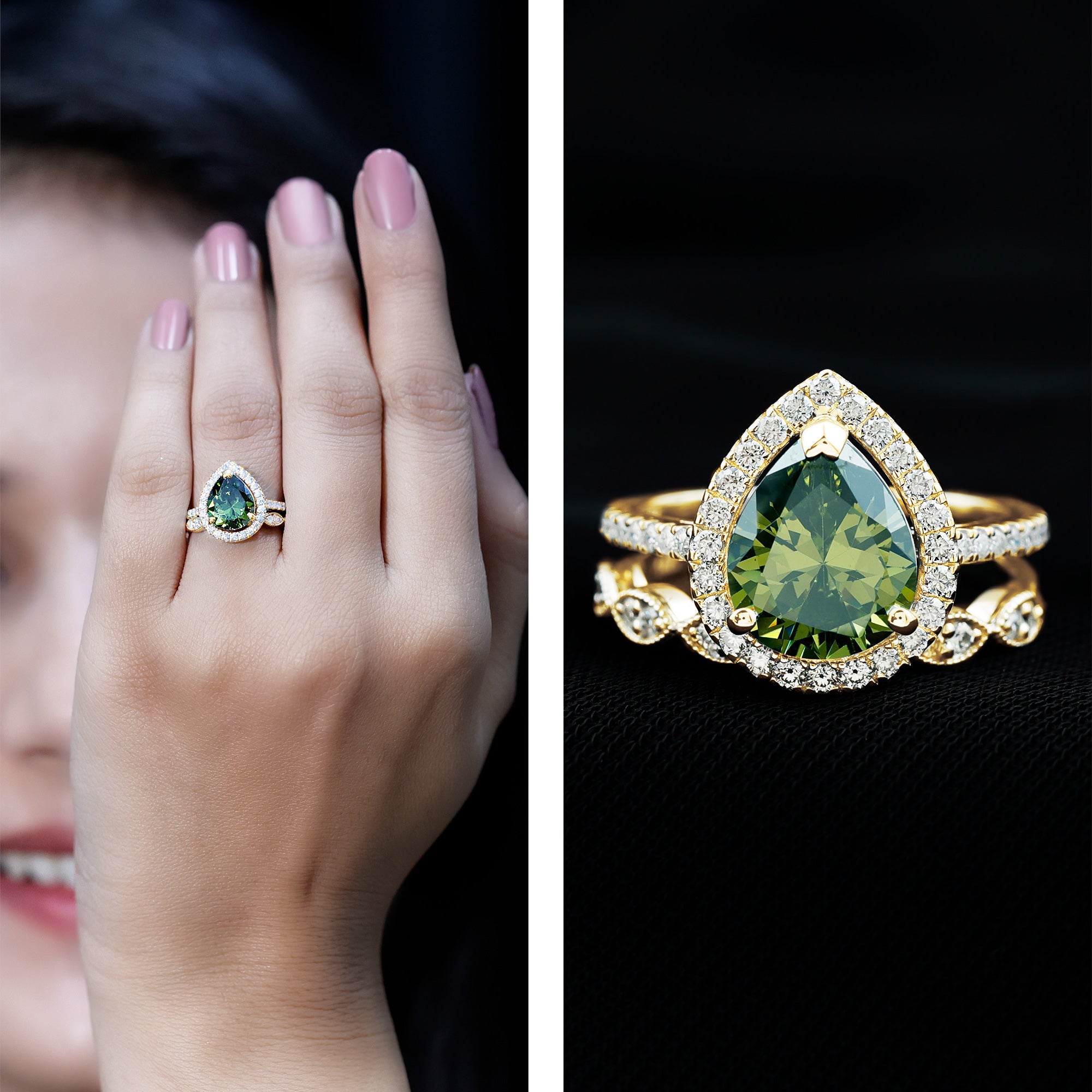 Statement Rings: Statement rings usually feature large lab created green sapphire adorned with smaller stones or intricate patterns for a bold, standout look.
