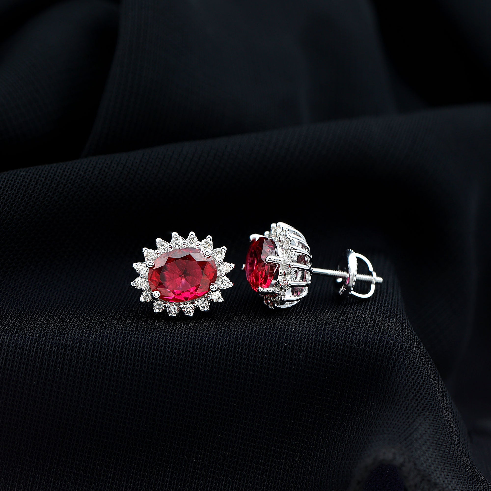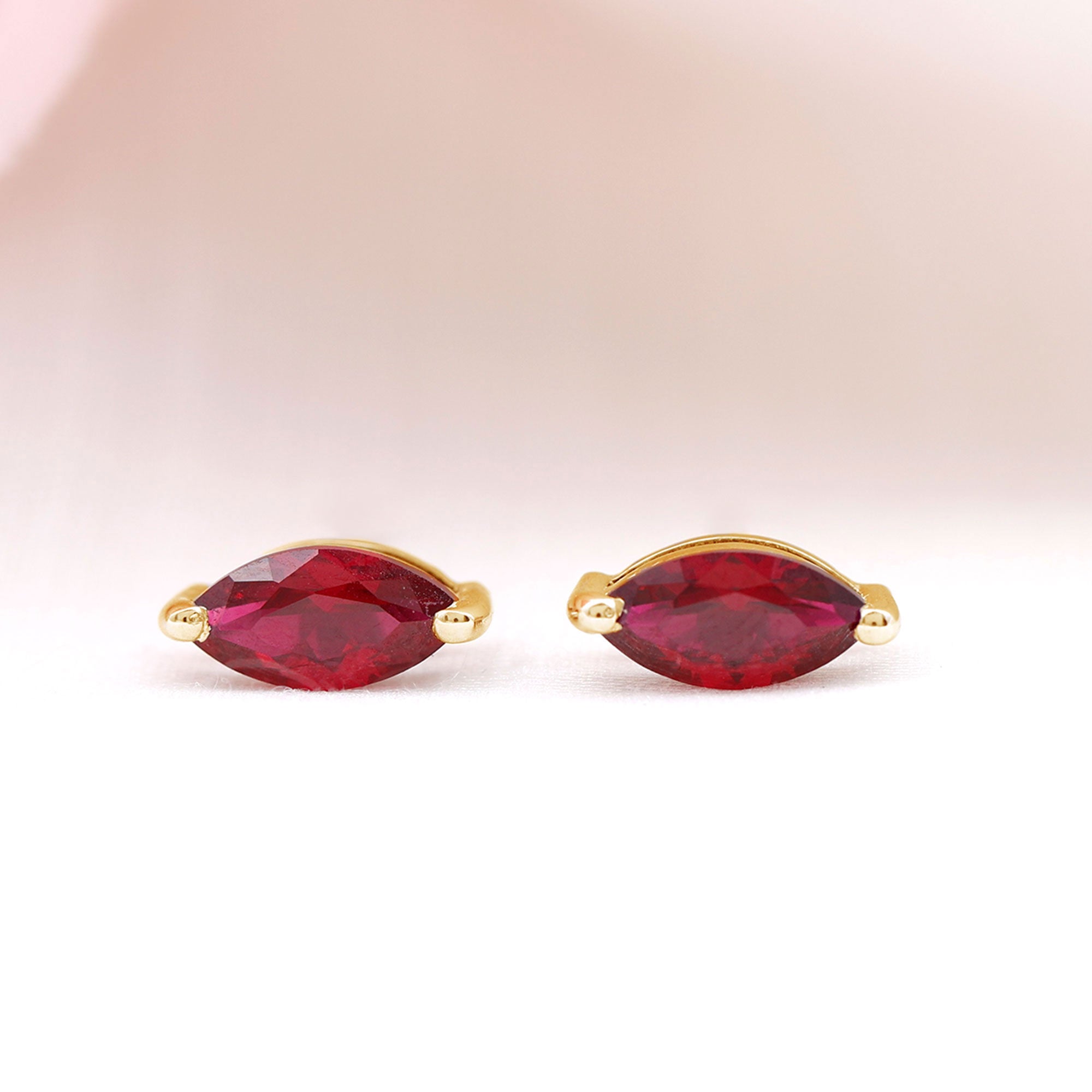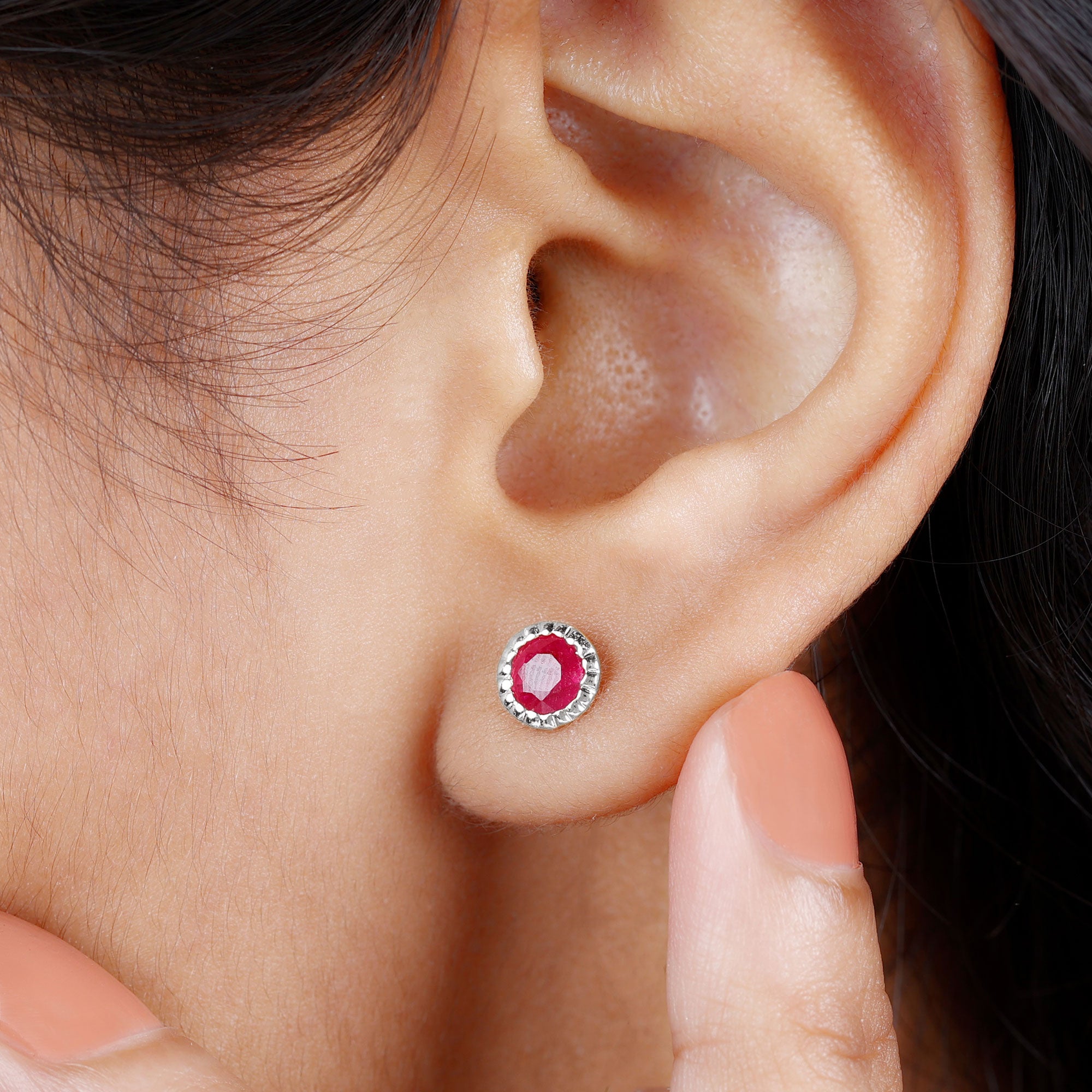 • White Gold: White gold offers a modern and sleek look that contrasts perfectly with the rich red hue of ruby. The cool undertone of white gold metal adds a touch of elegance and timeless appeal to the lab-grown ruby earrings, ideal for the ones who love classic style.