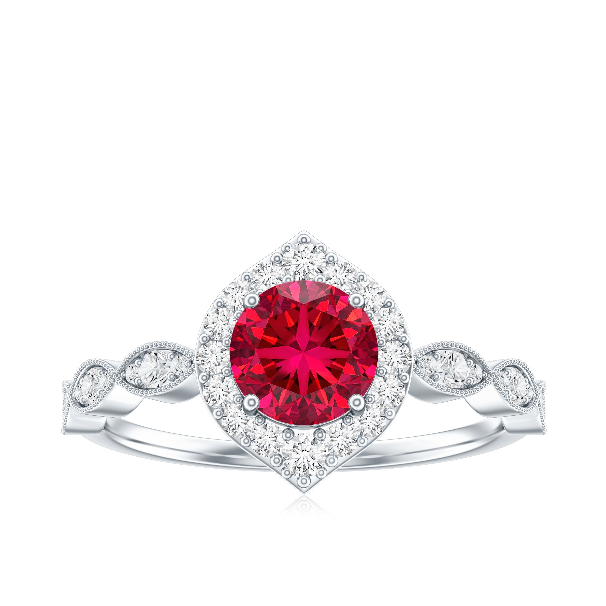Use this page for bridal/proposal designs. For everyday ruby rings, promise rings, or stacking bands, shop our main ruby rings hub for the broadest selection.