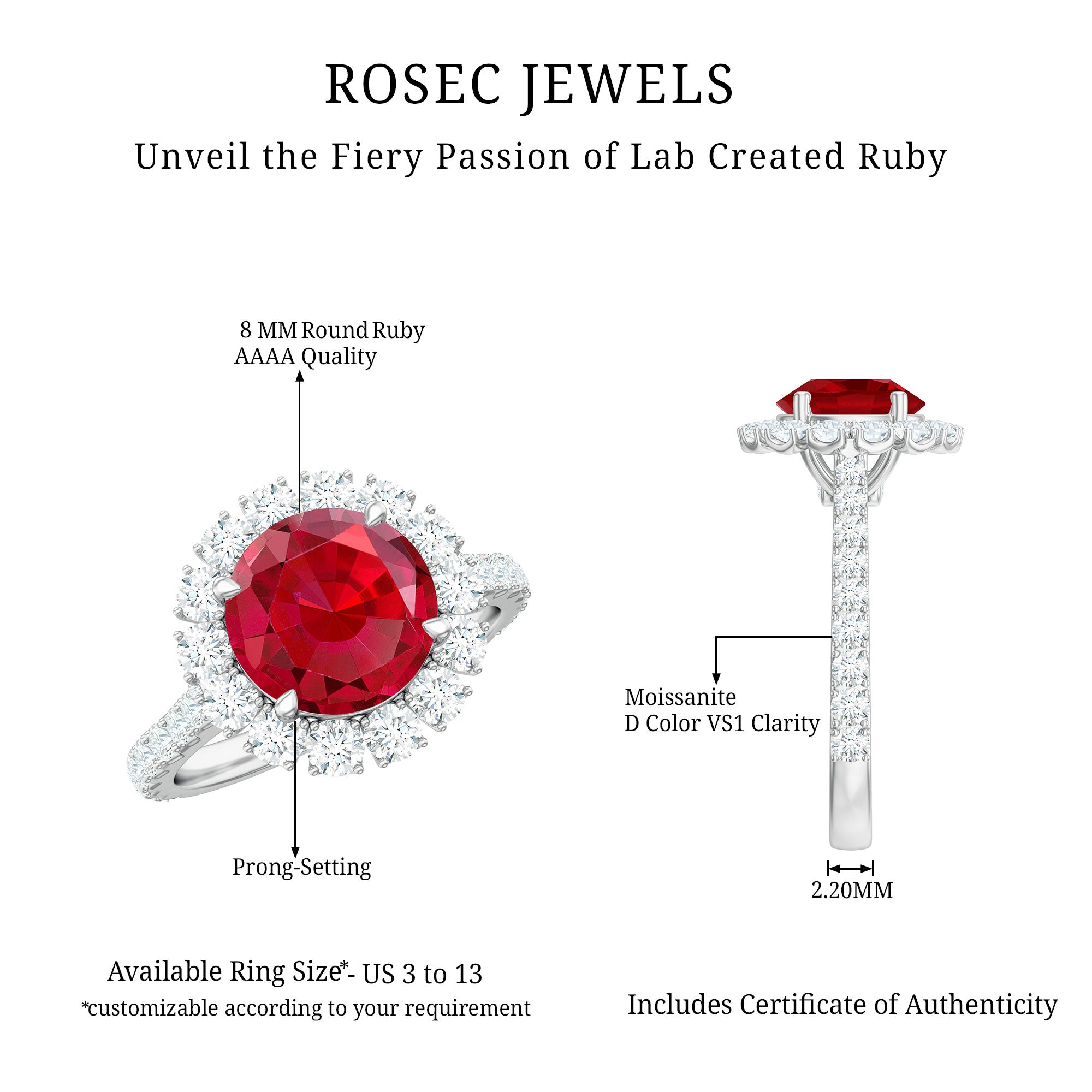- Daily-wear durability: Ruby ranks 9 on the Mohs scale (excellent for engagement rings).